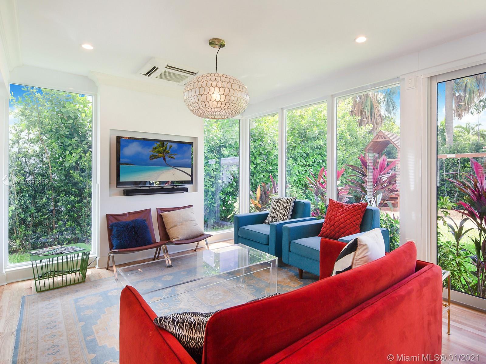 Located on Rivo Alto, the eastern most Venetian Island, this stunning home has been renovated to perfection. Enter into the double height living room with fireplace and wood flooring and the open floor plan leads you to an open dining room and a new kitchen with Compac Quartz countertops. A substantial addition features a new family room with floor to ceiling windows. Other upgrades include large master suite, new roof and AC system, recessed LED lighting, alarm system with yard security cameras, and impact windows and doors. The re-landscaped yard offers perimeter hedges, a circular travertine driveway with motorized gates and a separate structure for laundry and storage. All located walking distance from shops and restaurants in Sunset Harbor, and only minutes from downtown Miami.