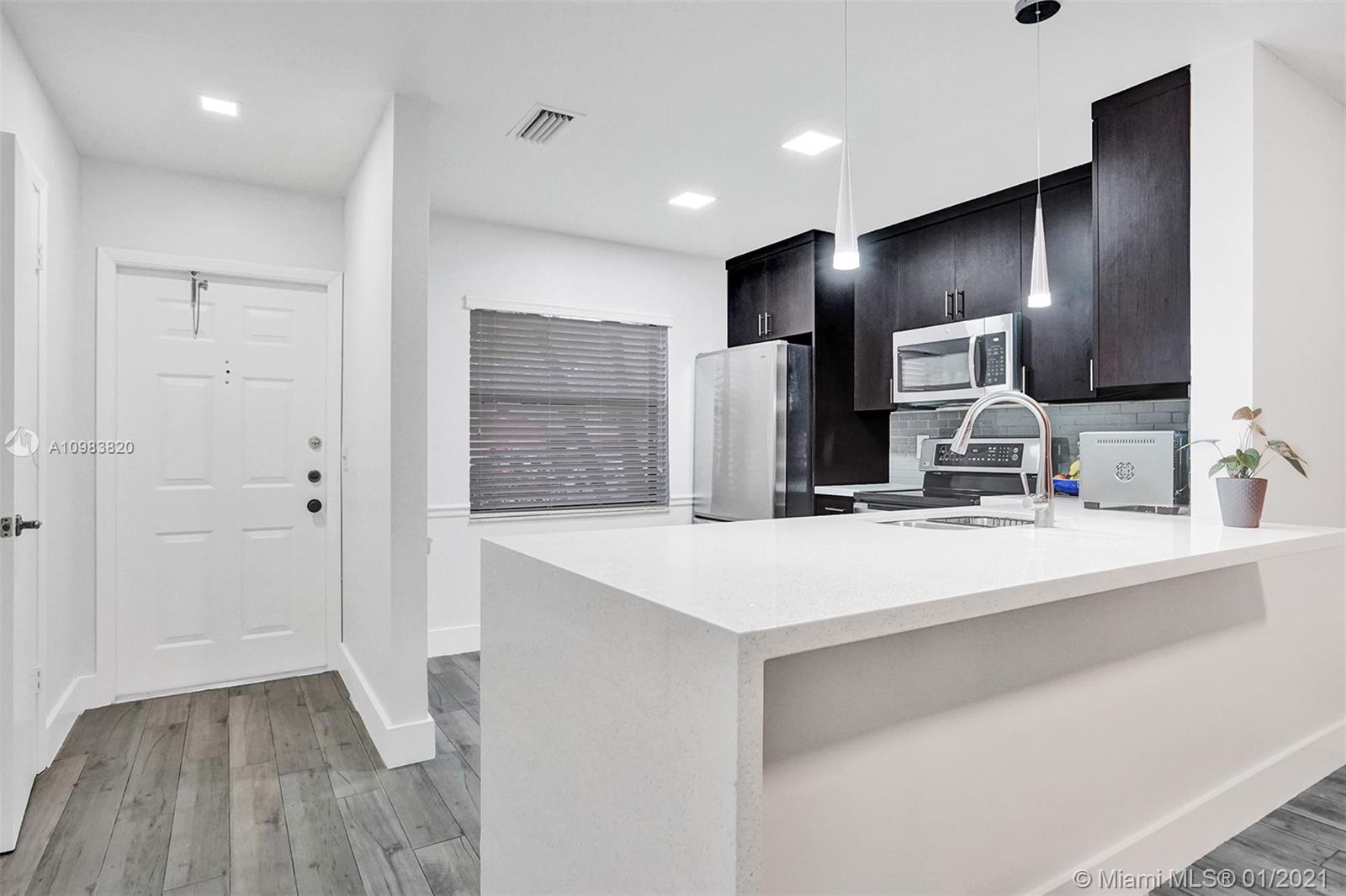 BEAUTIFUL and Updated 2-story / 2 Bed and 2.5 Bath Townhouse, Turn-key and gorgeous! Kitchen and Bathrooms remodeled. Modern & sleek kitchen and laminate floors throughout. Both bedrooms have walk-in closes and their own bathroom in addition to the half/guest bathroom. Classic sliding doors open to an intimate screened patio with outdoor storage closet. Great location near Pembroke Pines Shopping district, Memorial Hospital, and CB Smith Park. Newer appliances and two assigned parking spots. Come see this beauty! Se habla español