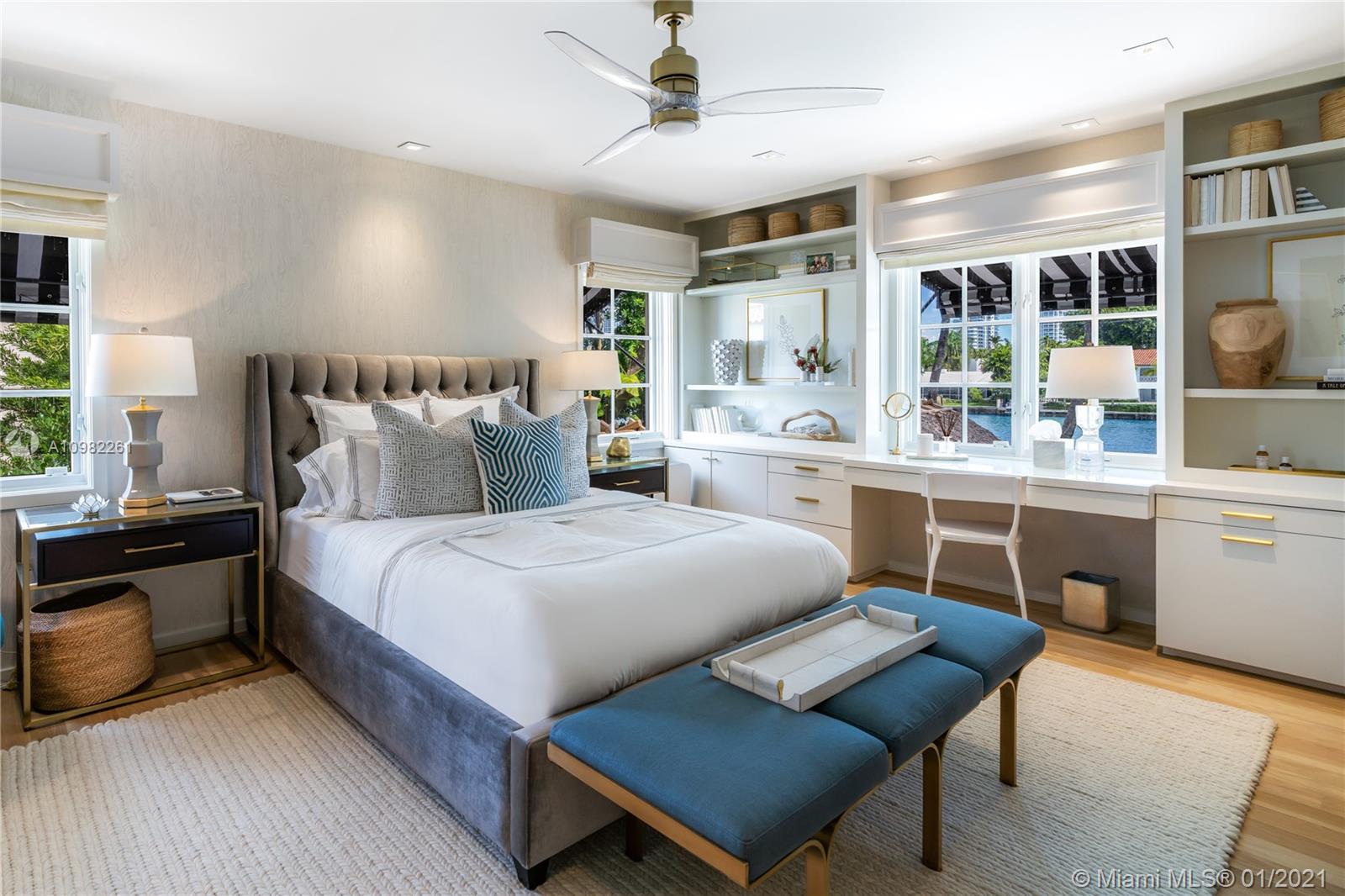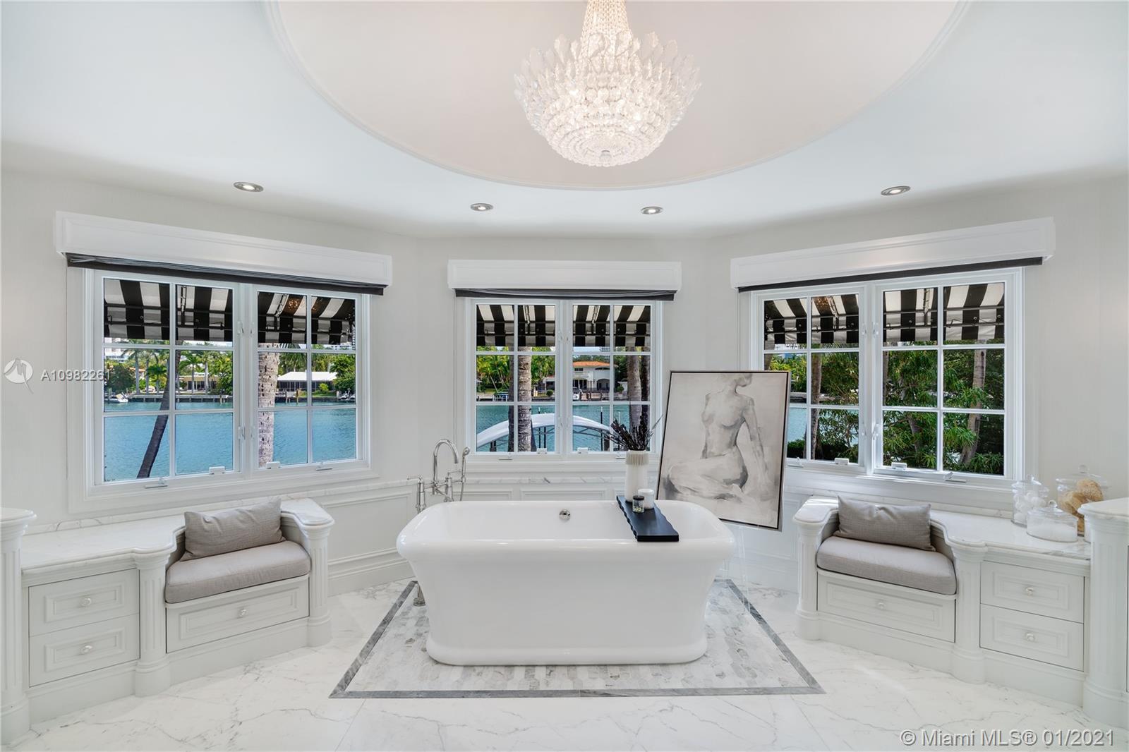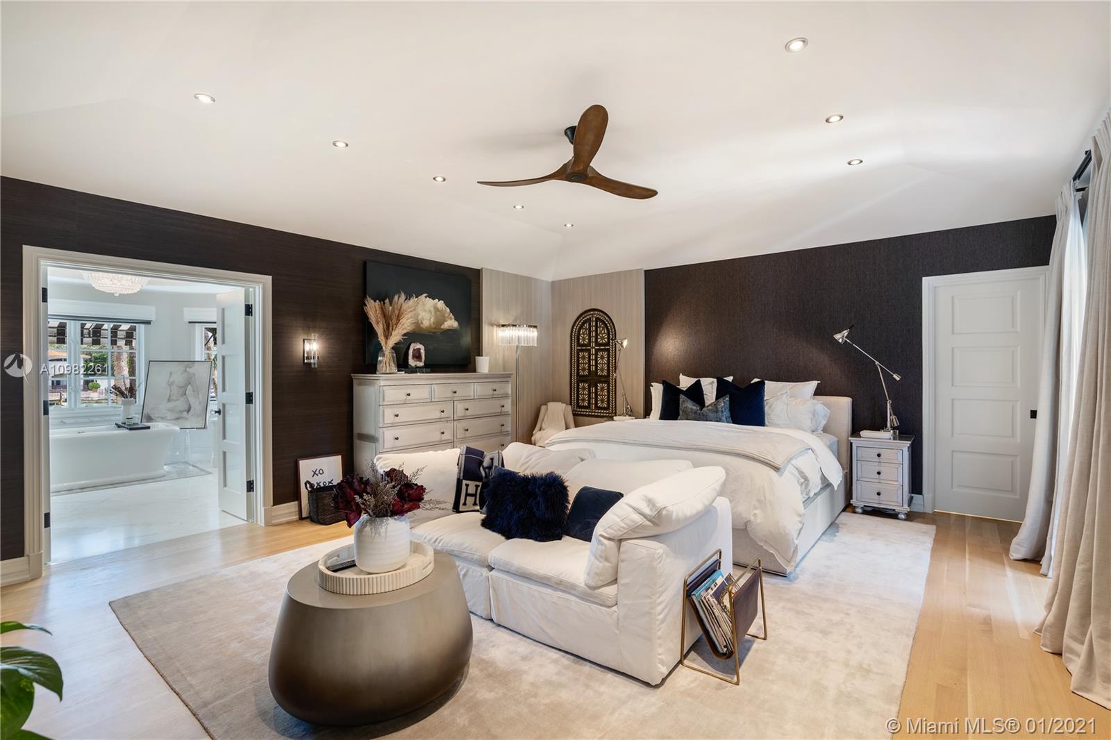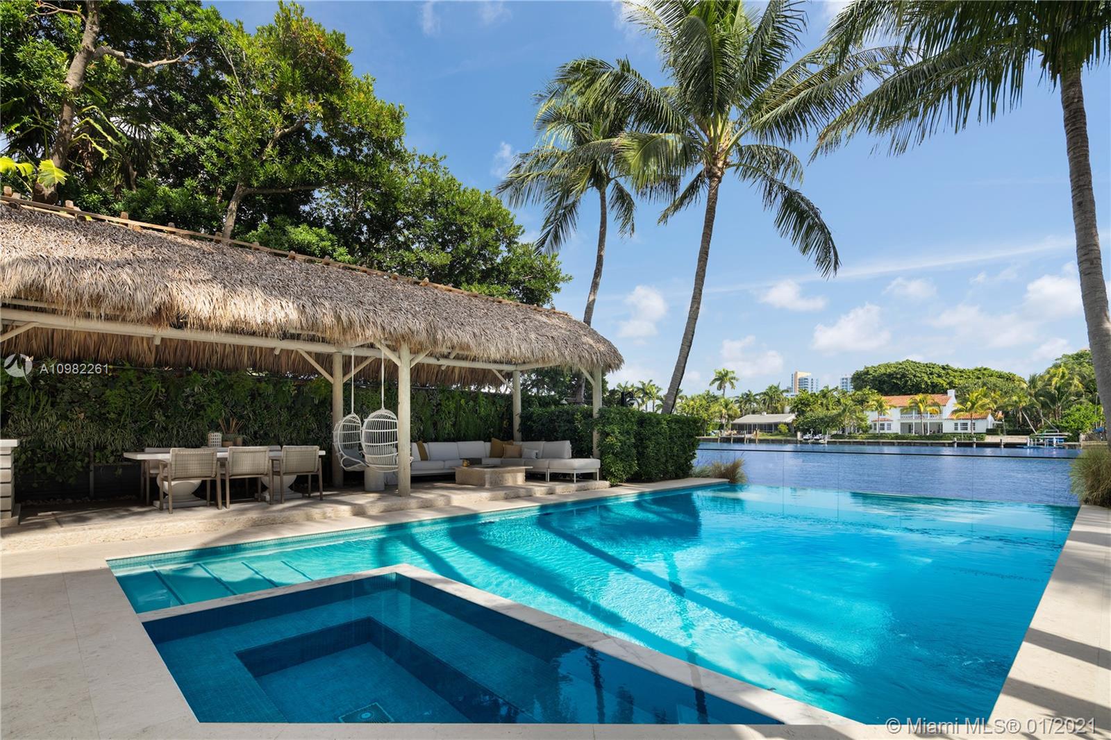Impeccably designed, recent complete renovation. Built by renowned Miami Beach architect Russell Pancoast, a truly remarkable find on highly desirable Pine Tree Dr. Abounding with sumptuous amenities, this extraordinary gated 6,970 SF residence boasts 100’ of WF on 20,900 SF. The home’s features include a complete professional interior redesign, stunning gardens, full courtyard bar, Lutron smart home system, media room w/ custom New York Style “speakeasy” bar, housekeepers wing, butler’s kitchen, fully-equipped gym w/ Cybex & Precor machines, separate guest cottage, Waterworks fixtures in bathrooms, principal suite w/ custom shelving, dual closets. Resort-style backyard w/ sparkling pool, fire pit lounge, custom outdoor kitchen, private dock w/ SUP stand, 2 jetski bunks & large boat lift.