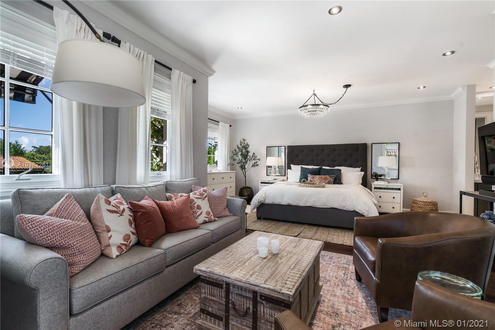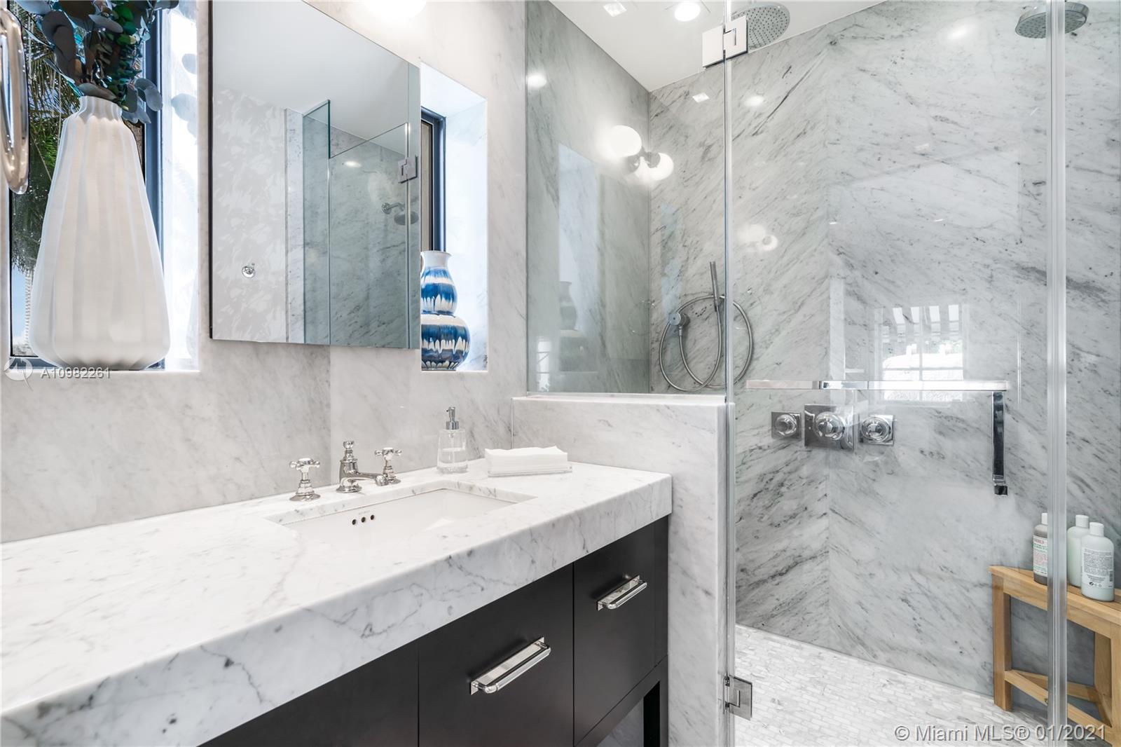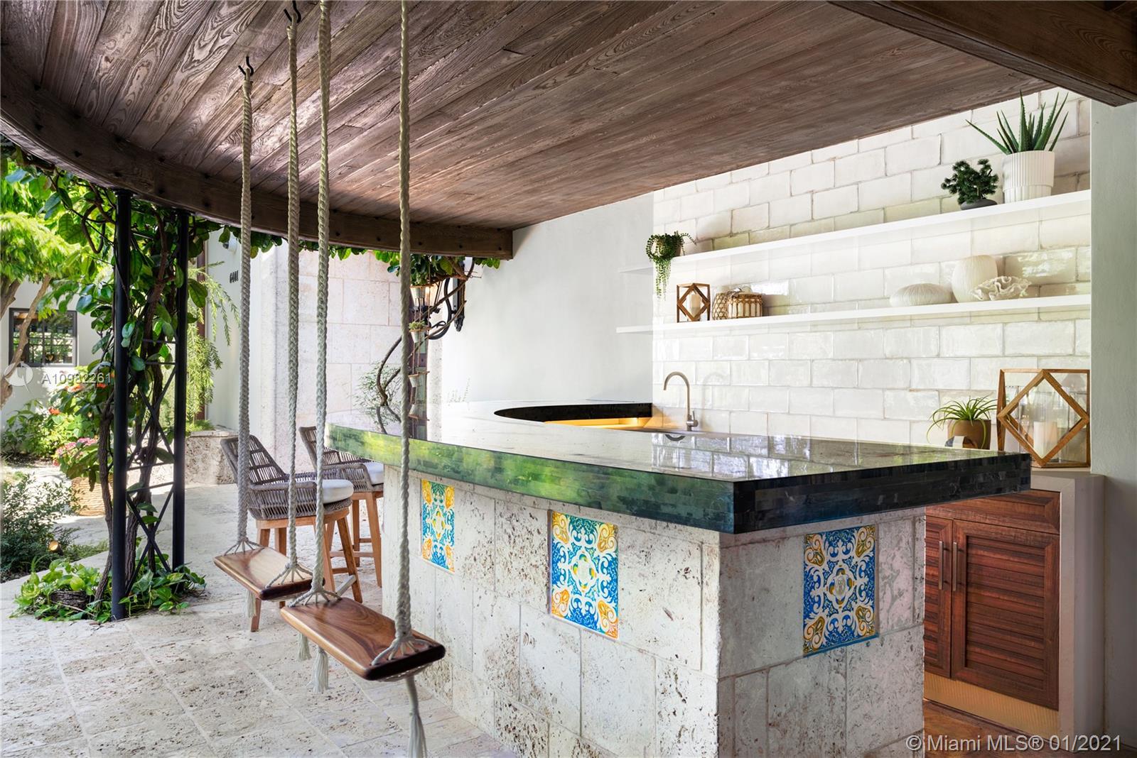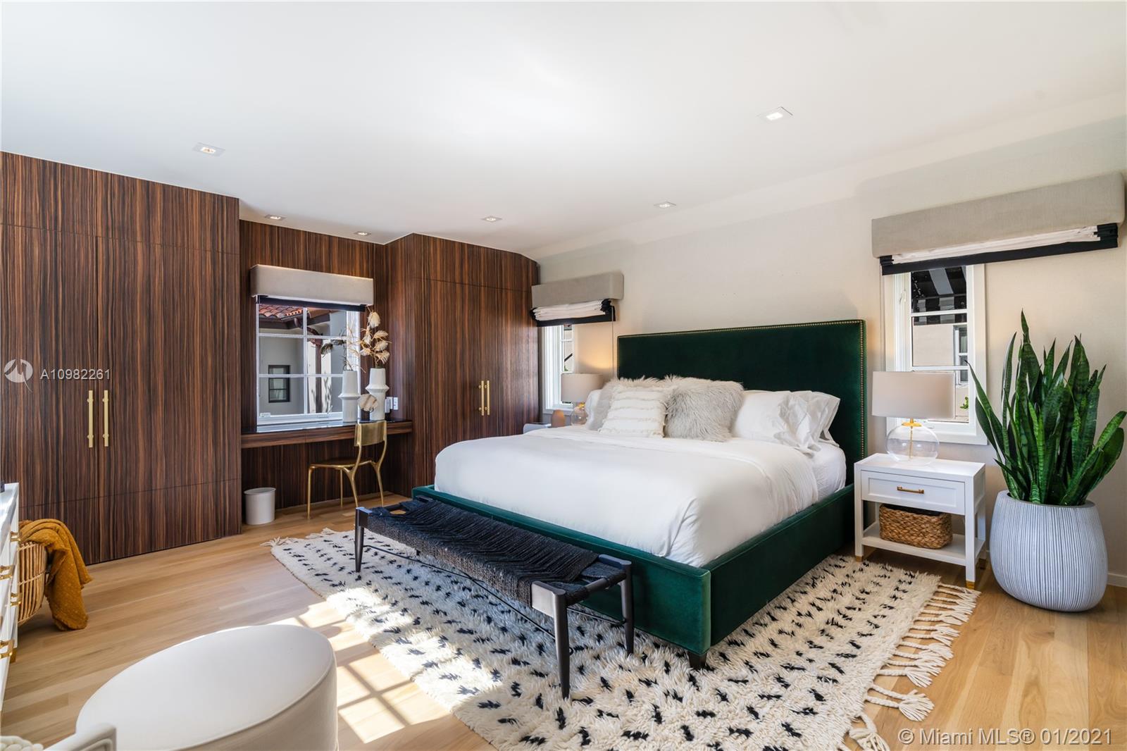 Impeccably designed, recent complete renovation. Built by renowned Miami Beach architect Russell Pancoast, a truly remarkable find on highly desirable Pine Tree Dr. Abounding with sumptuous amenities, this extraordinary gated 6,970 SF residence boasts 100’ of WF on 20,900 SF. The home’s features include a complete professional interior redesign, stunning gardens, full courtyard bar, Lutron smart home system, media room w/ custom New York Style “speakeasy” bar, housekeepers wing, butler’s kitchen, fully-equipped gym w/ Cybex & Precor machines, separate guest cottage, Waterworks fixtures in bathrooms, principal suite w/ custom shelving, dual closets. Resort-style backyard w/ sparkling pool, fire pit lounge, custom outdoor kitchen, private dock w/ SUP stand, 2 jetski bunks & large boat lift.