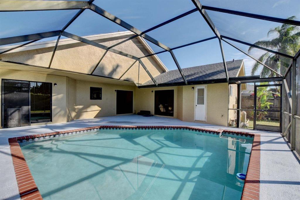 Spectacular totally renovated fromtop to bottom. Three bedroom two bath screen pool home with private backyard. Brand new top to bottom white kitchen with stainless steel appliances with matching white cabinet bathrooms with granite countertops. Lazy Susan in kitchen cabinetry. Gray vinyl flooring throughout. Smooth ceilings, LED lighting, split bedroom plan. WiFi & Voice enabled Electric Range, Brand new Hurricane Rated WiFi enabled Garage door. Sun filled home with Southern exposure. Great location! Less than two minutes away from 3 ''A'' rated schools. Close to South County Park. Areas of Baseball, Volleyball, Tennis, Basketball, and 27 hole Golf. This one will go fast!