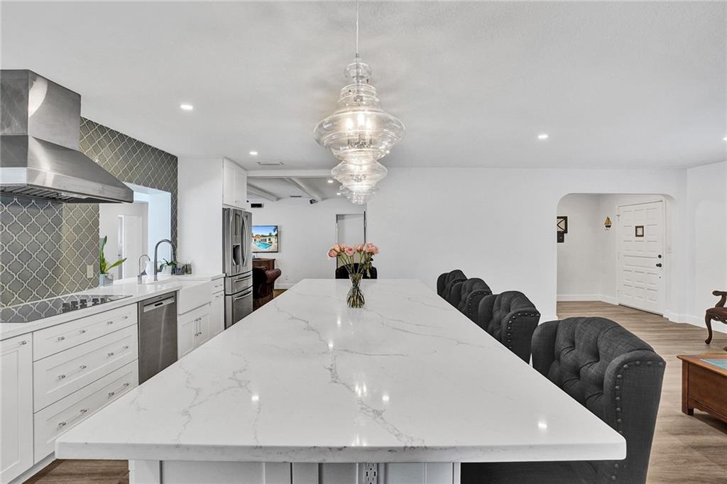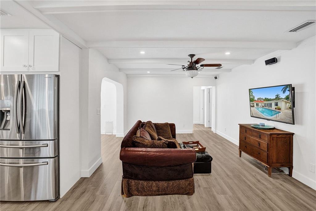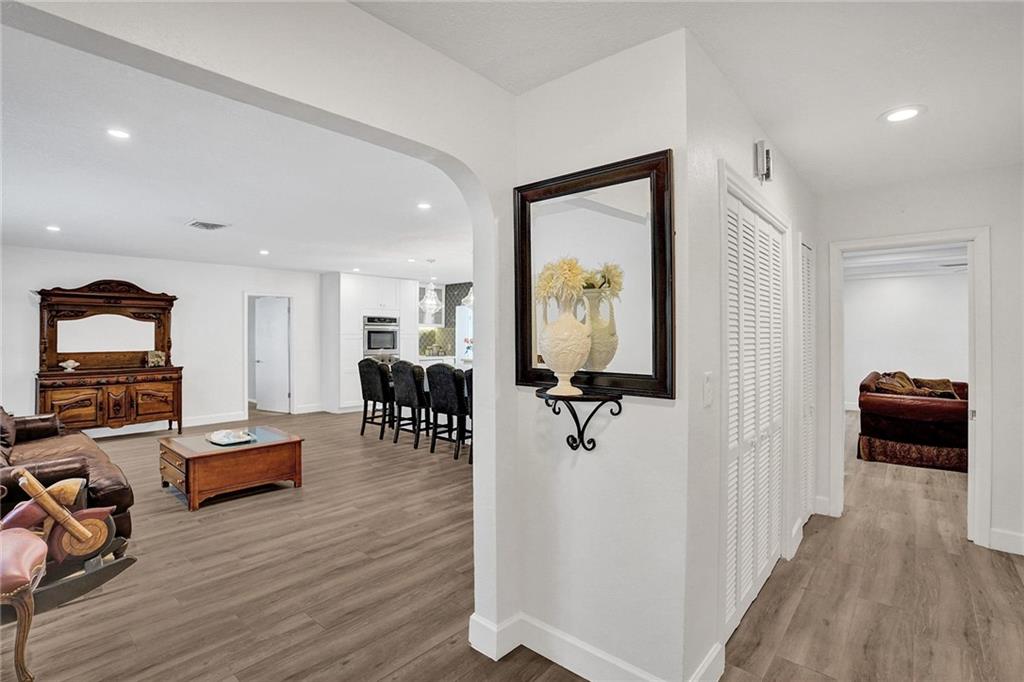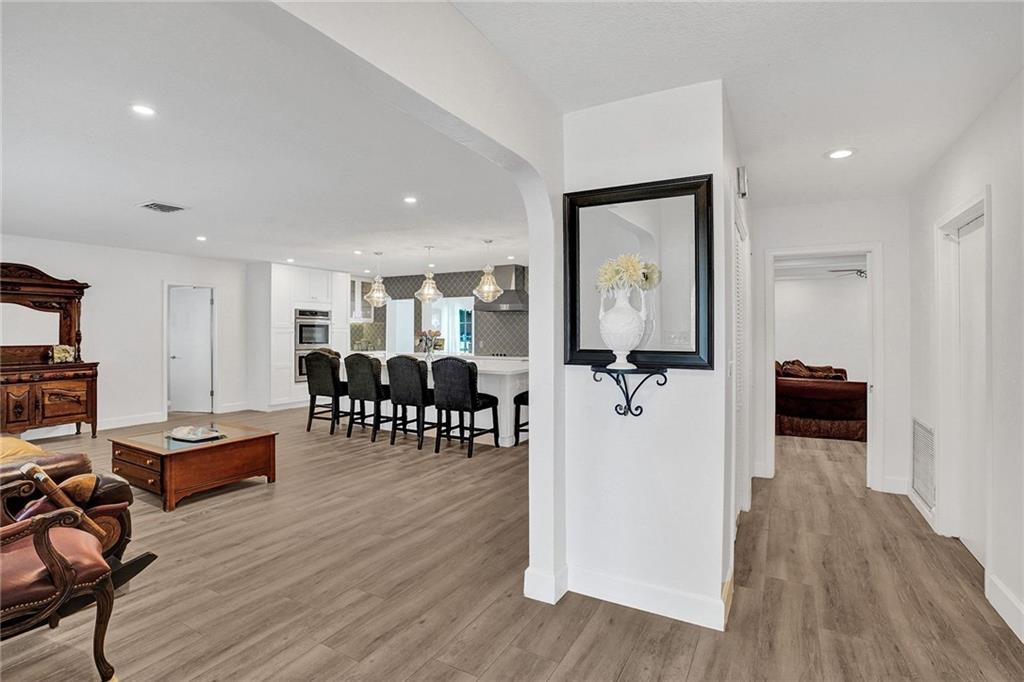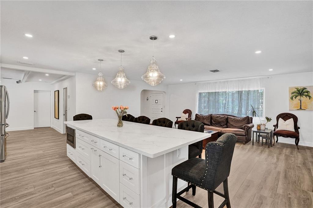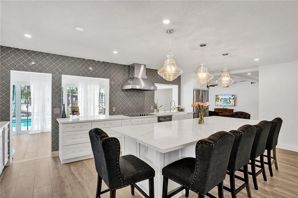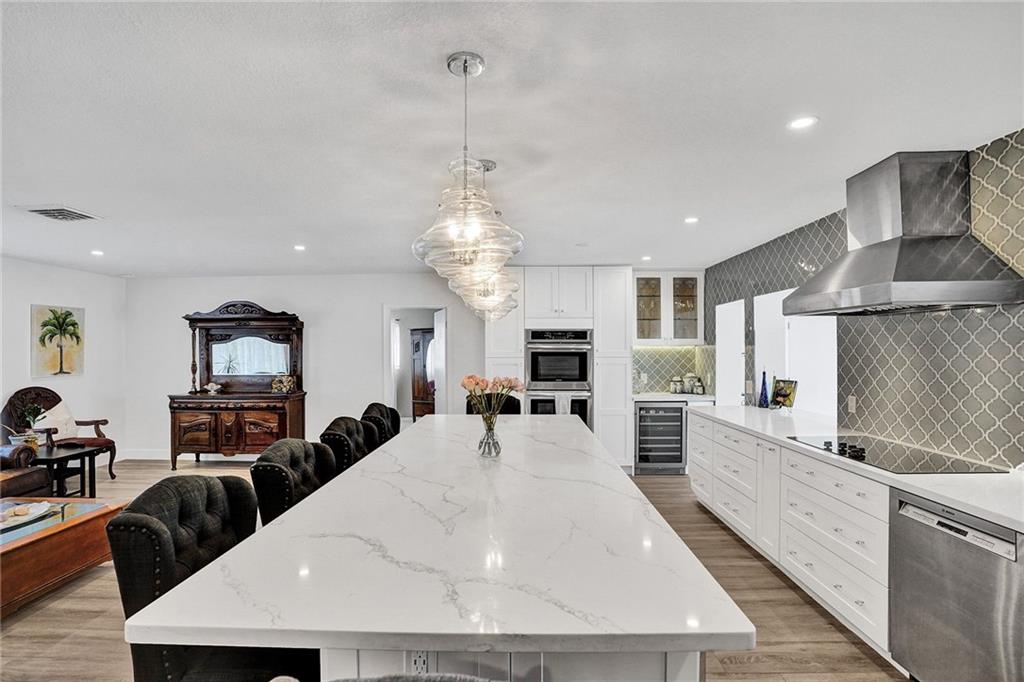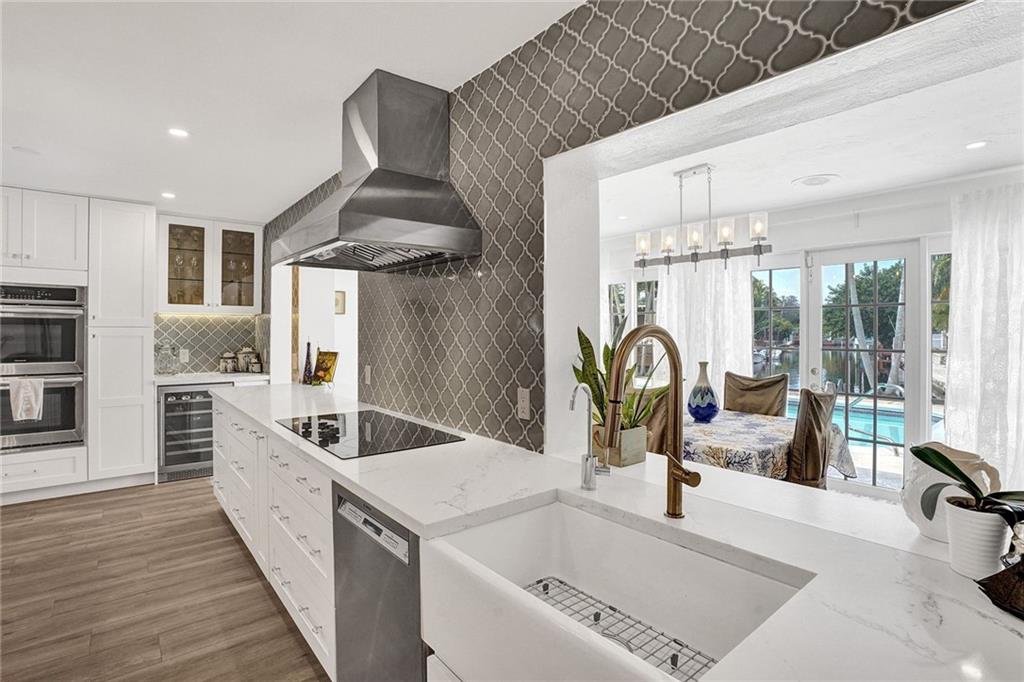 Waterfront, Light-filled 5 Bedroom, 3 Bath Beauty Triple Split & Bonus Room in the Heart of Plantation. Enjoy coffee in the Custom Built, Eat-in, Gourmet Kitchen-Stunning Quartz Countertops, Wine Fridge, New Stainless Steel Appliances, Soft Close Shaker Cabinets with Pull out Interior Drawers, Plenty of Storage. Impact Doors & Windows. New Porcelain Wood Plank Tile throughout Main Living Areas. 2 Master Suites. Split Floor Plan with Flexible Living Spaces. LED Lighting. Private Dock can be Rented for Additional Income. Ocean Access. Large Pool with Stamped Concrete Patio Surround. Circular Driveway. Banana & Brazilian Cherry Trees. Fenced Yard. Outdoor Shed for Additional Storage. No HOA. Close to Restaurants, A-rated Elementary & Middle Schools, Shoppes, Highways.
