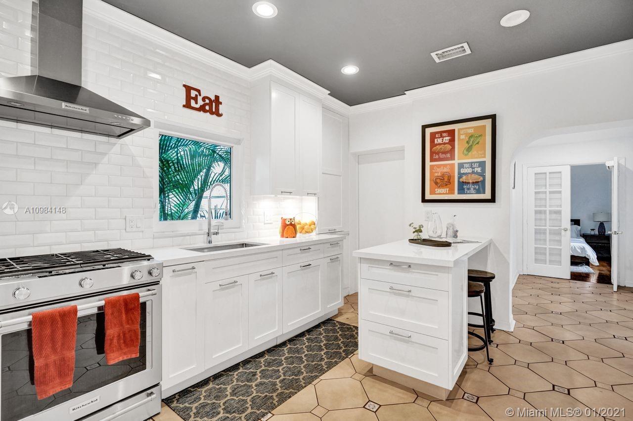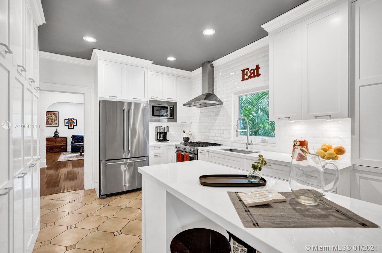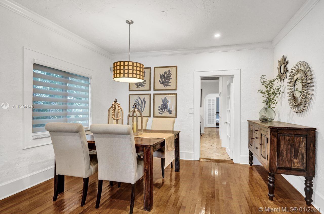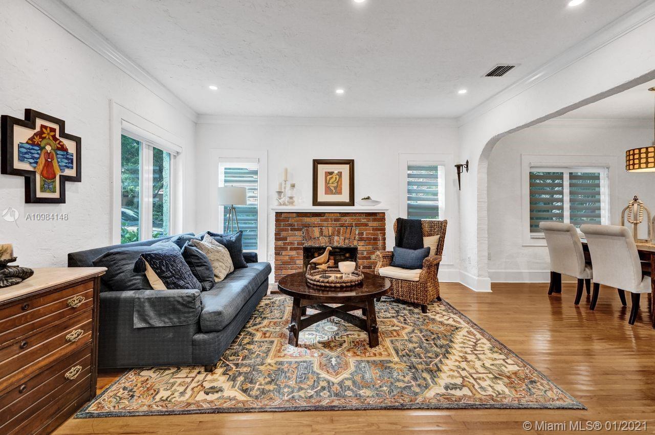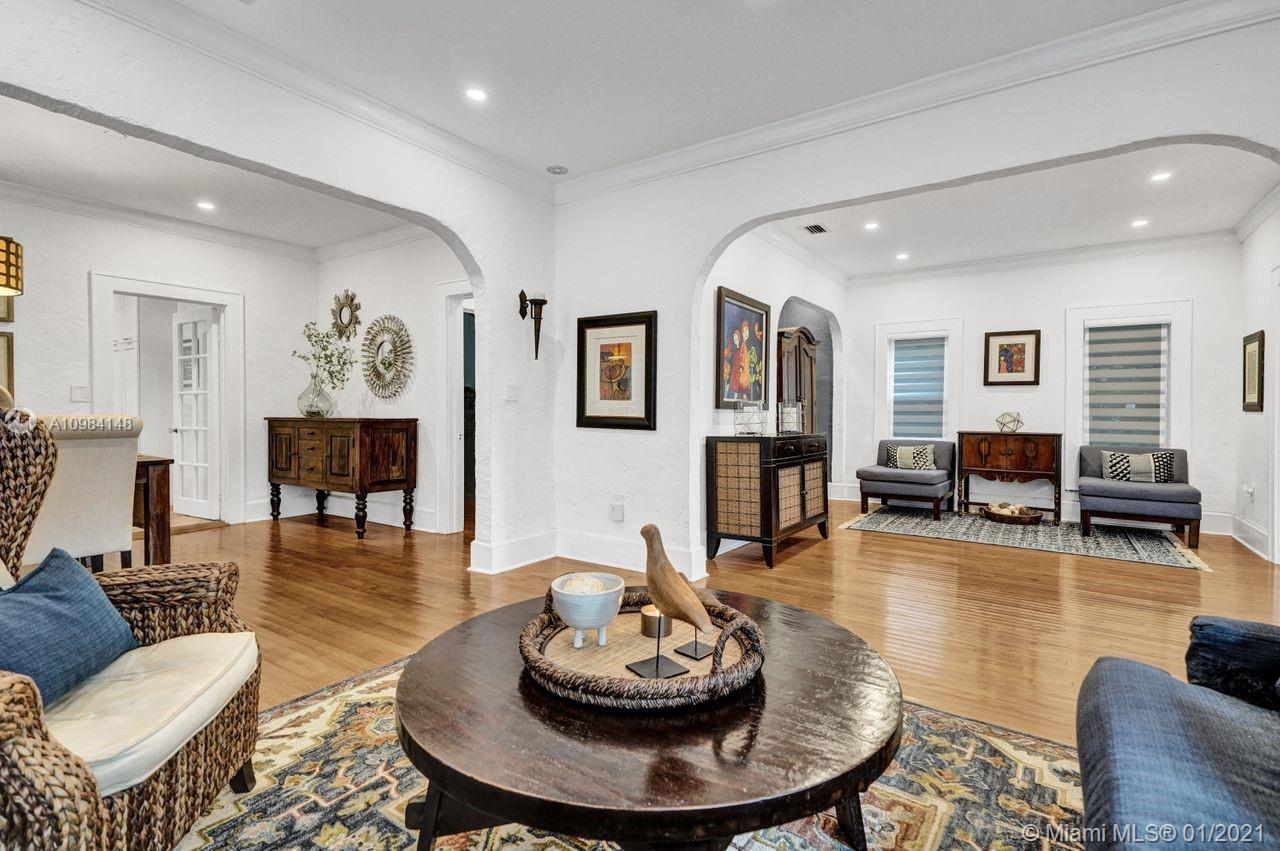 Renovated Old Spanish home with 1,976 sf on quiet N Gables street. Features include 3/2 main house + separate bonus room + carport. Newly updated maintaining architectural elements including original spiral columns, wood floors, decorative mantle & original arches. Foyer entrance with enclosed front porch perfect for home office leads to formal living room, bonus living area & separate dining room. Designer ktchn with white quartz counters, custom cabinetry & walk in pantry renovated 2017. Spacious master bath with double sinks, separate shower & tub renovated 2019 & walk in closet. Converted garage offers flex space for office/den + storage. Roof 3.5 yrs old, impact windows, telescoping door, a/c & water heater installed 2020. Private back and separate side patio perfect for entertaining.