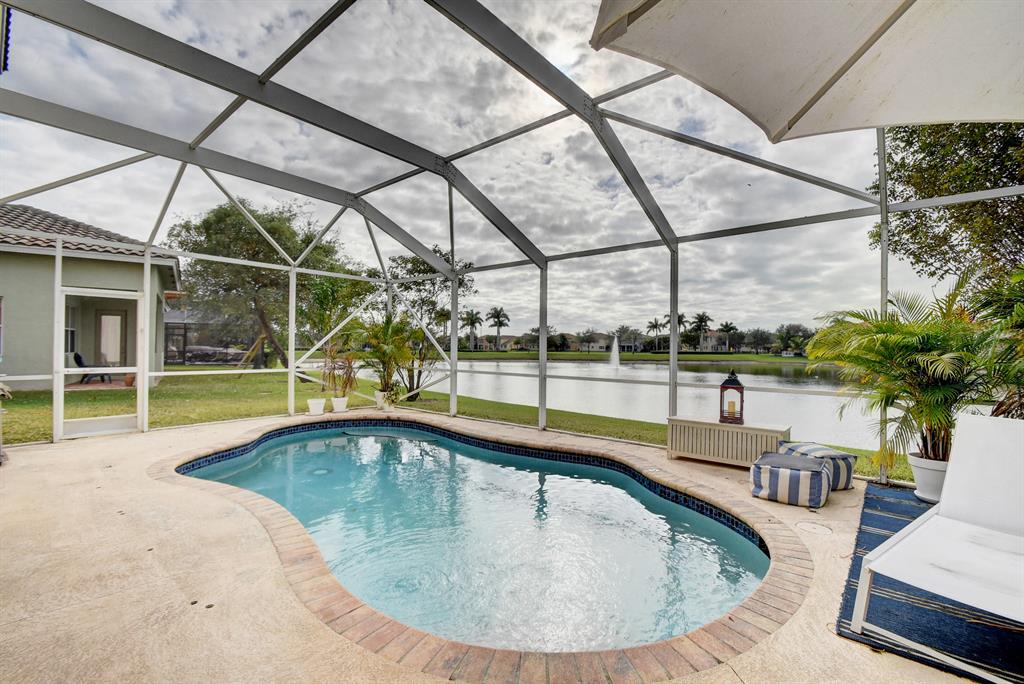 Move-in ready, luxurious lakefront home in a family friendly exclusive community featuring large remodeled kitchen, screen patio with private pool, 3 car garage, upstairs loft and two spacious balconies. Owner's suite boasts two walk-in custom closets and additional private retreat that has been used as an office, nursery or fitness room. Nice back yard with lake view to enjoy beautiful sunsets.