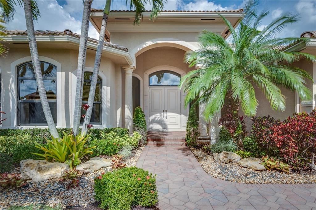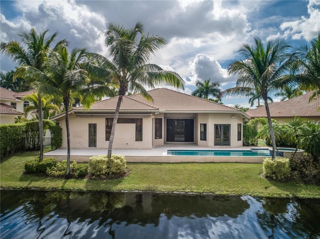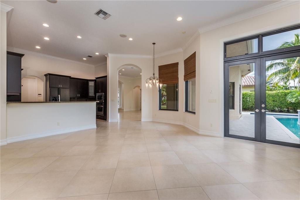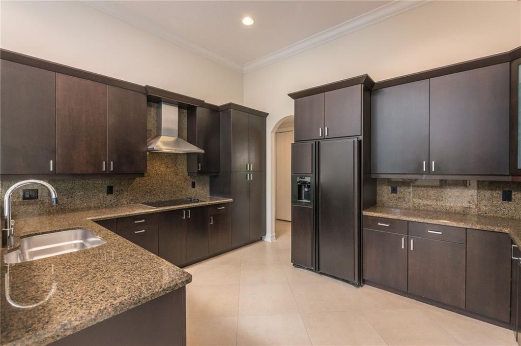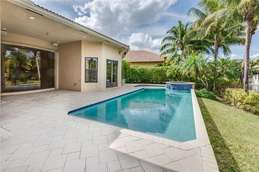 Spectacular Home in Exclusive Hawks Landing. 4 bedrooms + Den with 3 full baths. 3 car garage. Pool/spa. Open floor plan with Modern dark chocolate wood kitchen cabinets and granite tops. Porcelain Tile in all living areas and wood floors in all bedrooms. Solid wood doors. French doors. Crown moldings. Plantation shutters. Custom closets & more. Combination of accordion shutters and impact windows & doors.