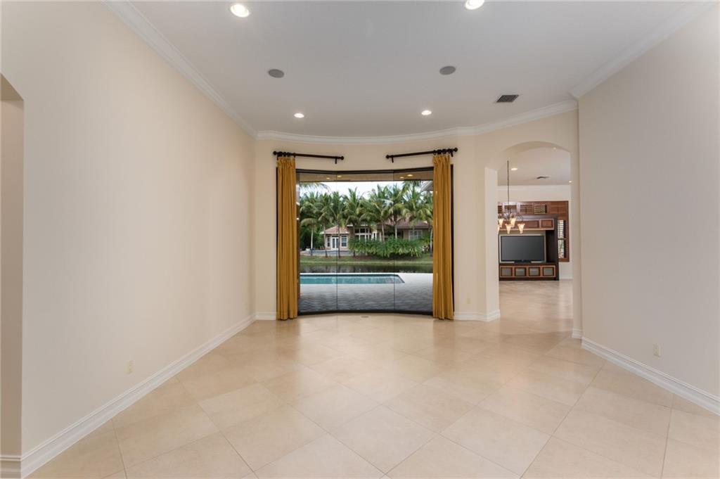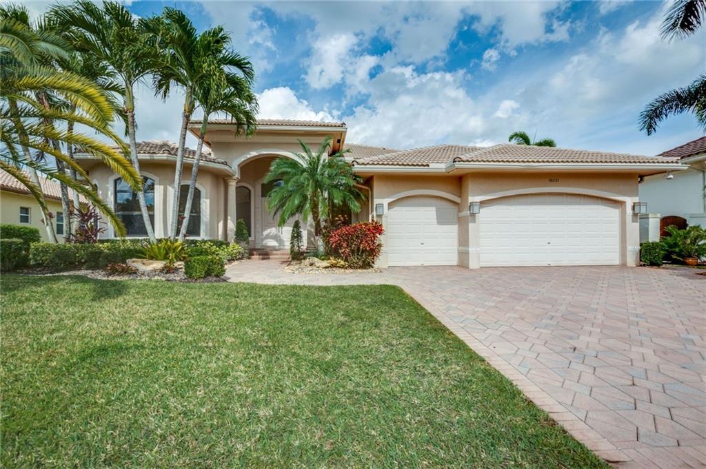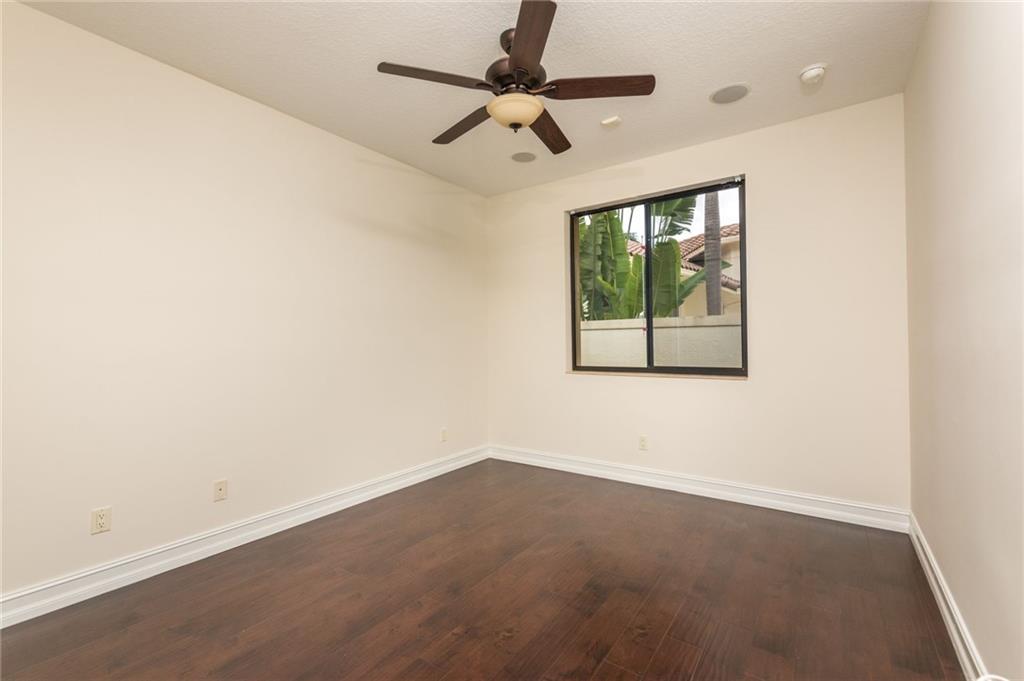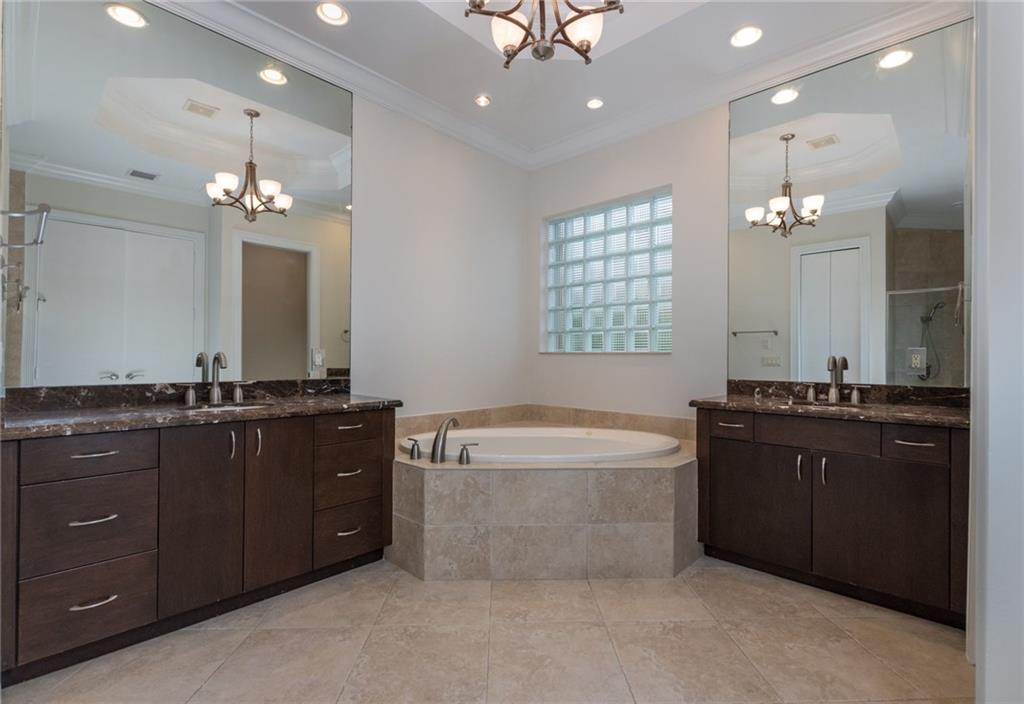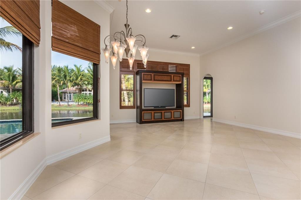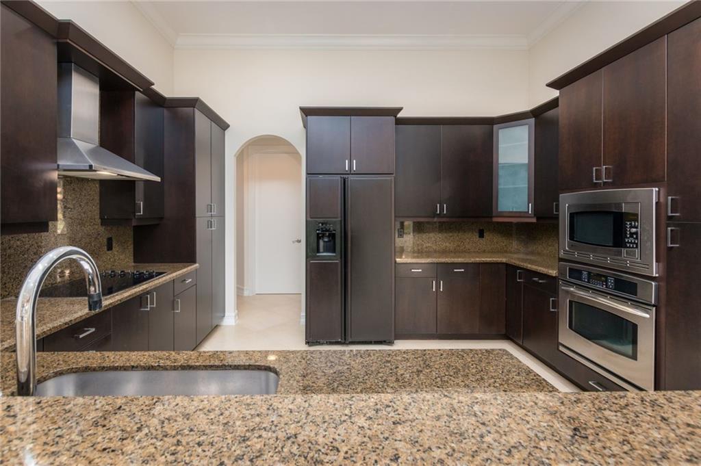 Spectacular Home in Exclusive Hawks Landing. 4 bedrooms + Den with 3 full baths. 3 car garage. Pool/spa. Open floor plan with Modern dark chocolate wood kitchen cabinets and granite tops. Porcelain Tile in all living areas and wood floors in all bedrooms. Solid wood doors. French doors. Crown moldings. Plantation shutters. Custom closets & more. Combination of accordion shutters and impact windows & doors.