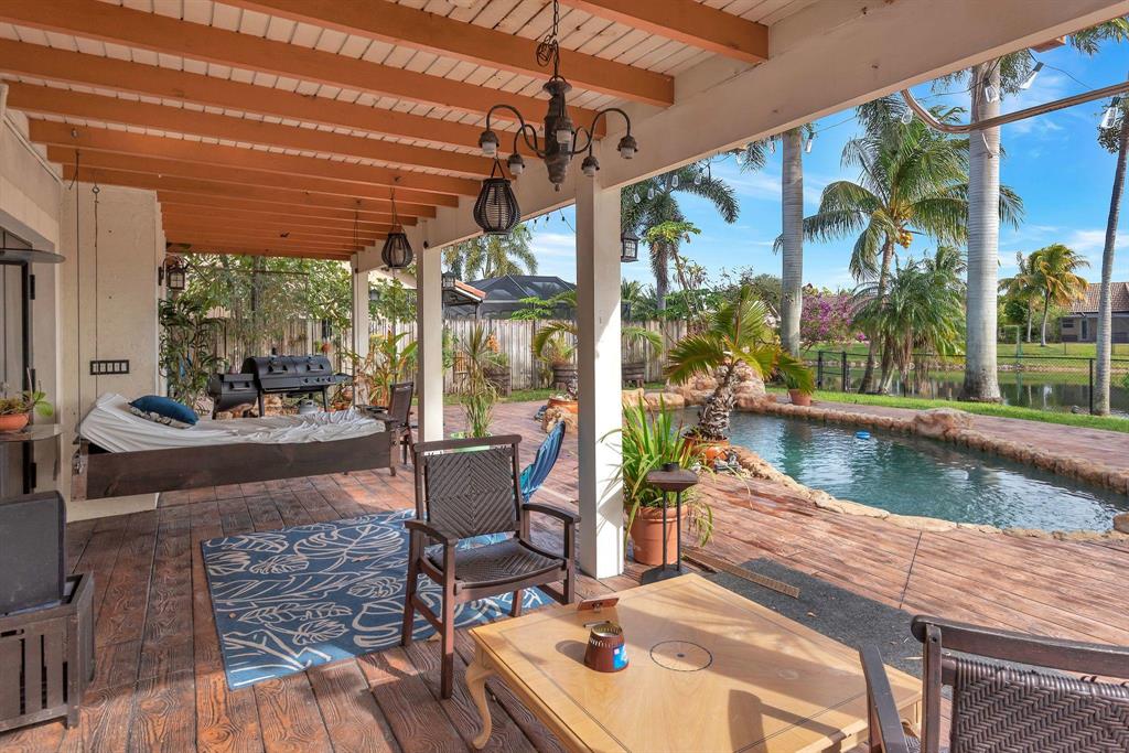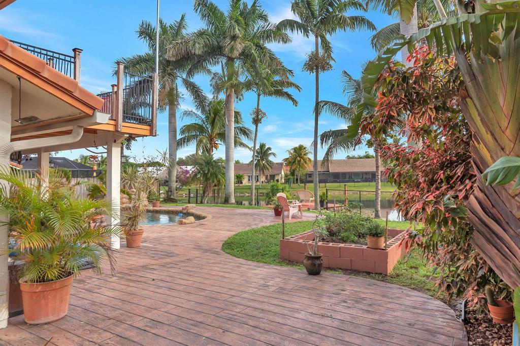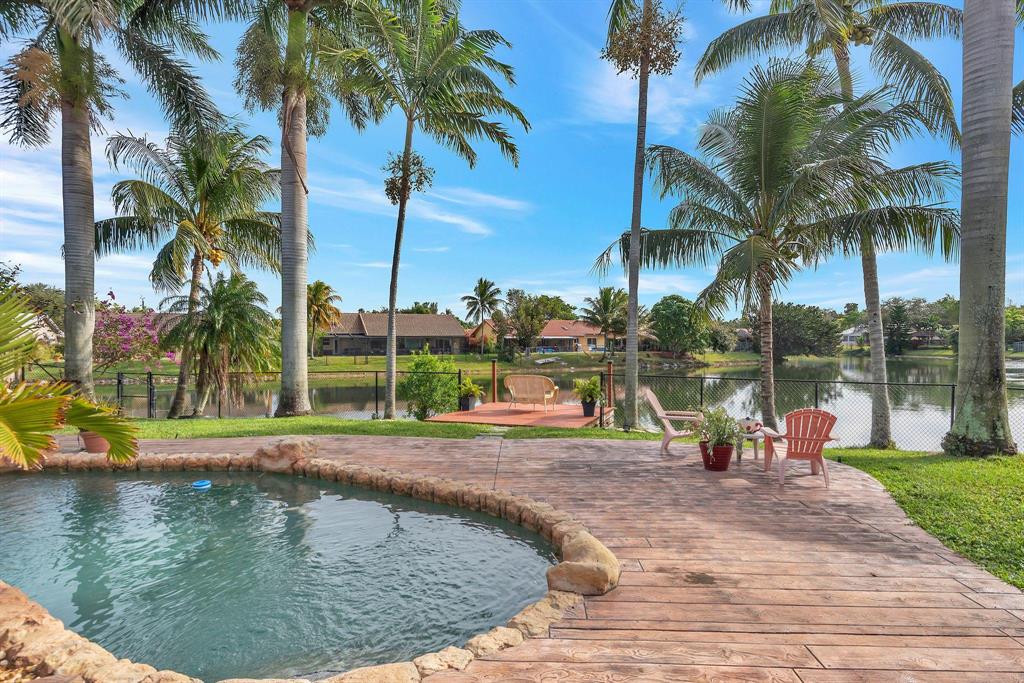 Enjoy lake front living at its finest in this updated MARGEAUX Model at Waterford . From the updated kitchen and master bath to the cul-de-sac lake front lot with grandfathered in private dock. This home is an entertainers dream. The huge rear covered patio overlooking the custom pool with spa. Fully fenced rear yard and it even has a second floor deck off the master bedroom to enjoy sunrises and a cup of coffee looking over the well stocked lake. Updates include impact windows and doors new interior trim and 5/1/4 inch base boards and interior doors. The main AC was replaced a few years back and the roof was replace in 2010. Washer and dryer are a year old and the popcorn ceilings were removed in all rooms but the den. The den could easily be converted into a 1st floor bedroom
