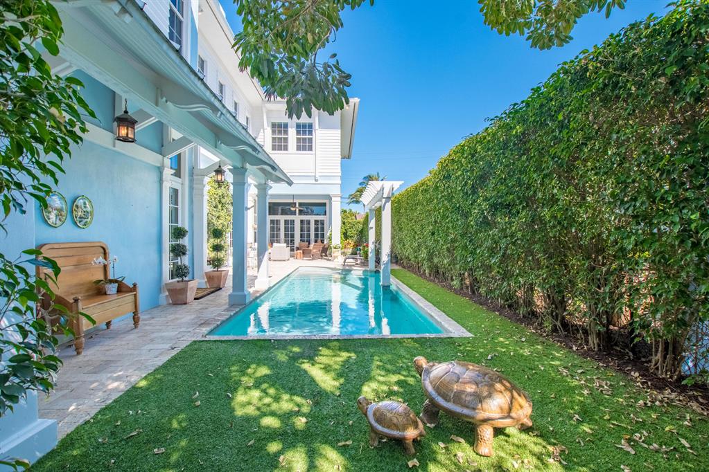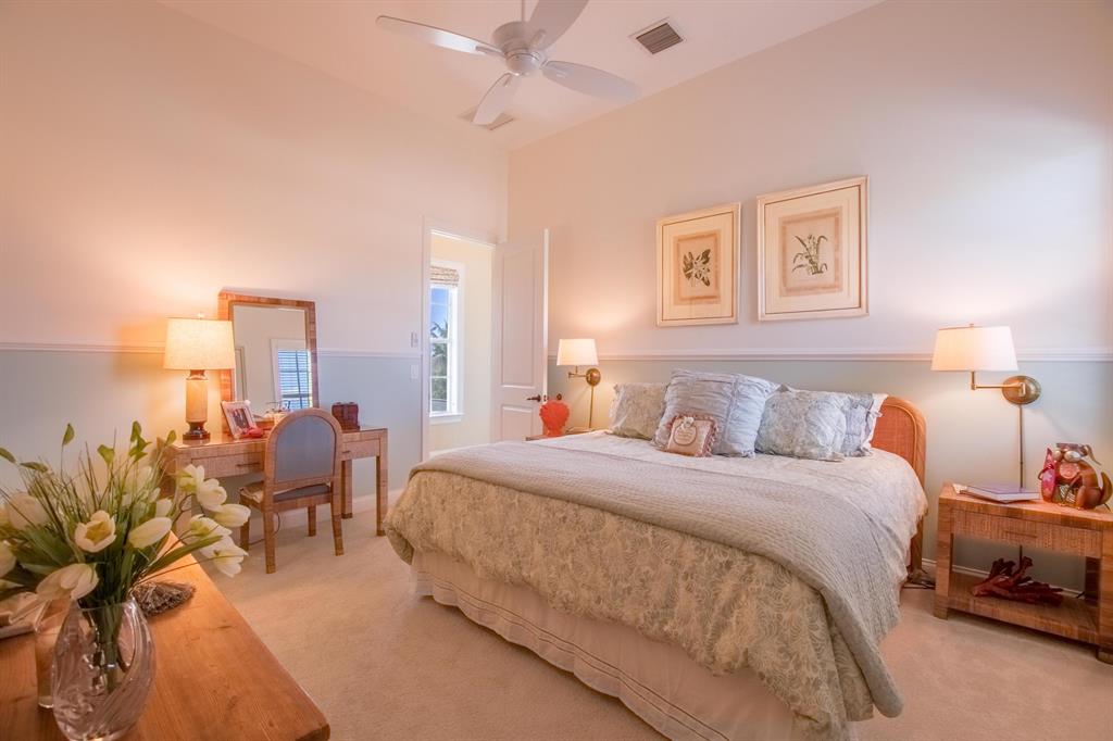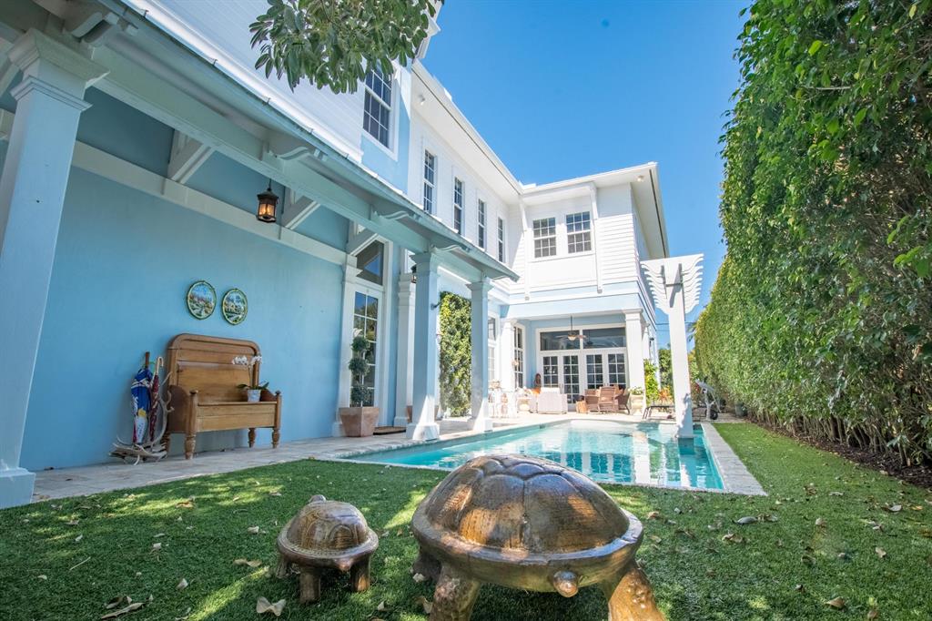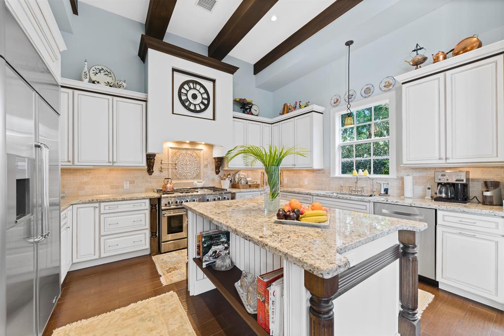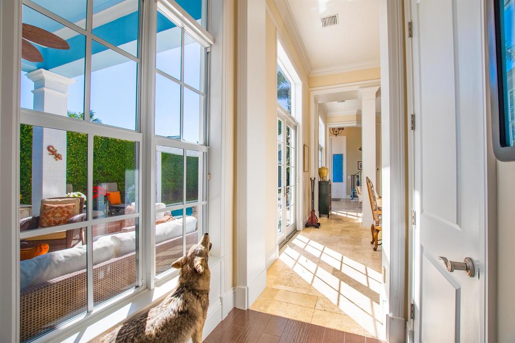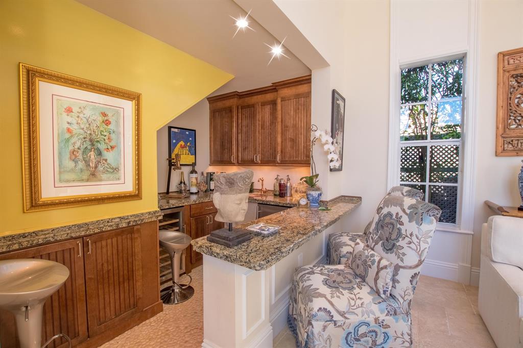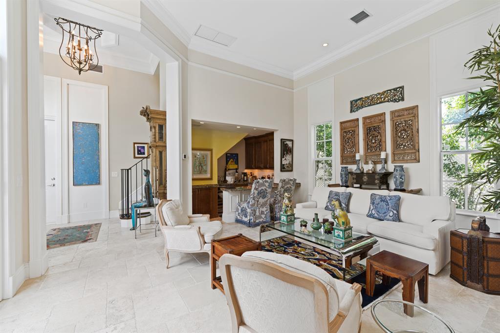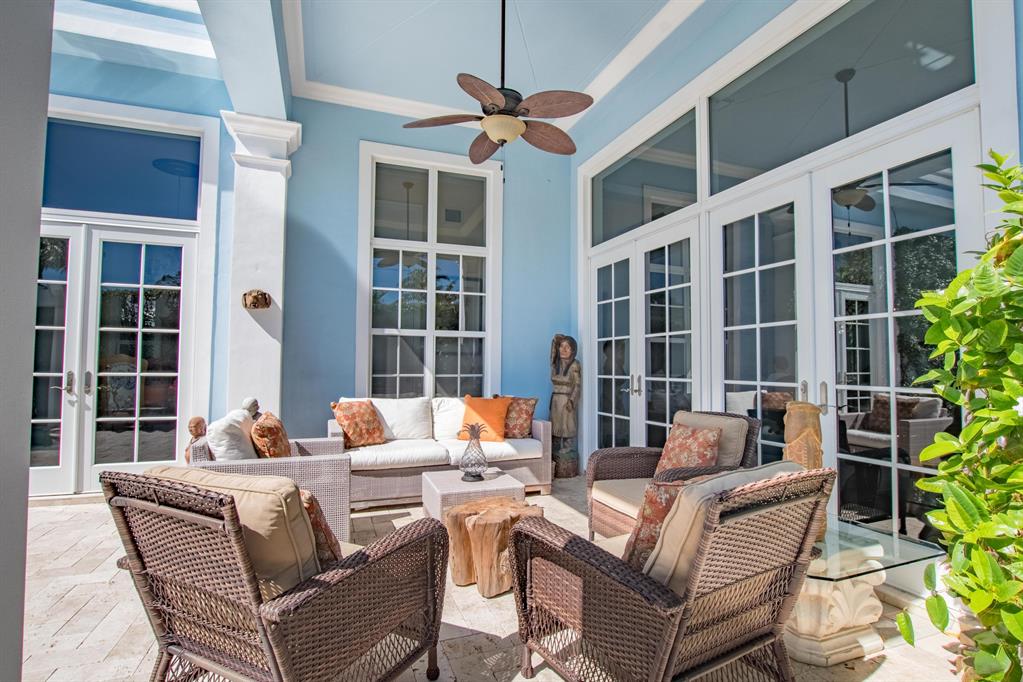 This spectacular home has superior construction style and thoughtful design, built as the builders own residence. The courtyard entry makes for complete privacy and security. All living areas have views opening out to the courtyard and heated pool. Custom stone floors, 14 ft. ceilings, all impact glass doors and windows. The living room includes a full wet-bar, custom columns, framing, and crown moldings. Formal dining area, a large family room, and breakfast area. The kitchen has it all with dual fuel gas cooktop/electric range, custom cabinetry, granite counters, and professional stainless steel appliances. The 5 bedrooms are on the 2nd floor with laundry room, and 5 baths. The private office and powder room are on the 1st floor. There is a putting green out back for added enjoyment.