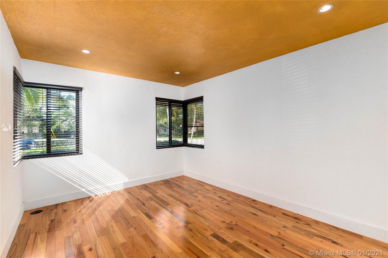 Magnificent home located in the Historic Griffing Biscayne Park Estates subdivision. This Art Deco inspired front façade property sits on a 11,250 sq ft corner lot. Home features fabulous red oak wood floors throughout with an open layout and split bedroom floorplan. New roof and impact windows in 2015 and AC new in 2020. Stainless steel appliances in kitchen with granite counter-tops. All electrical and plumbing updated in 2015 as well. Fantastic fenced in backyard for entertaining with bbq, fruit trees, aluminum carport, and a storage shed that can be converted into an efficiency, home office, studio or in-laws quarters. Room for pool. A true must see if you're looking for a house with great character. Minutes to beach and I-95.