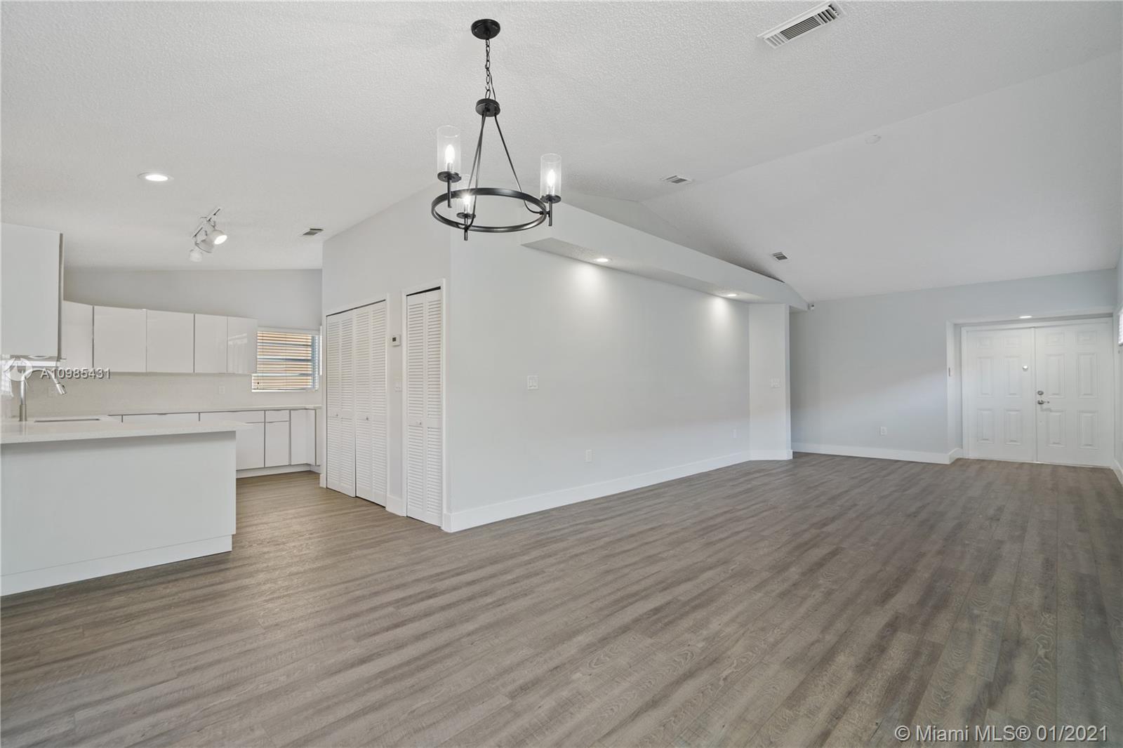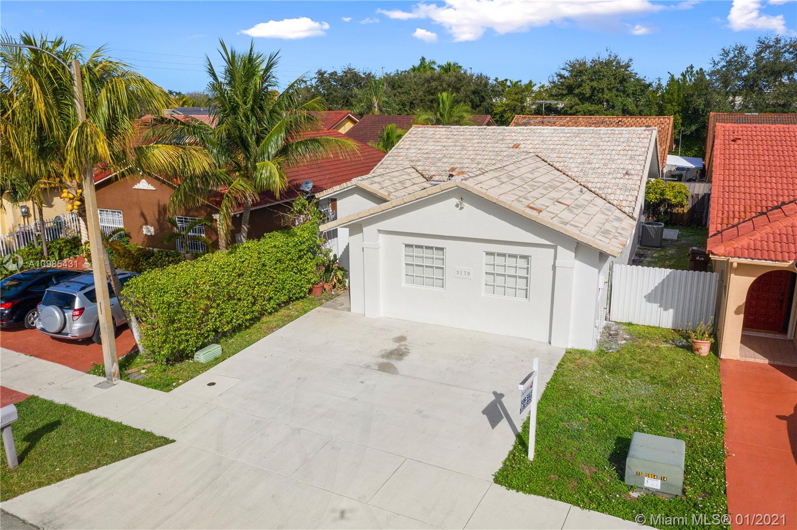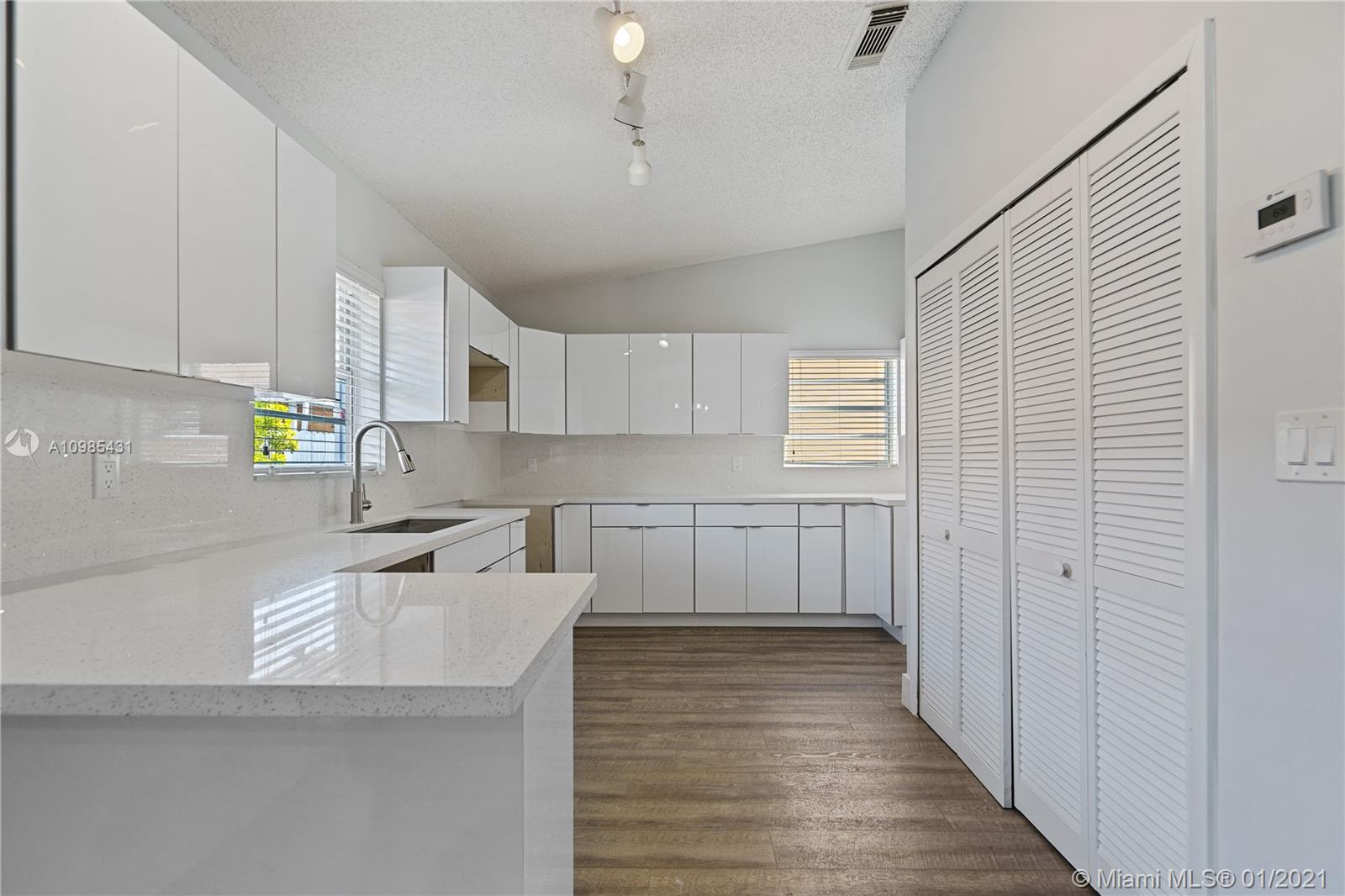 Beautiful three bedroom, two bath single family home in the heart of coveted West Hialeah. This spacious home is ready for new owners, freshly painted in and out with brand new floors, brand new square base boards, brand new and brand new acrylic European flare kitchen boasting a brilliant two tone quartz counter top and backsplash matching bathrooms tops. True open floor plan, vaulted ceilings, brand new designer light fixtures, lots of storage space open porch, patio, side yard and new driveway. Brand new SS kitchen appliances (12 month warranty) A/C, washer and dryer less than 12 months old. This is the one!