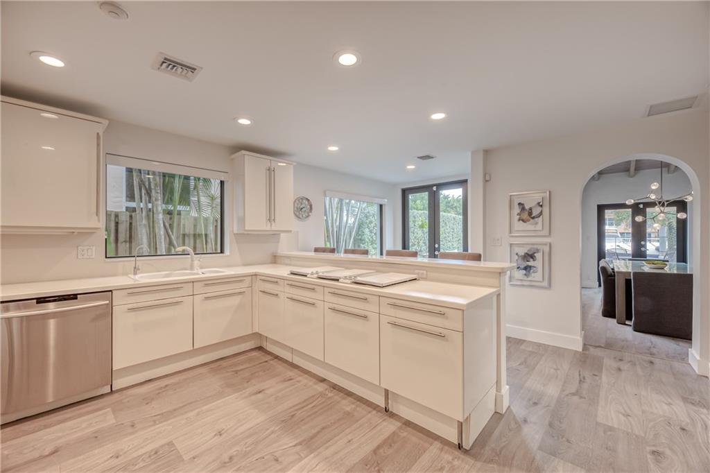 65 ft of deep-water access on a wide canal awaits at this recently renovated home on Navarro Isle, a tranquil island walkable to the renowned Las Olas shopping and dining corridor. A four-year renovation completed in 2020 included a new tile roof, impact-rated windows and doors, custom built-in cabinets and shelving, water purification system, Trex extra-wide dock with water and electric (50/30/20 amp), 40” seawall cap, and landscaping throughout. The estate provides spacious living with privacy. The home was constructed in two phases: 1990, which included the kitchen, master suite, office/library/potential fourth bedroom, and garage; and 1940, which included two guest bedrooms, guest bathroom, and living room.
