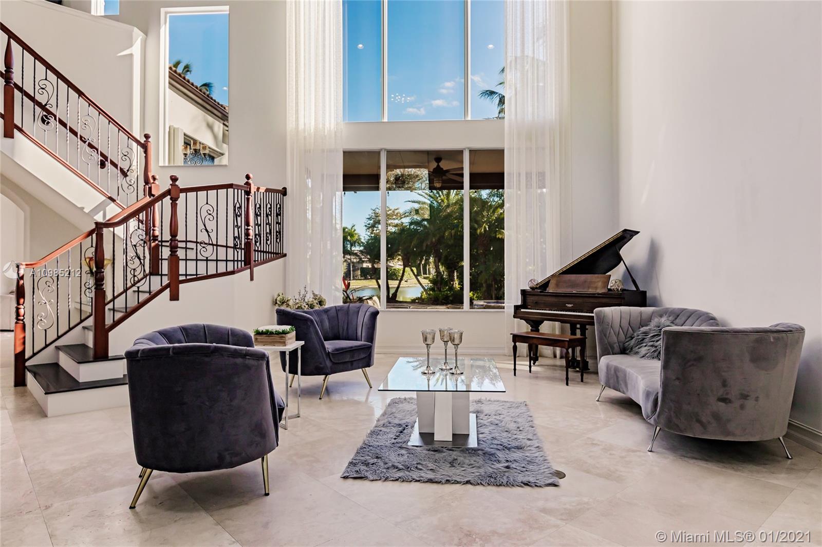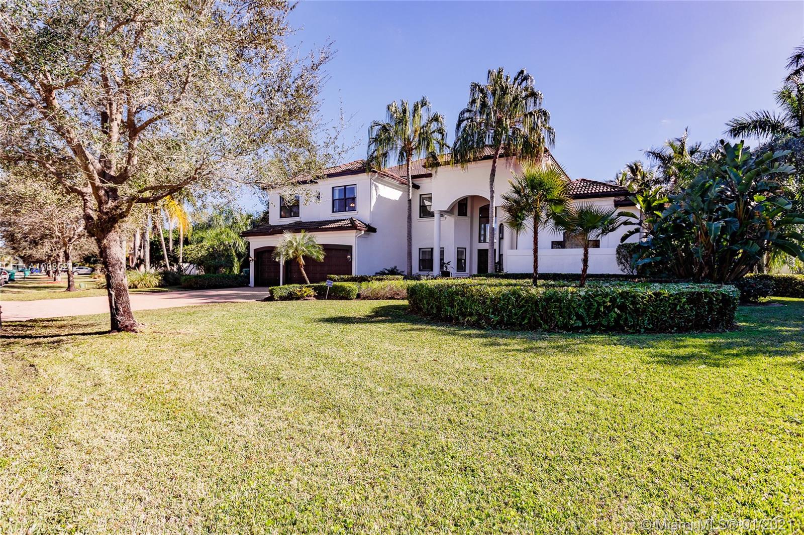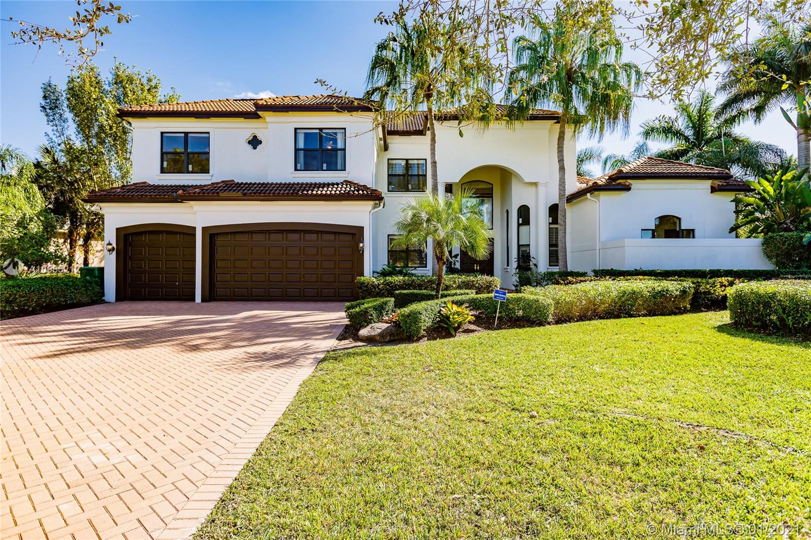 Move in Ready. Open your front doors to direct pool and water views in this private waterfront home situated on a lushly landscaped half acre property. Located in the prestigious gated community of Stonebrook Estates this 2 story home boasts a large open floor plan with expansive windows, vaulted ceilings, grand staircase, beautiful marble flooring in living areas and gorgeous wood flooring in bedrooms. A true 6 bedrooms with an office and 5 1/2 bathrooms. First floor grand master bedroom with wet bar. Gourmet kitchen complete with Stainless steel Kitchen Aid appliances, Double ovens and center island. Over $100k in recent upgrades includes 2 new HVAC systems, pool heater, hurricane impact windows and shutters, flooring, and more.