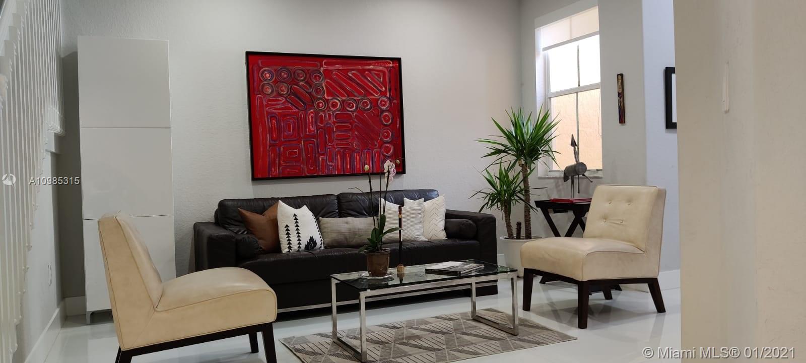 Very modern two story townhome completely remodeled in the very desired location of Antilles at Islands at Doral! Open concept kitchen with waterfall white quartz countertops, white glossy cabinets, island mount range hood, stainless steel appliances, huge pantry and marble backsplash. White porcelain floors on first story and dark wood floors on second story. New fence and travertine pavers installed in the patio recently. Built in closet in master bedroom and new A/C unit installed. Access to the Islands at Doral Clubhouse featuring swimming pool, tennis courts, kids playground, cabanas, tiki huts and more! Very close to great schools, shops, restaurants, grocery stores and much more! This unt is unique and beautifully remodeled! A MUST see!