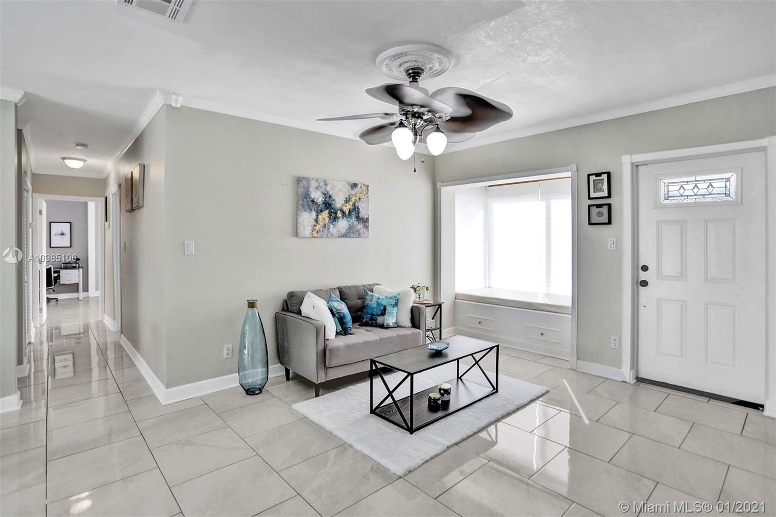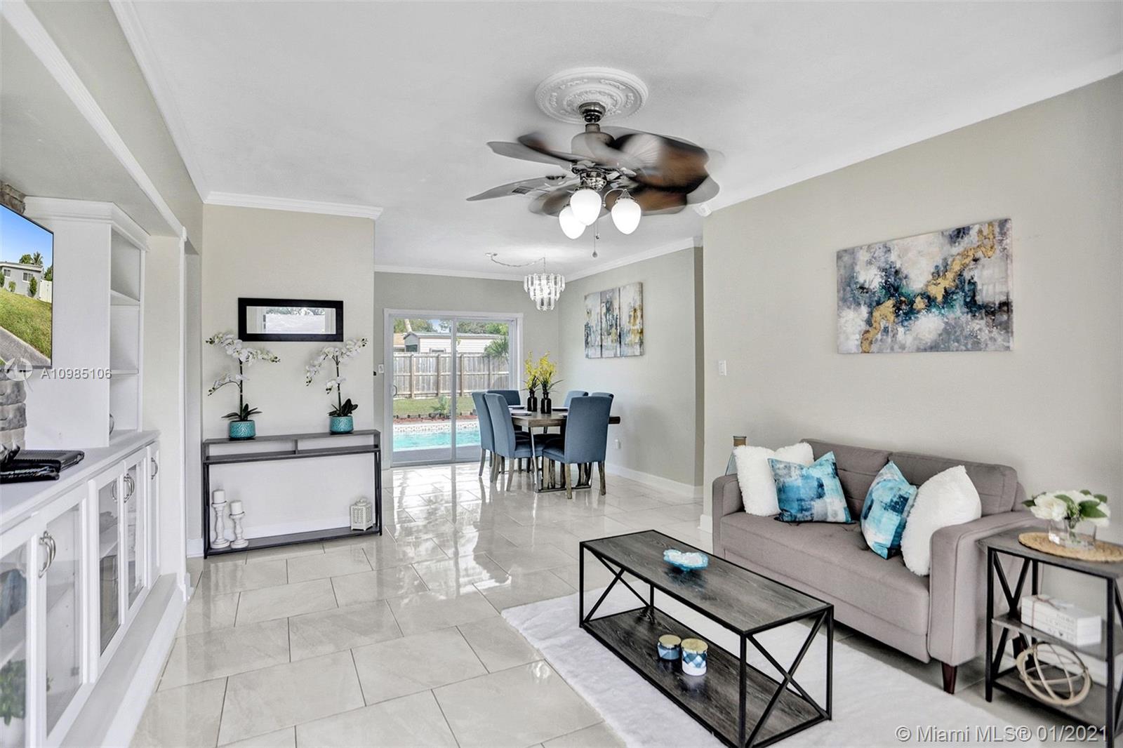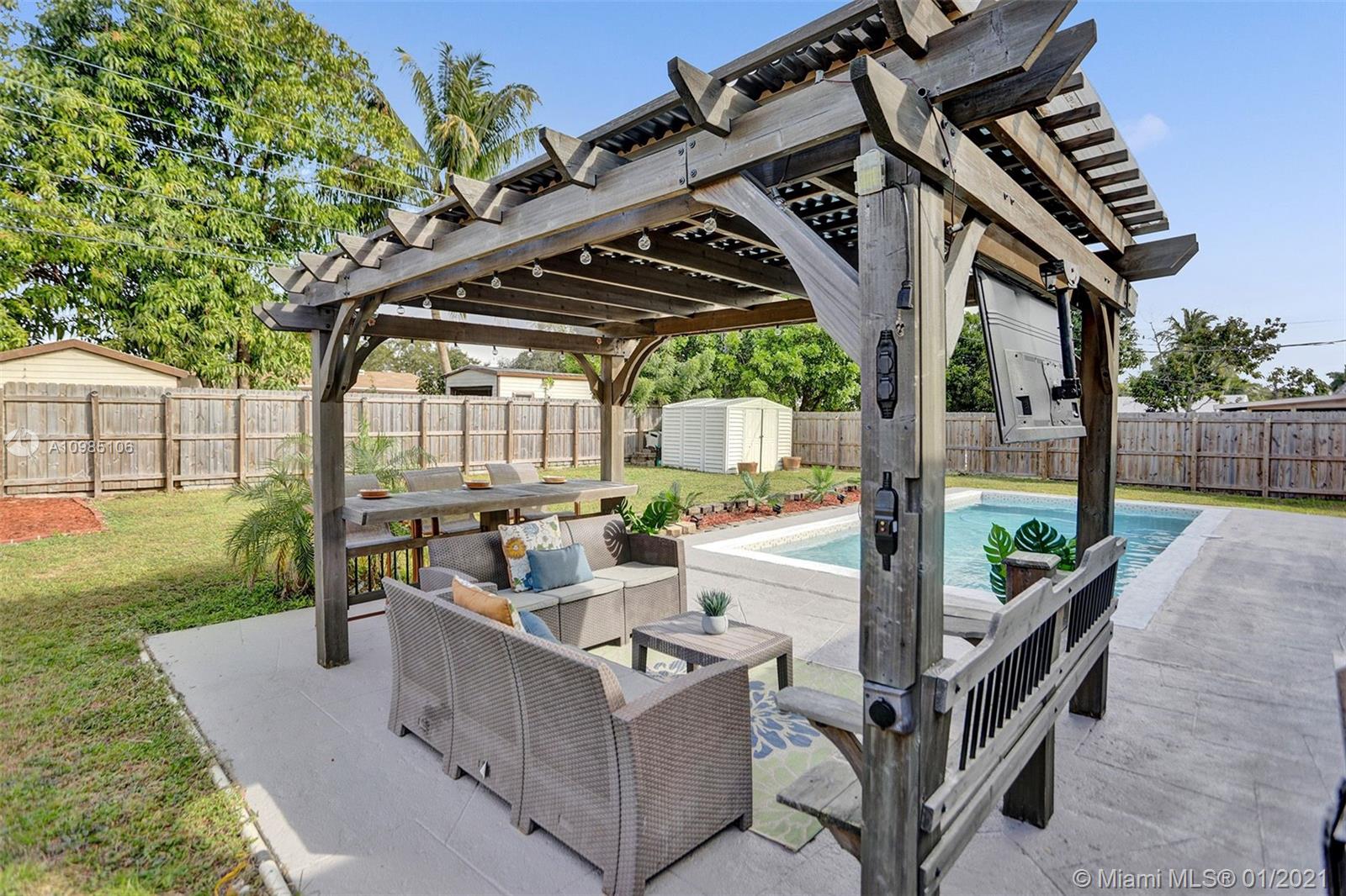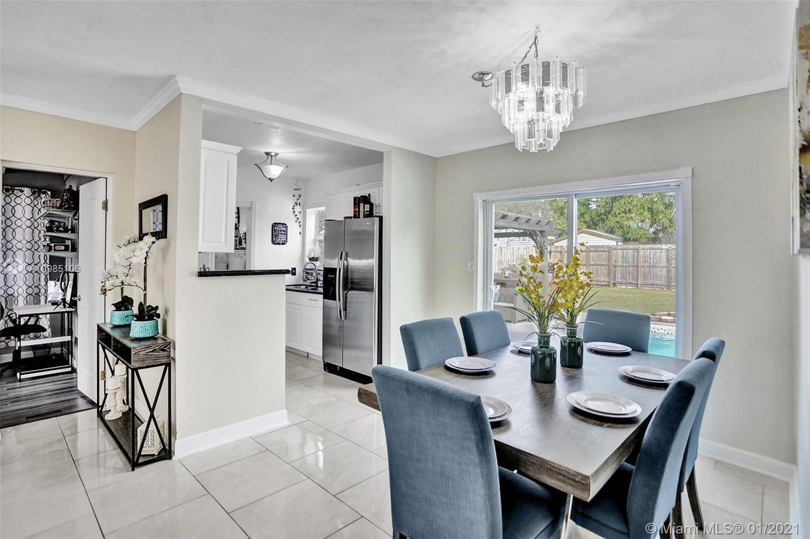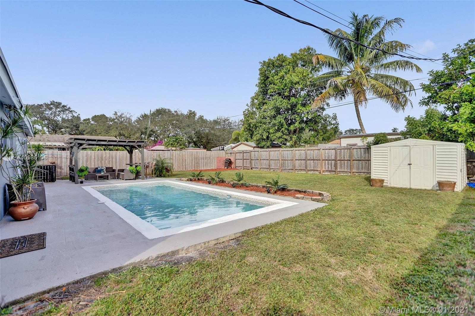 A HOME BUYER'S DREAM! Featuring 3 bedrooms & 2 remodeled baths, IMPACT WINDOWS, SOLAR WATER HEATER, POOL & PERGOLA deck in a spacious backyard. Natural bright living area with crown molding and formal living room with views of the pergola & pool area. REMODELED KITCHEN with GRANITE COUNTERS & STAINLESS STEEL APPLIANCES. Luxurious MASTER SUITE with window wood casing, crown molding and IMPACT FRENCH DOORS to the amazing pool. Remodeled Master bath with quartz counters, glass basin sink and glass tiles. Near some of best public area, public schools, Hard Rock Hotel and area shops. A MUST SEE!!!
