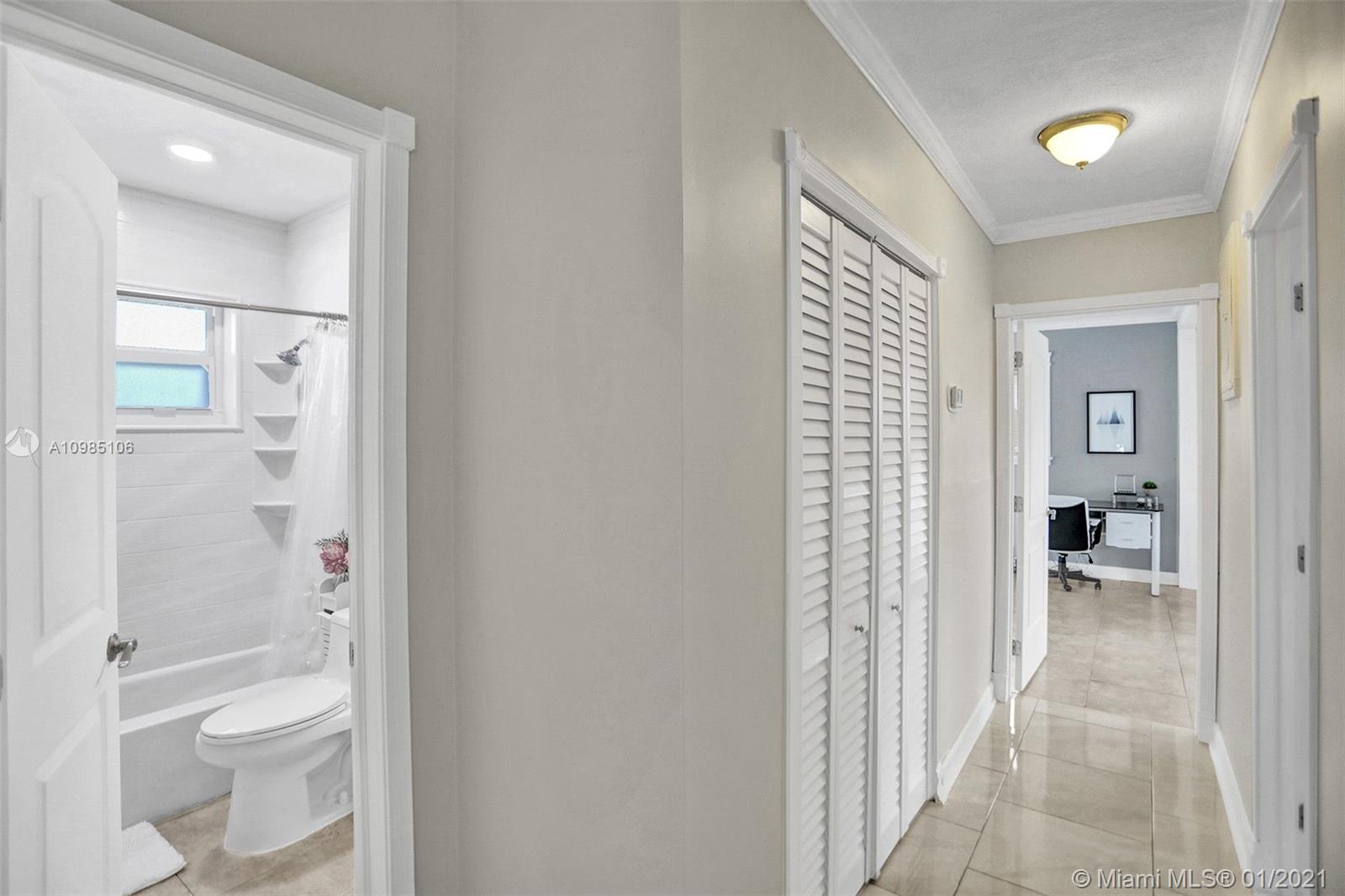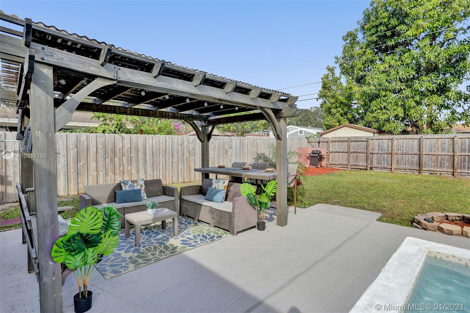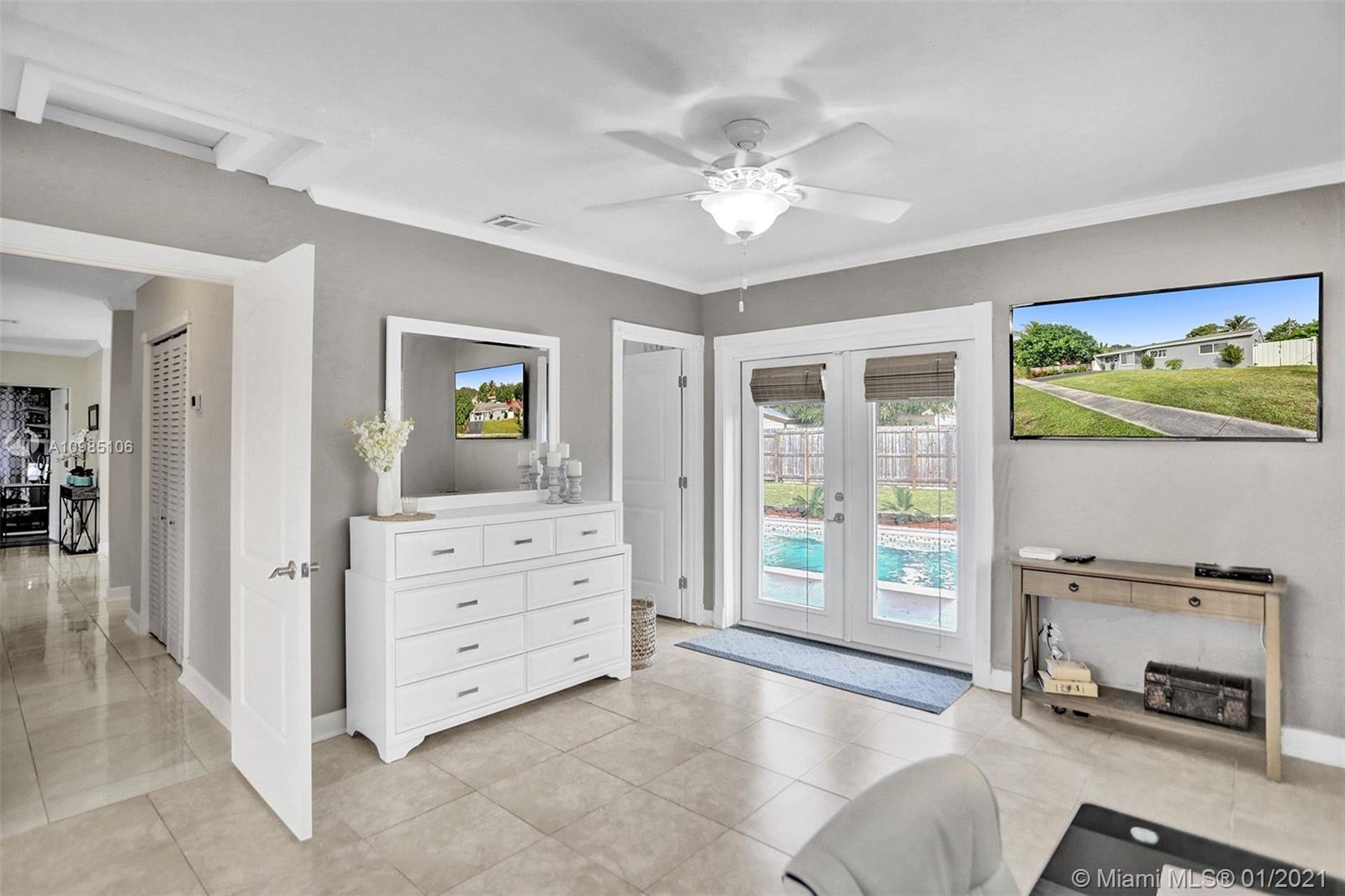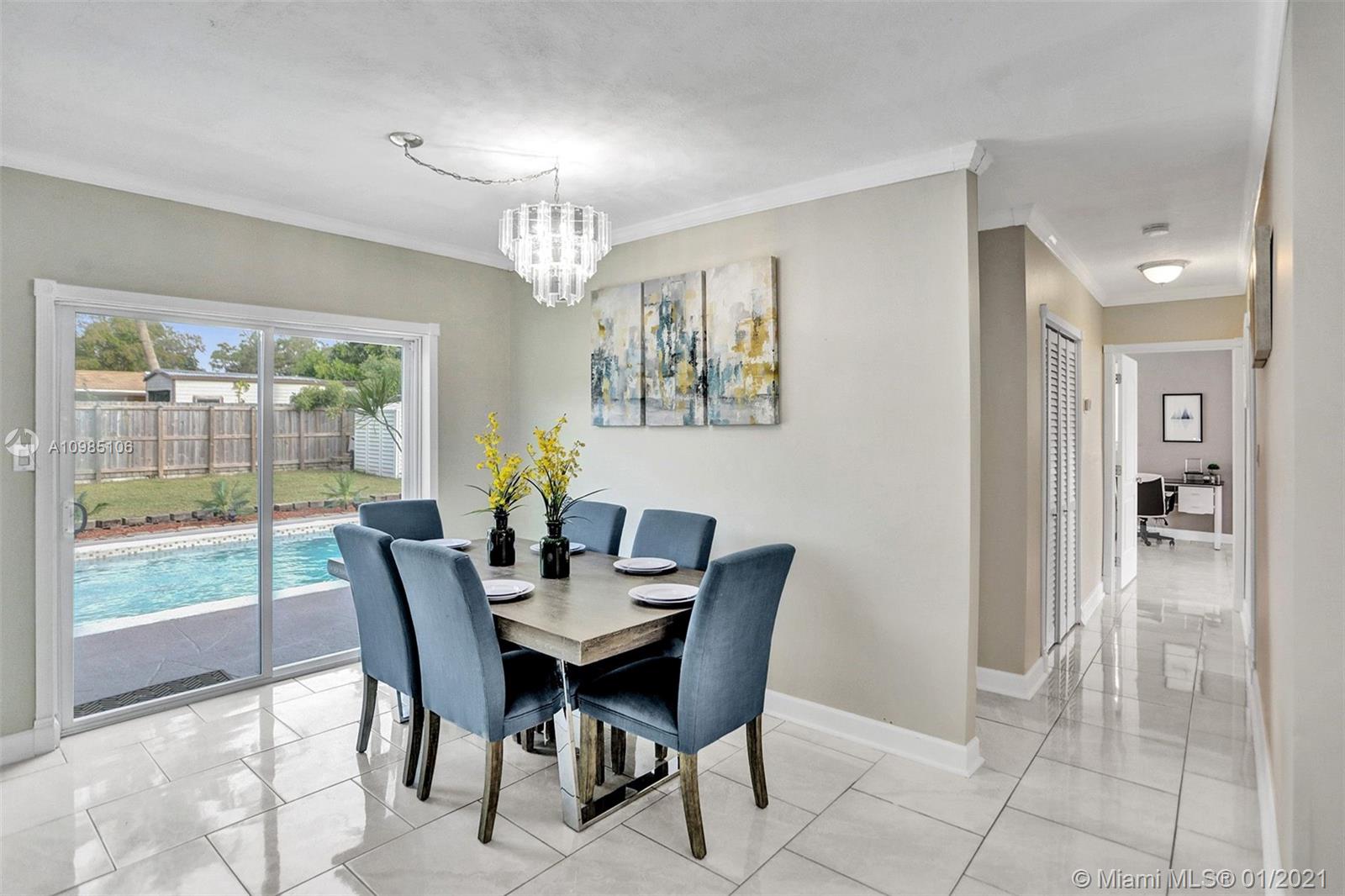 A HOME BUYER'S DREAM! Featuring 3 bedrooms & 2 remodeled baths, IMPACT WINDOWS, SOLAR WATER HEATER, POOL & PERGOLA deck in a spacious backyard. Natural bright living area with crown molding and formal living room with views of the pergola & pool area. REMODELED KITCHEN with GRANITE COUNTERS & STAINLESS STEEL APPLIANCES. Luxurious MASTER SUITE with window wood casing, crown molding and IMPACT FRENCH DOORS to the amazing pool. Remodeled Master bath with quartz counters, glass basin sink and glass tiles. Near some of best public area, public schools, Hard Rock Hotel and area shops. A MUST SEE!!!