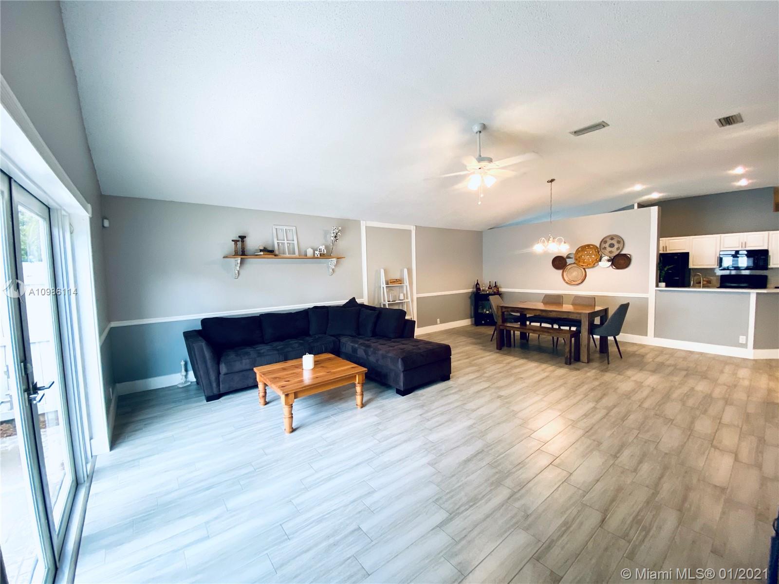 Charming & bright home with 3 bedrooms, 2 bathrooms & a 2 car garage, in the sought-after community of Silver Lakes in Pembroke Pines. Property boasts modern new flooring throughout & a newer Roof, AC, Water Heater & newly installed impact windows & doors. Walk into a large eat-in kitchen & an open dining & living room area with vaulted ceilings. Each bedroom with closets and a bathroom with shower/tub, while the spacious master bedroom includes 2 closets & a master bathroom with double sinks & walk-in shower. The 2-car garage provides plenty of storage space & a laundry/utility area. Relax in the quiet & private backyard & enjoy the many community amenities available to residents. Conveniently located within a short distance of beautiful parks, A+ schools, Malls, Restaurants, & Hospitals.