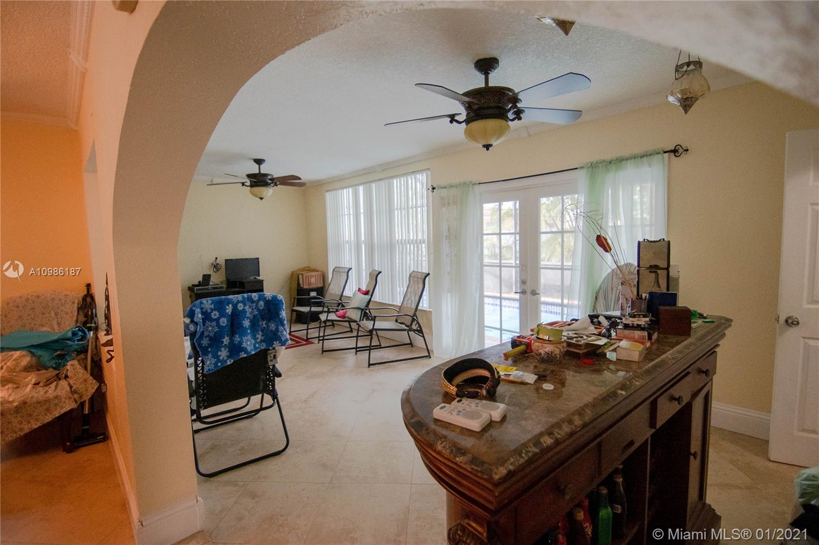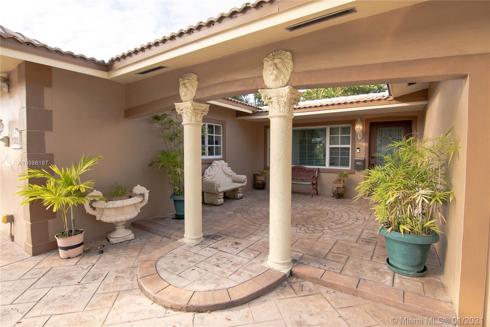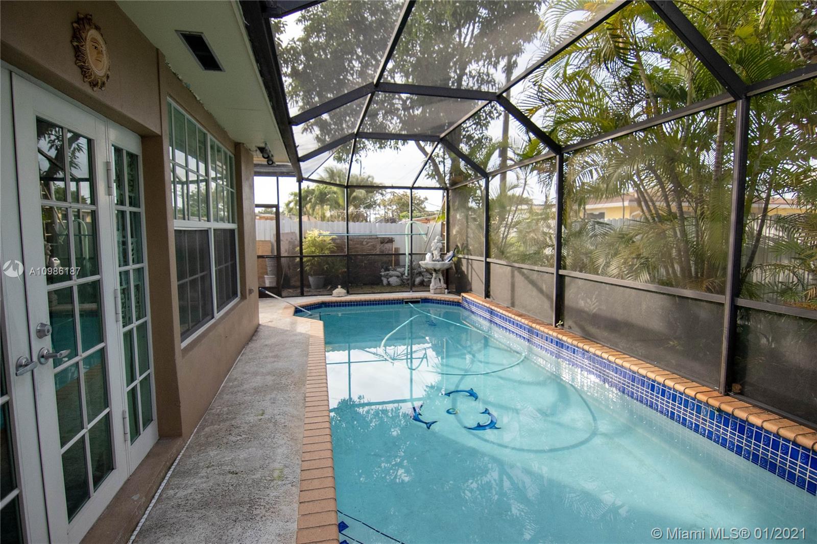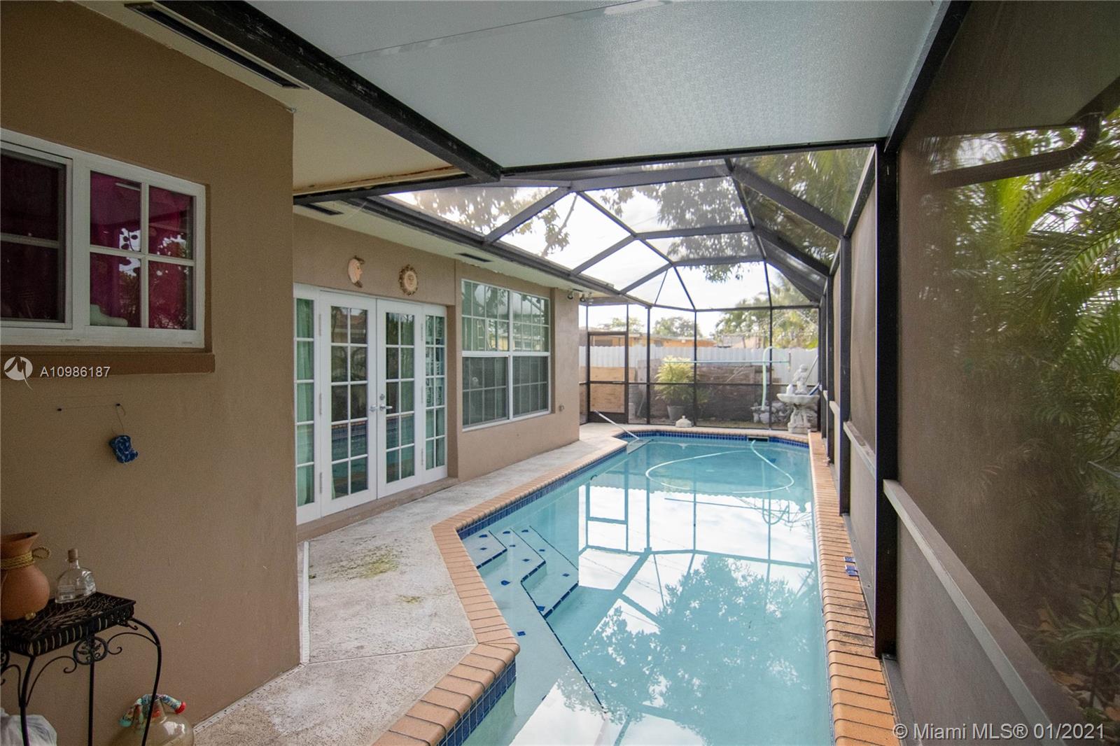 This beautiful Single family located in Hollywood features 3/2 bath, with bonus bedroom. 2 car garage with plenty of storage space. Stamped circular concrete driveway with decorative island, plenty of parking in front of the property. Nice front patio entrance with columns. Stainless appliances, Formal dinning & living areas. Wood flooring in bedrooms, tiled floors throughout. Pavers around the sides & rear of the property. Side gate access to backyard from either side, white aluminum fencing all around . Rear patio screened in, well maintained pool area & concrete deck, plenty of entertaining space. Private back yard, and many more features you must see for yourself! Do not miss out on this opportunity! Call today for your viewing appointment. (furniture does not convey)