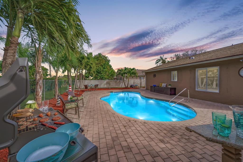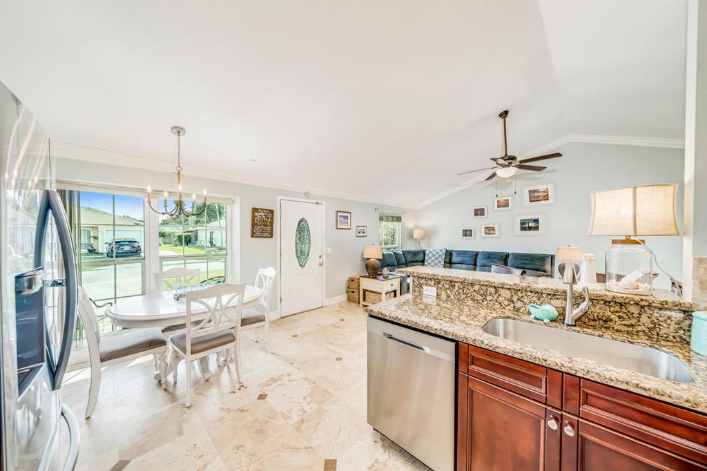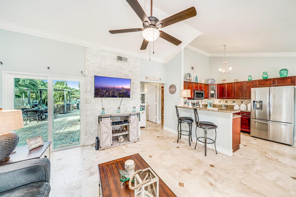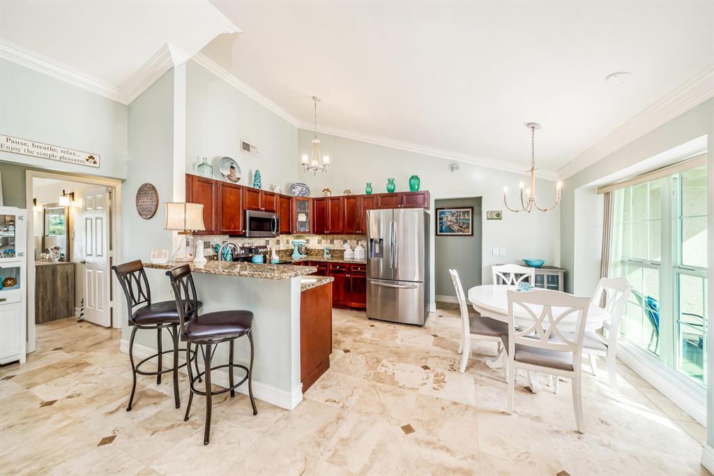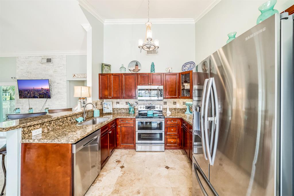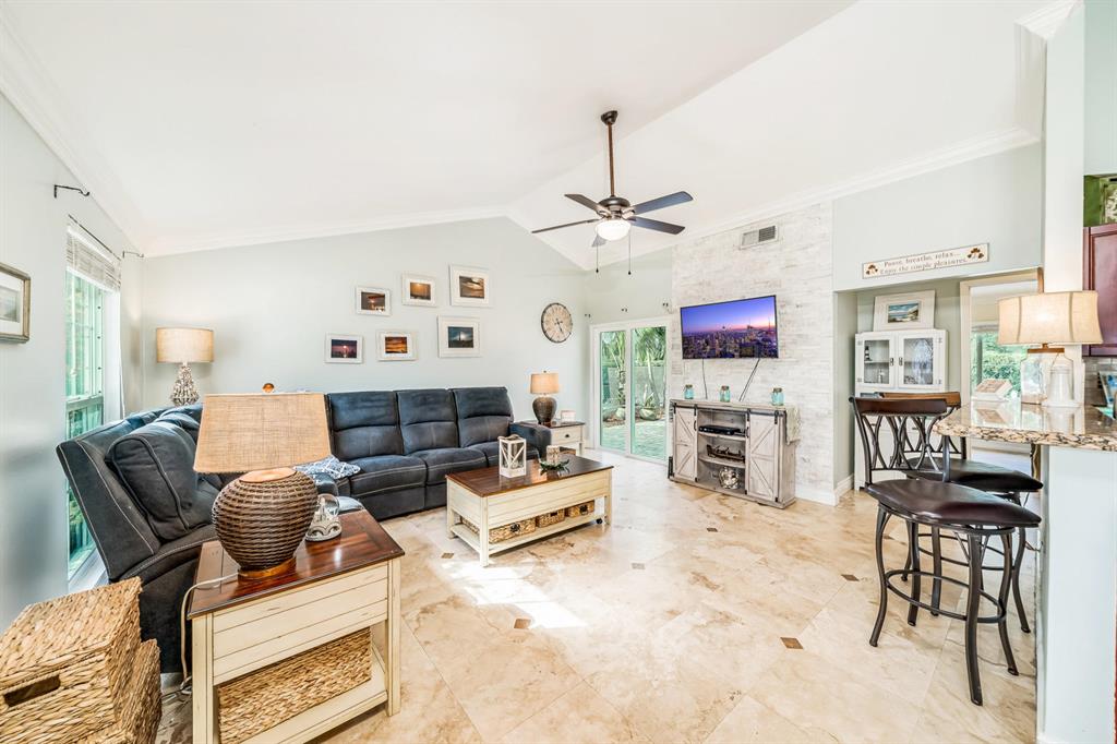 Back on market due to buyers financing fall through. Upgrades galore in this 3 bedroom 2 bath pool home! The 3rd bedroom is a converted garage. Travertine flooring & crown molding throughout, even in the bathrooms which are also quite amazing! Seller Just added in 2020 Hurricane impact(category 5 ) windows & slider w/a 5 year warranty that is transferrable. Designer stacked stone decorative wall. Open, bright and spacious with cathedral/vaulted ceilings. Gourmet kitchen w/granite countertops & tile backsplash, wood cabinets ( 1 cabinet with glass insert ), Samsung Stainless Steel appliances ( French Door refrigerator with auto fill pitcher, Double oven, microwave and dishwasher), Plus a sunny eat-in kitchen area. Best of all-the backyard features