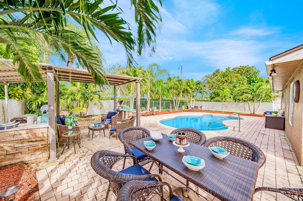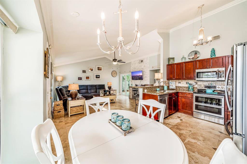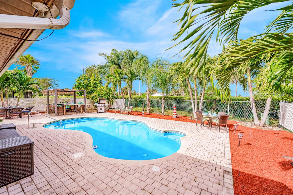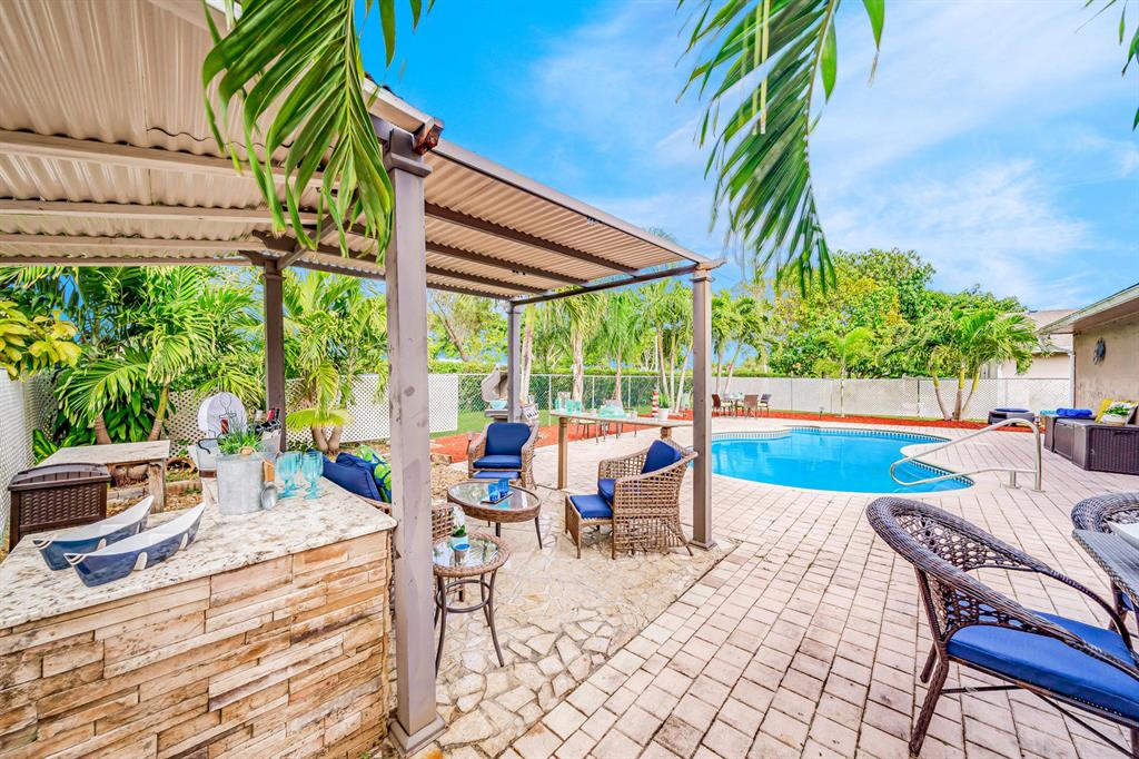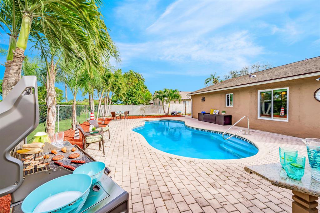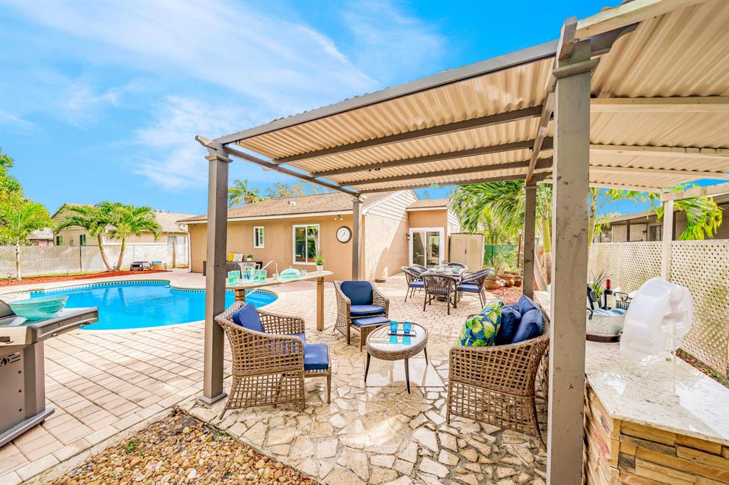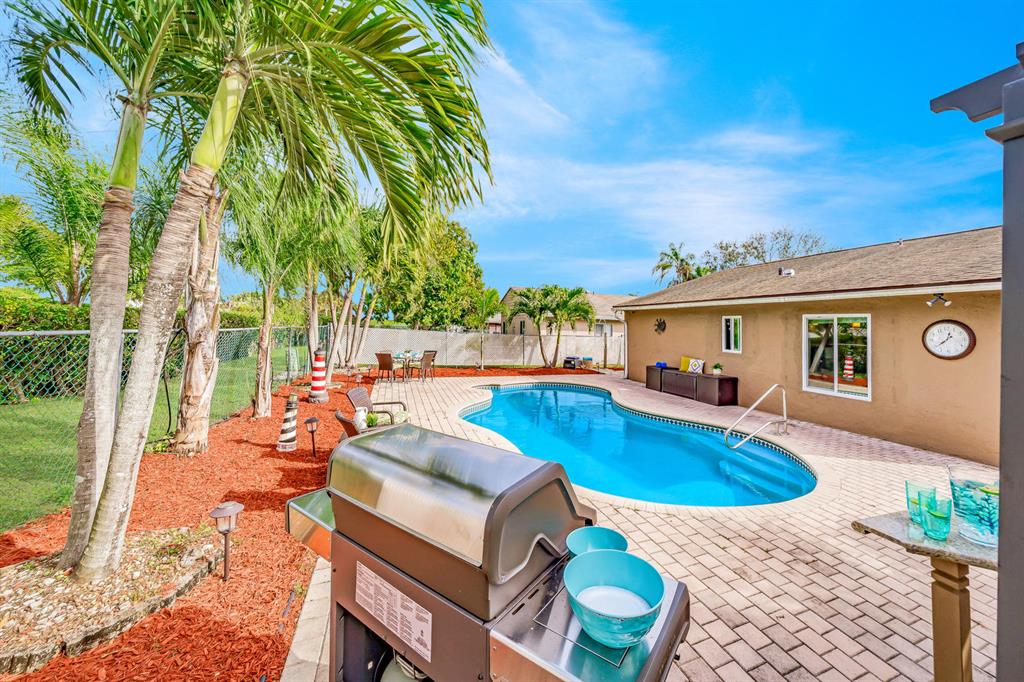 Back on market due to buyers financing fall through. Upgrades galore in this 3 bedroom 2 bath pool home! The 3rd bedroom is a converted garage. Travertine flooring & crown molding throughout, even in the bathrooms which are also quite amazing! Seller Just added in 2020 Hurricane impact(category 5 ) windows & slider w/a 5 year warranty that is transferrable. Designer stacked stone decorative wall. Open, bright and spacious with cathedral/vaulted ceilings. Gourmet kitchen w/granite countertops & tile backsplash, wood cabinets ( 1 cabinet with glass insert ), Samsung Stainless Steel appliances ( French Door refrigerator with auto fill pitcher, Double oven, microwave and dishwasher), Plus a sunny eat-in kitchen area. Best of all-the backyard features