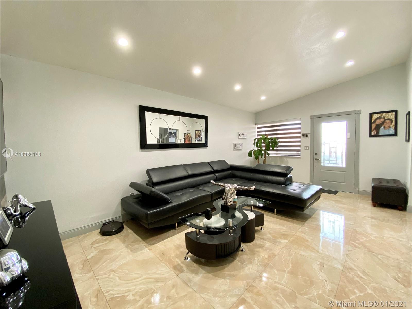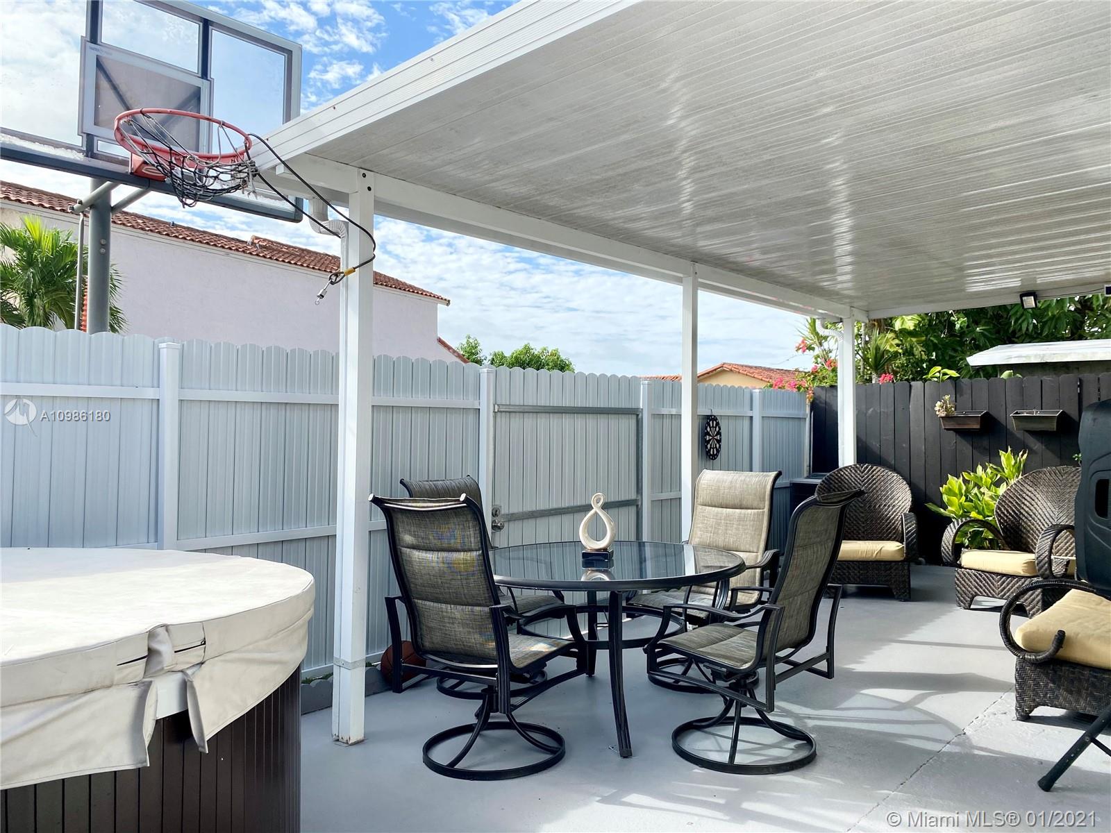 Your search is over! Beautiful, remodeled, and super clean 3/2 home in an excellent neighborhood with 24 hrs security. House features a modern kitchen with granite countertops and SS appliances. Remodeled Master Bath, rectified porcelain, wooden floors in the bedrooms, and new zebra blinds. New roof installed in July, newly paved driveway for up to 3 cars, new fence done in August & Impact-resistant door. A/C is only 3 years old and, a Titan water heater was installed a year ago. Covered patio with access to visitor's parking making it perfect to entertain. HOA is only $88 a month. Centrally located, minutes to 826 and I-75, hospital, shopping centers, etc. Ring doorbell, Camera, front plant pots & Jacuzzi are excluded from the sale. Sellers need to secure another house before selling.