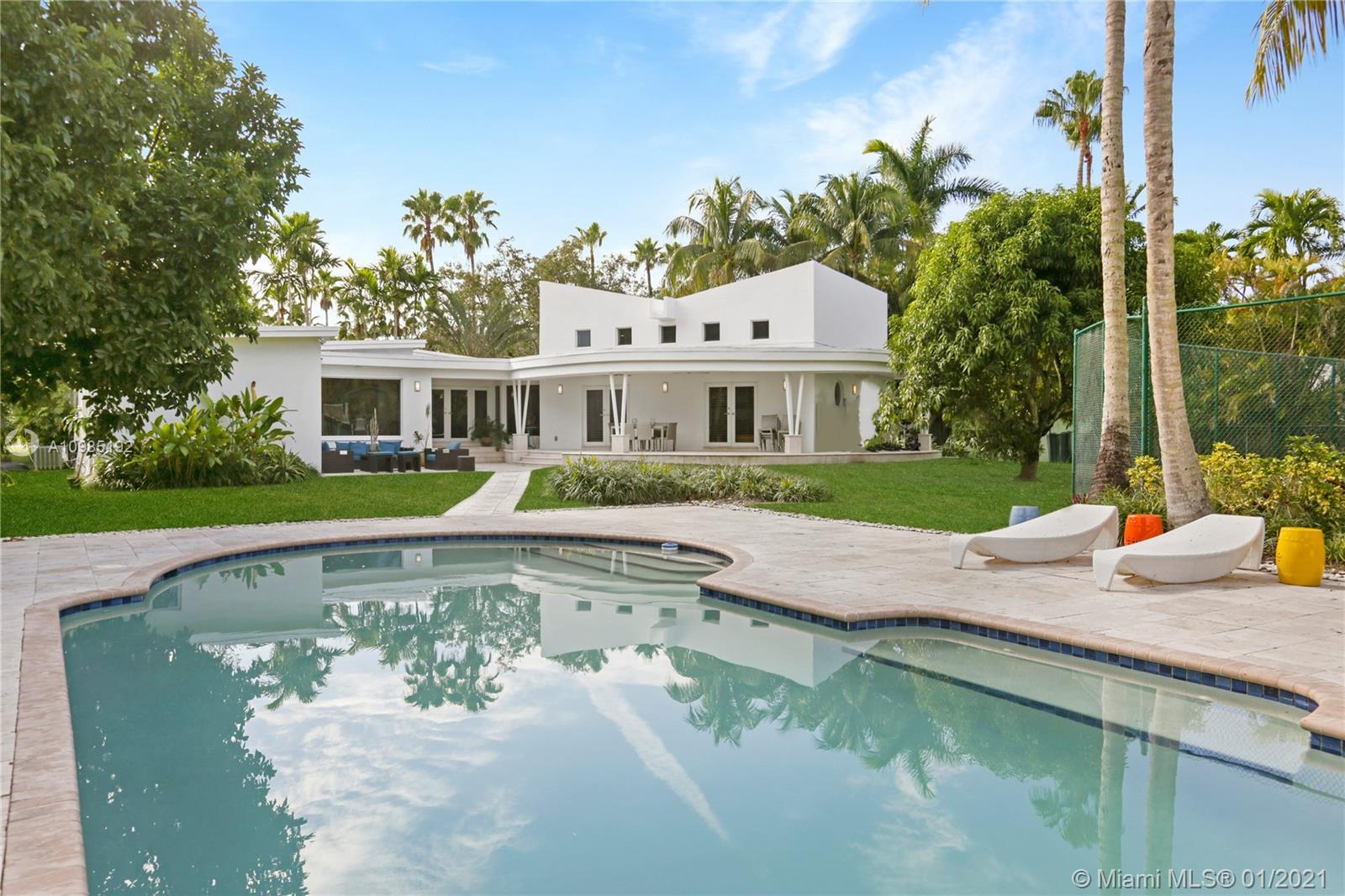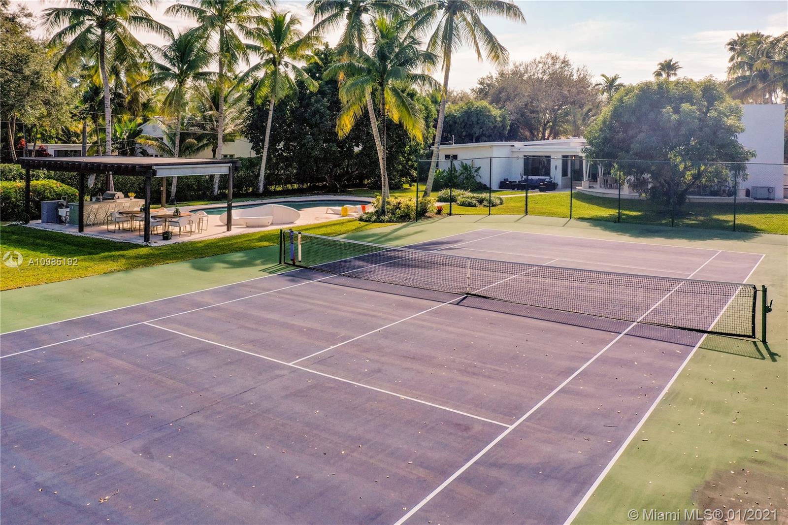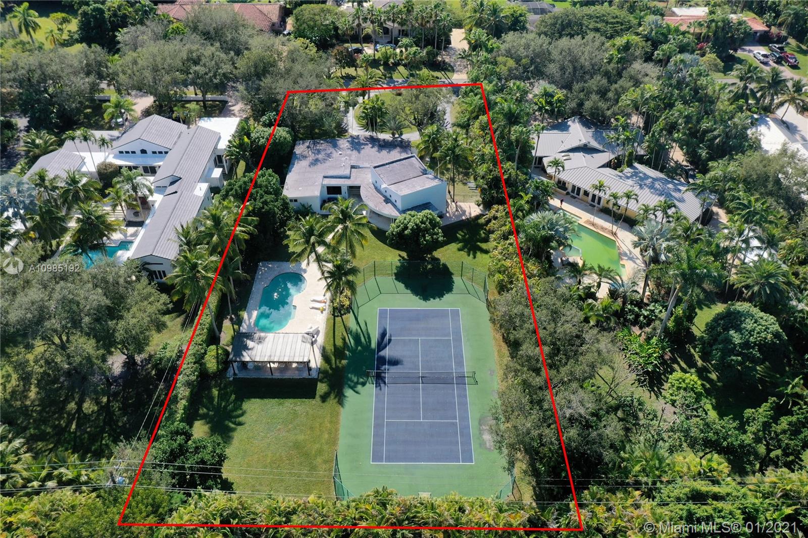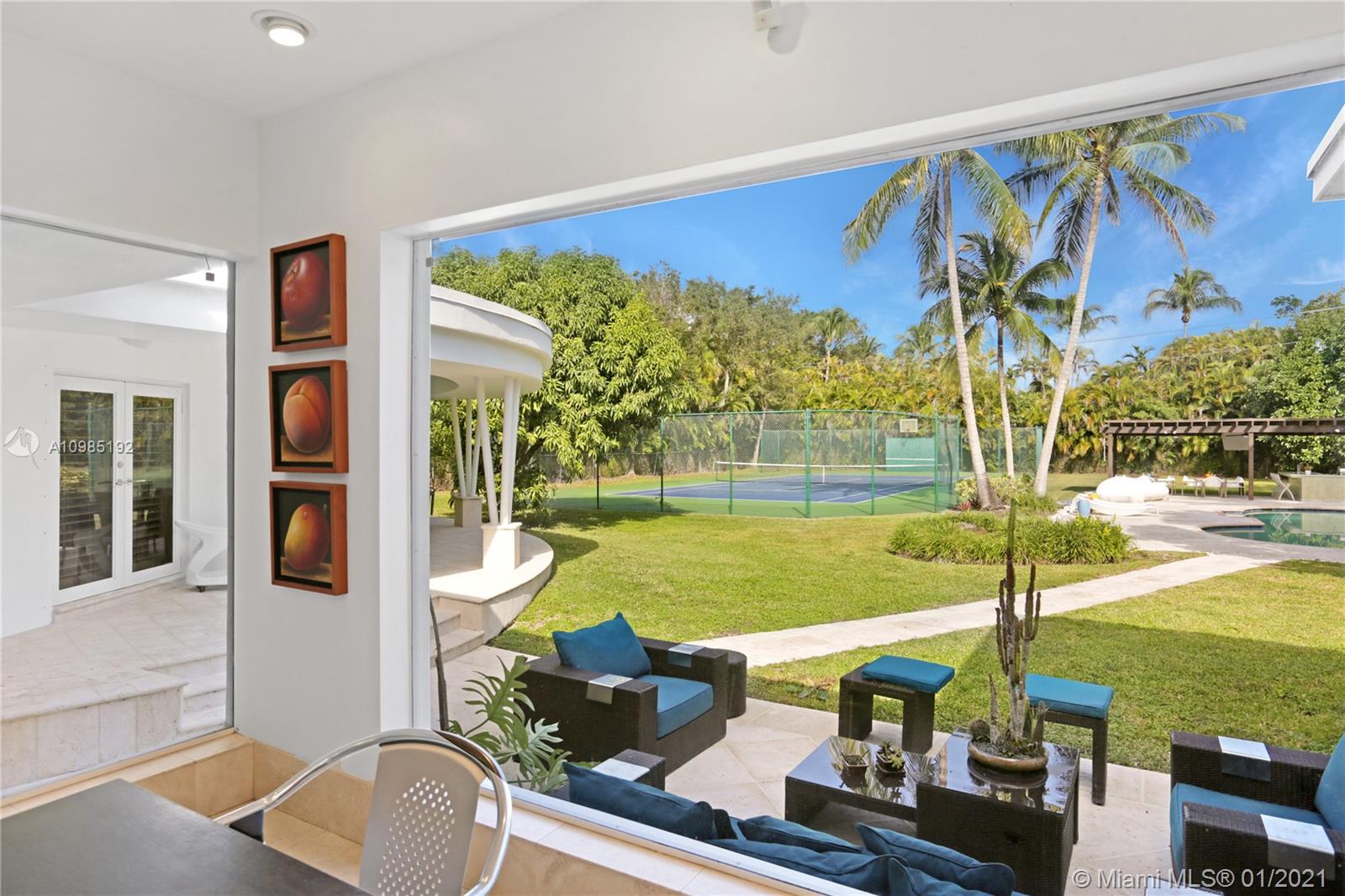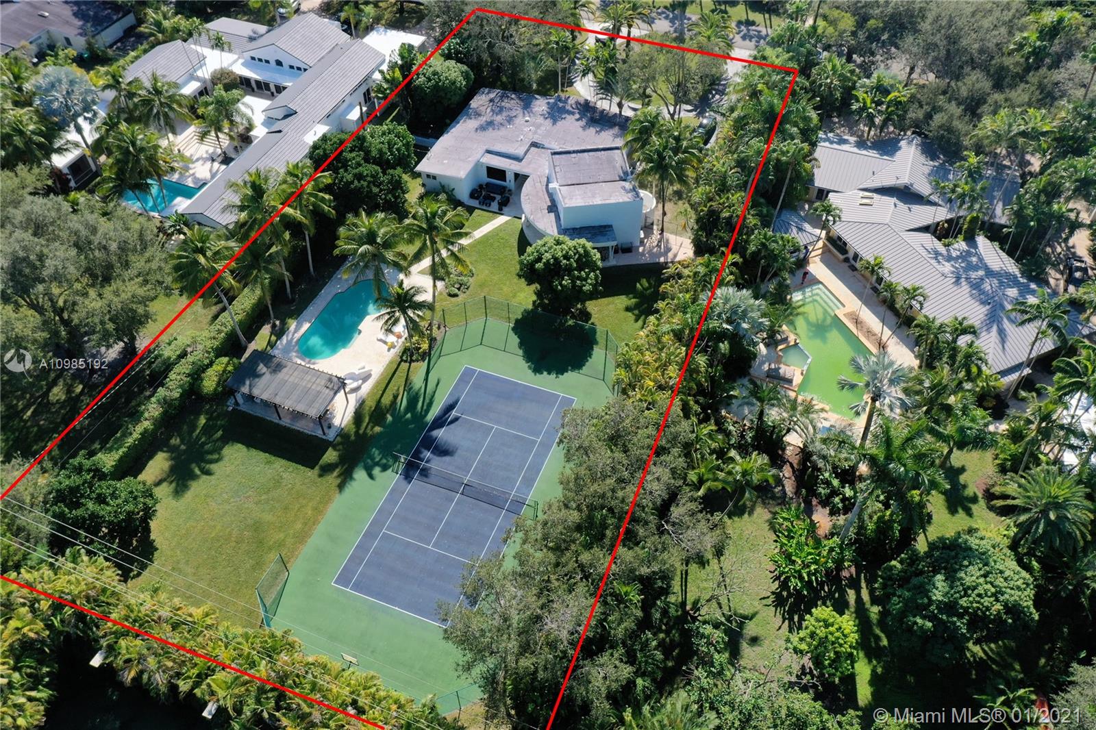 Beautifully updated Pinecrest residence offering 4 bedrooms and 3-1/2 baths, N/S tennis court, and pool. The oversized master bedroom suite opens to the home's tropical pool area. The kitchen and breakfast areas offer open views of gardens, pool and summer kitchen, and a very special gazebo. Wood and marble floors throughout. Sought after Pinecrest location.