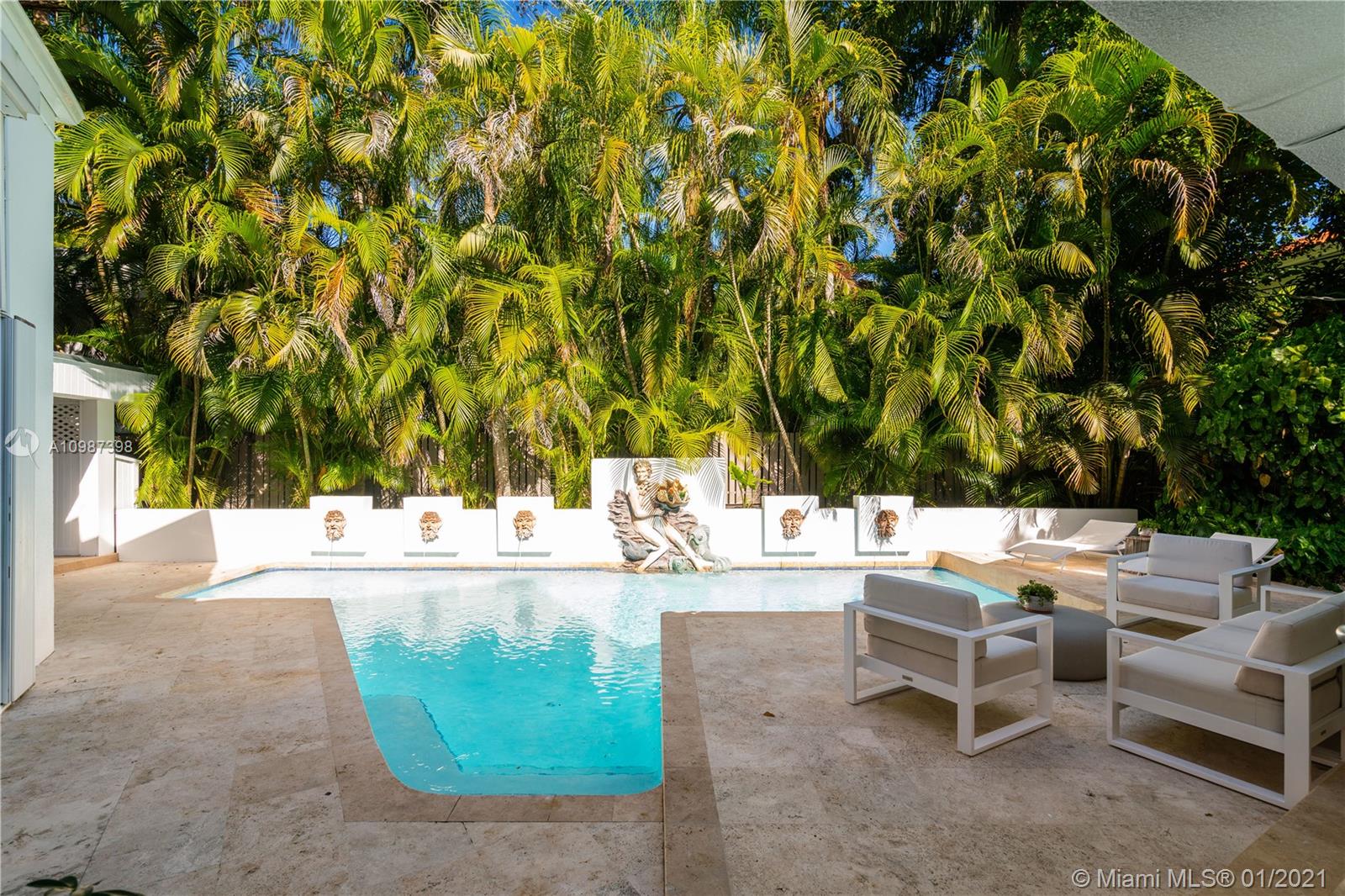 This beautiful contemporary is in a prime South Coconut Grove location. Dramatic and vibrant, this home is nestled within a lushly landscaped garden, offering daily reminders of the tropical paradise that defines the Grove. The living room overlooks the newly resurfaced (and very fun) swimming pool as well as a pavilion for alfresco dining. The master bedroom, with his and hers walk in closets and updated master bath, is a Zen retreat. A second-floor loft which can serve as a library, office, gym, or media room has a wet bar with a wine cooler. The efficient kitchen with its gas cooktop and Viking appliances overlooks a charming dining room which will be the setting for long, lingering dinners and great conversation. One car garage & covered carport. A Very Special Home.
