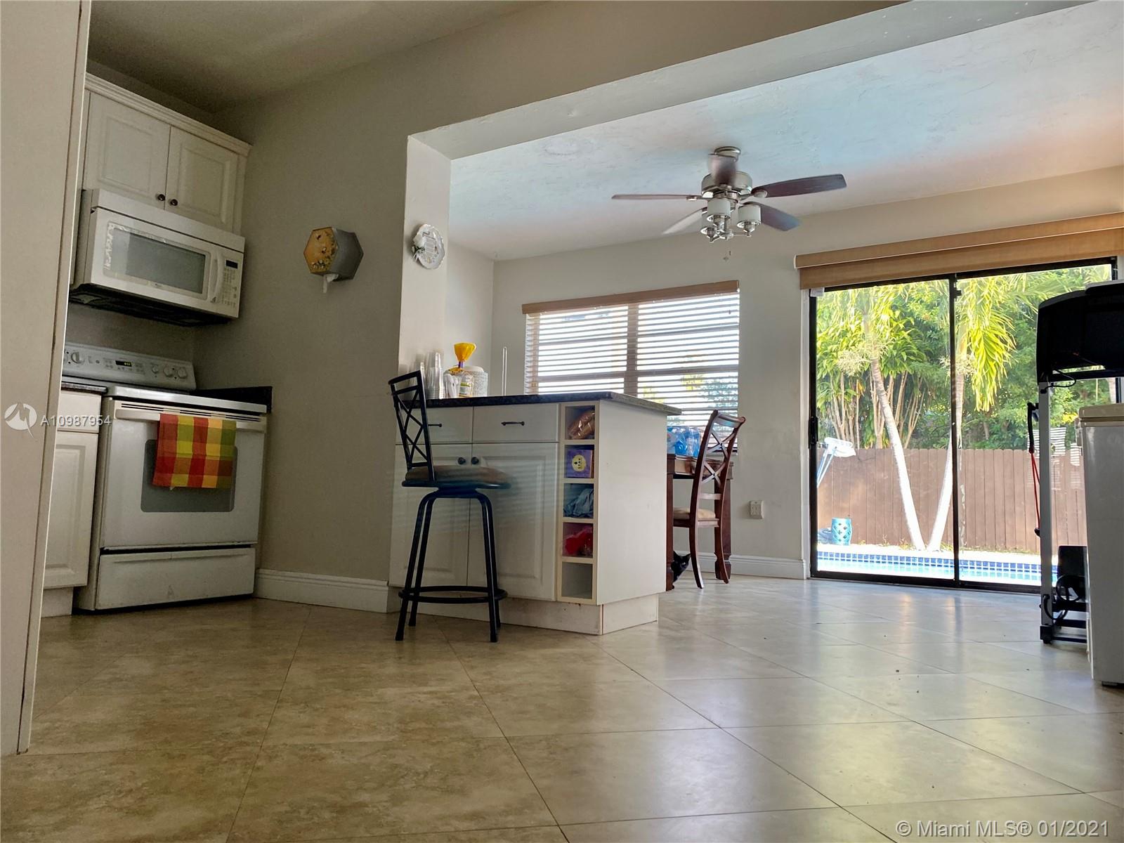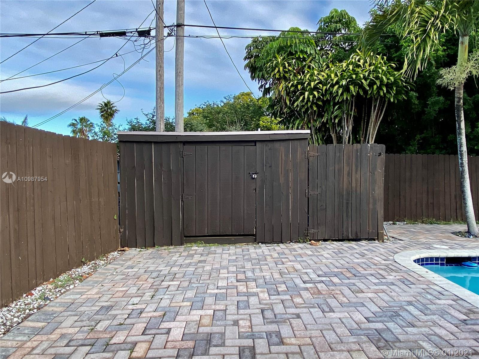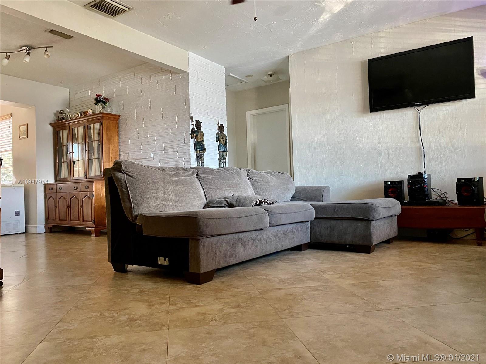 Beautiful pool home , fenced patio with nice pavers and palm trees, 2 sheds, one year old roof,circular driveway, and lot of space for additional parking, updated kitchen and bathrooms, tile floor in all areas. 3 bedrooms and 2 bathrooms, laundry room, tank less water heater, hurricane shutters, Florida room. Quite, nice and safe neighborhood, and free of home owner association dues. Close to the South Broward Community College, schools and the Florida Turnpike.