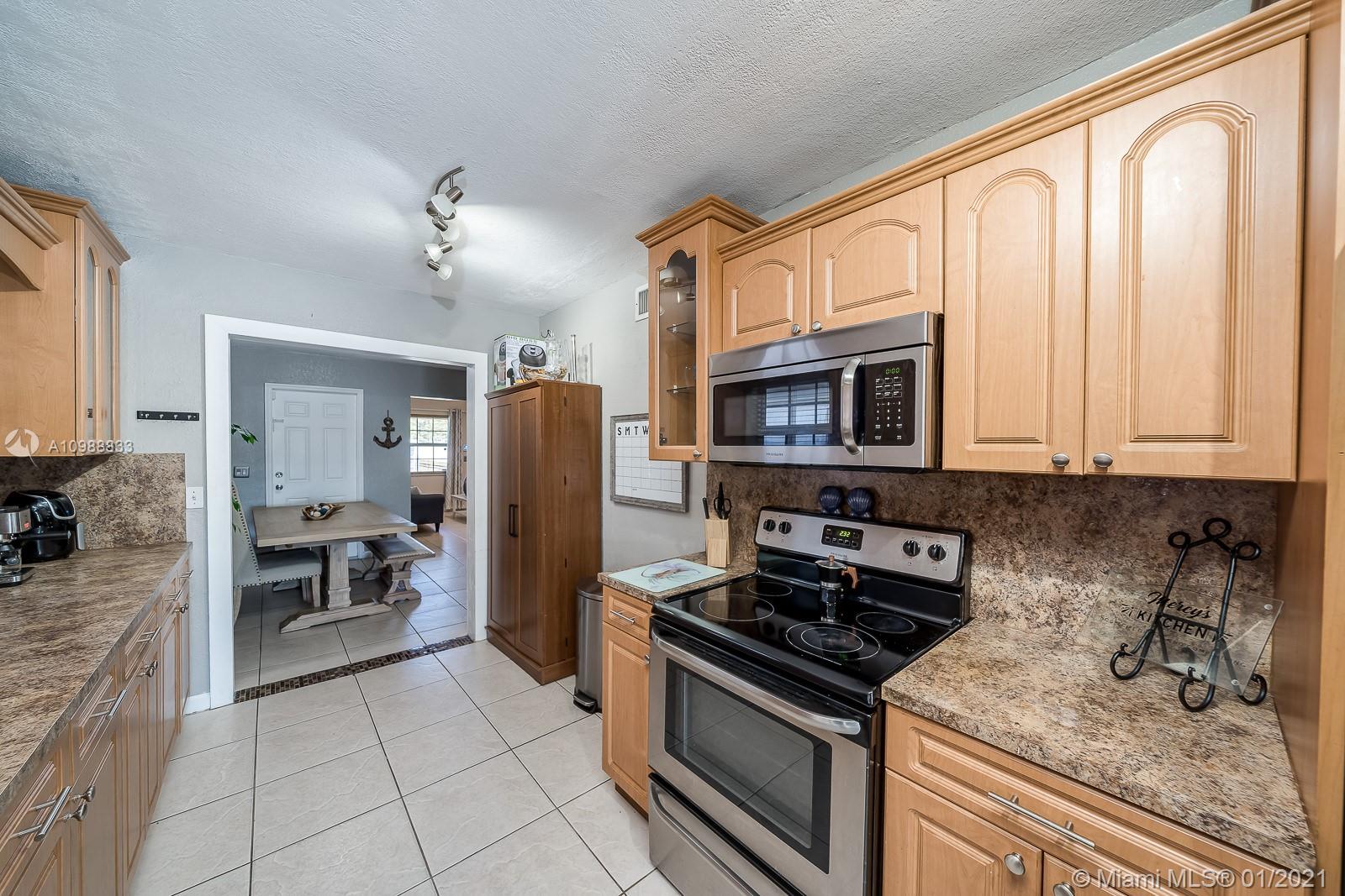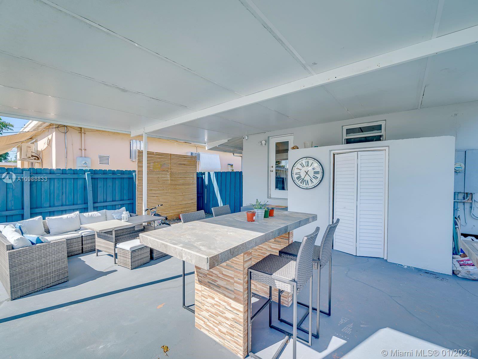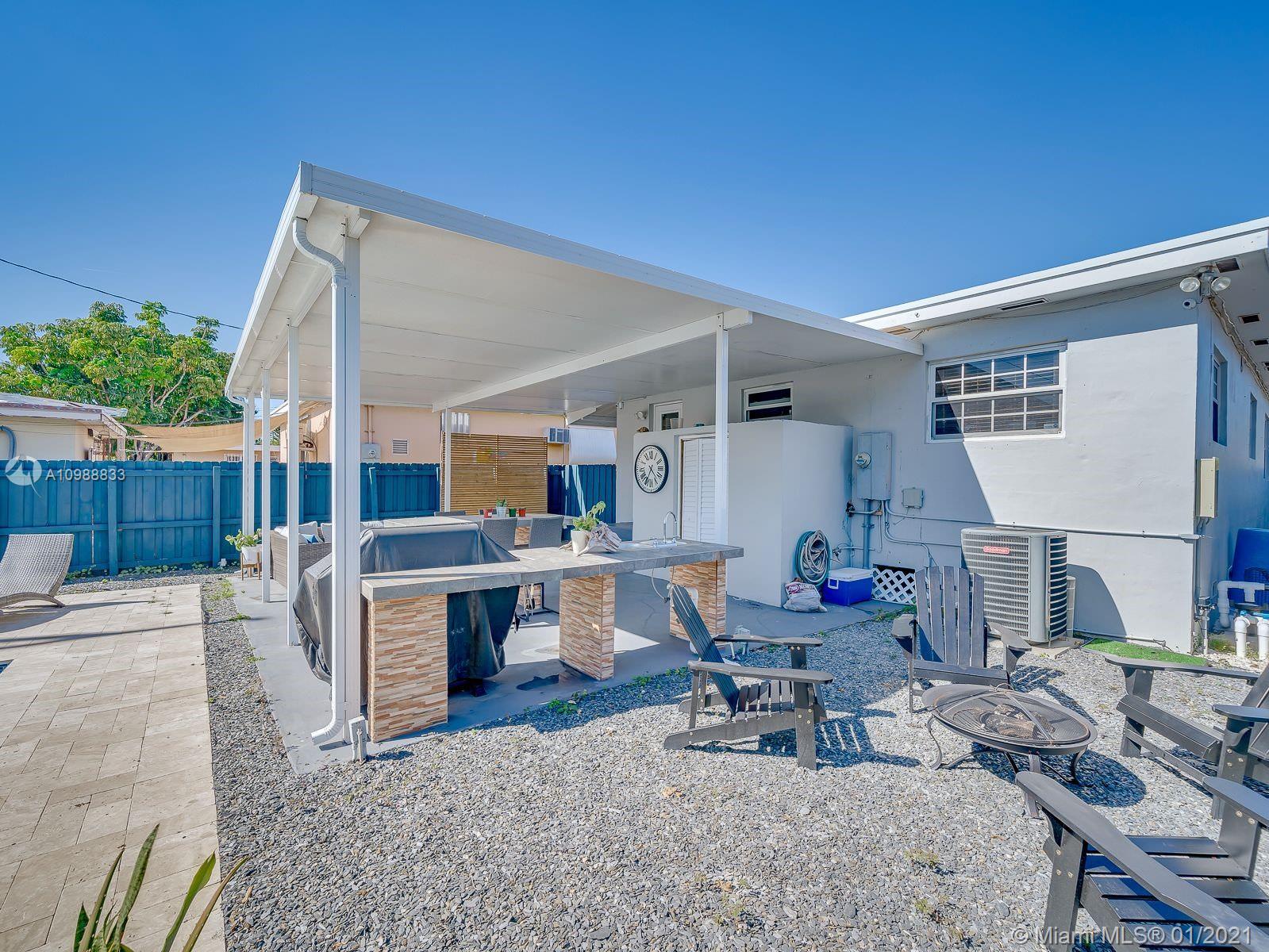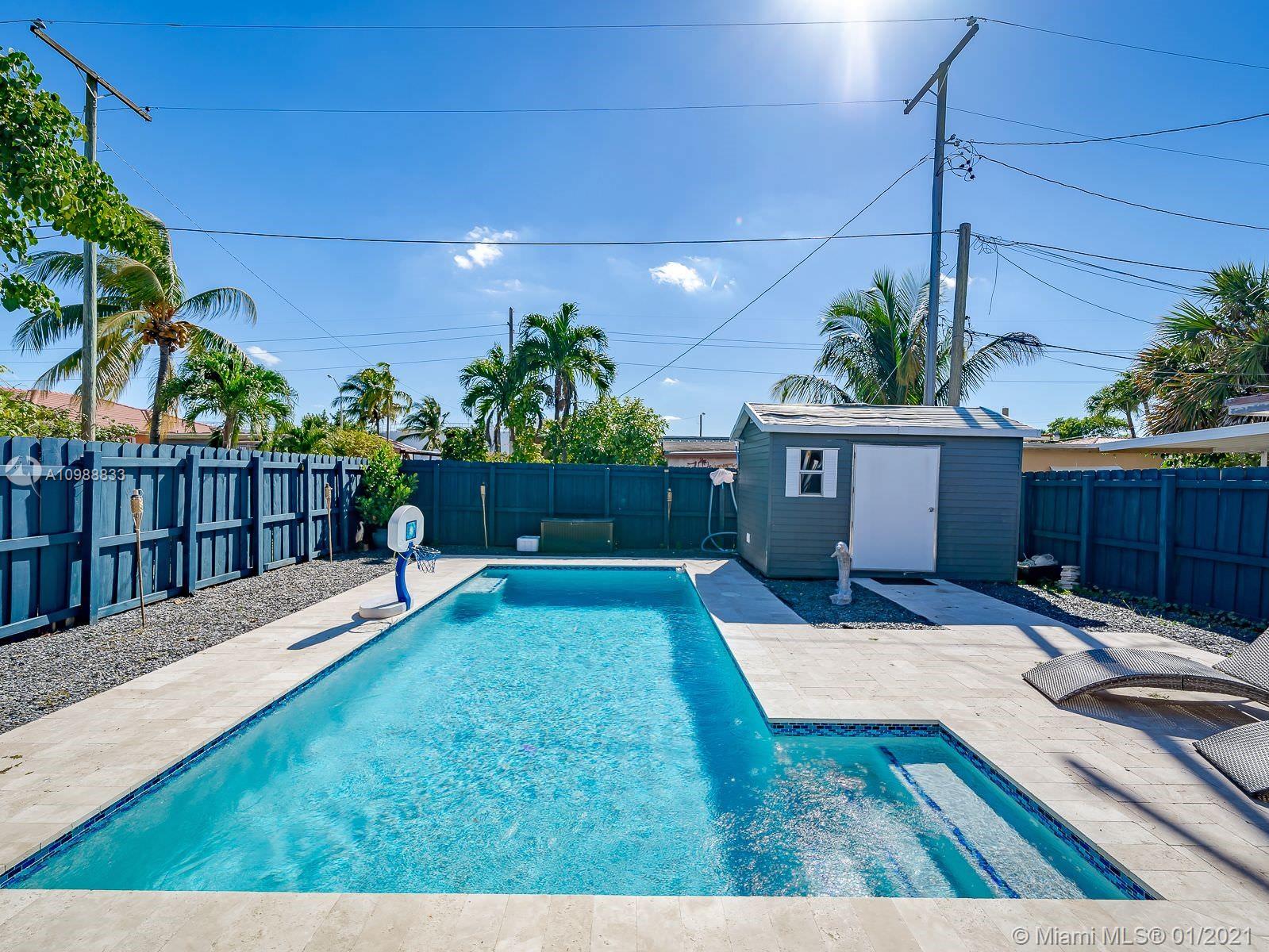 Beautiful 3/1 home in Hialeah. Great curb appeal with front yard landscaped for privacy and a covered carport that can convert into additional living space. The exterior of the home has been freshly painted. The backyard features black slate rocks, a covered patio to protect your built-in outdoor kitchen and table. This home is perfect for entertaining guests by your BRAND NEW pool with a travertine deck. The home also boasts a BRAND NEW roof, a spacious storage shed and an enclosed laundry room. Inside you will find stainless steel kitchen appliances, granite countertop, Beautiful wood flooring and tile throughout. The home comes with Ring doorbell security and security cameras installed. . This home you will love, Come see it Today!