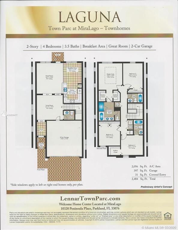 Desirable Laguna model. Spacious true 4 bed 3.5 bath 2 car garage floor plan with 2,484 sf. Neutral tile throughout the first floor with elegant lighting decorating the 9' ceilings. Gorgeous quartzite stone accent wall. Kitchen boasts upgraded Samsung appliance package, espresso cabinets, granite counters, glass tile backsplash and custom oversized pantry. Hurricane impact windows / doors dressed with modern electric blinds. Generous 2nd floor master suite. Garage is equipped with a vented grid lock tile flooring and 2 overhead storage racks. Ring doorbell, keypad entry, and multiple camera sec. system. Extended paver patio with a fully fenced backyard. Enjoy exclusive lifestyle amenities at 3 state-of-the-art facilities including a 24,000 sf club MiraLago and Cascata. A rated schools