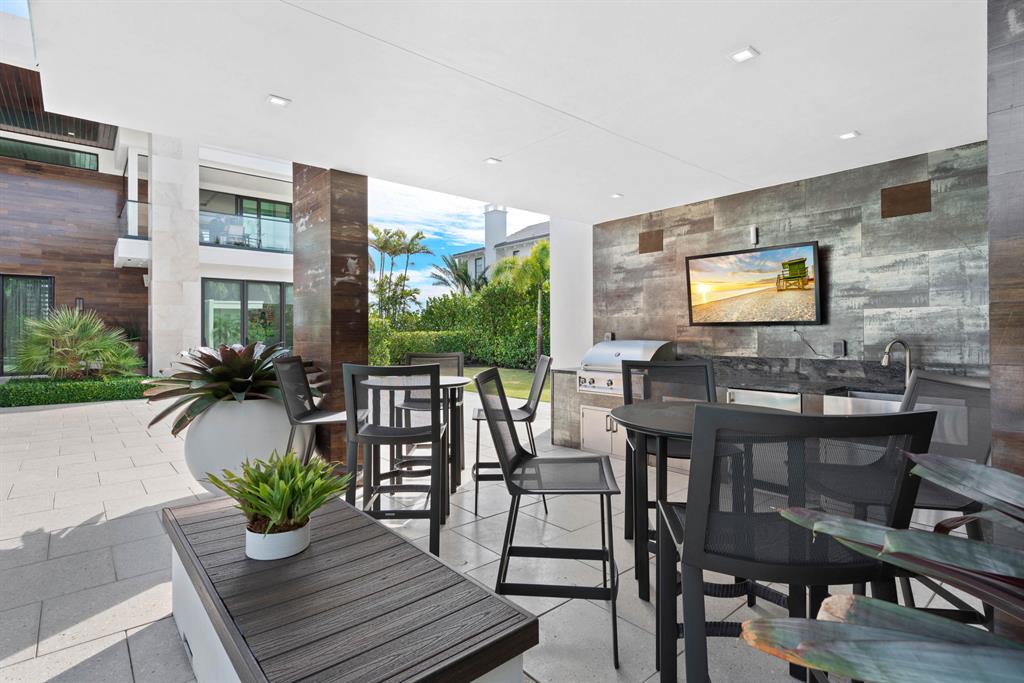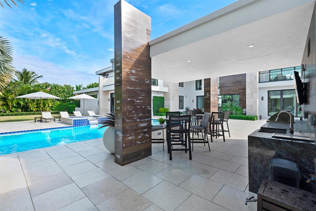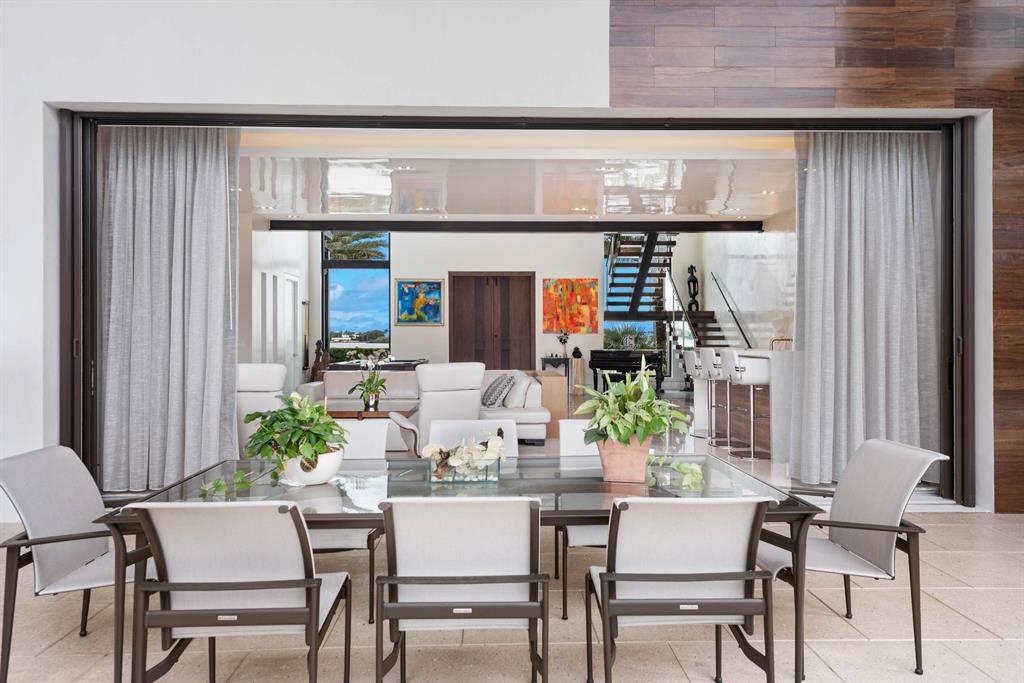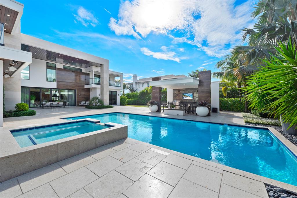 6511 S. Flagler Drive is recognized as one of the most aesthetically appealing waterfront homes in the Palm Beaches. This masterful contemporary design, conceived by In-Site Design Group architects, provides for effortless modern living and entertainment by combining expansive interior and exterior spaces that maximize function and beautiful eastern views across a 2/3 mile wide expanse of the intracoastal waterway. Situated on .64 acres, the home offers sufficient rear lawn space to accommodate multiple outdoor activities, a spacious pool deck, a separate shade structure that houses an outdoor kitchen, dining area, bathroom, and fire pit. In addition to the nearly 7,200 sqft of air conditioned living space, the home boasts nearly 1,200 sqft of open and covered second floor terraces