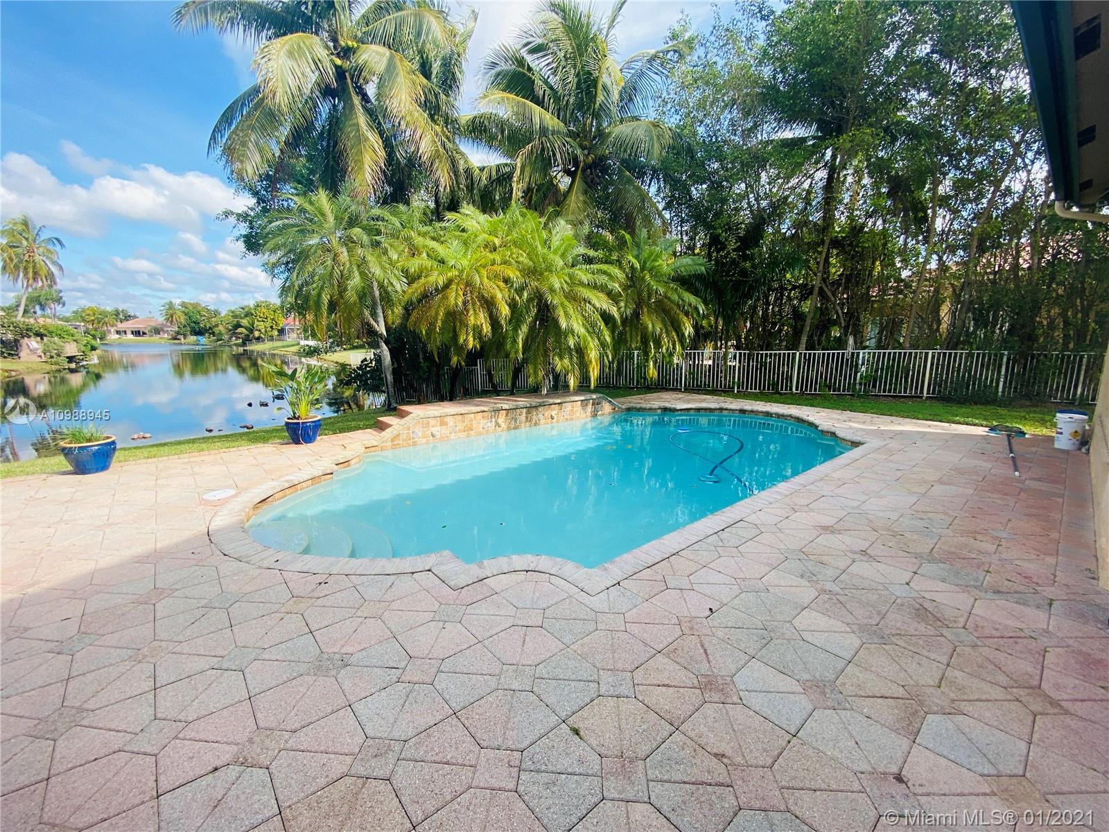 Westport's finest! As you enter the spectacular double entry doors you are greeted with breathtaking panoramic views of the pool and tranquil lake, this light & bright gem boasts high tray ceilings, and lots of natural light. The stunning view is visible from the living room, family room, kitchen and master bedroom. There are 4 spacious bedrooms located in a private enclave off the living areas. The vast master bedroom boasts his & hers walk-in closets. The ensuite bathroom has a roman tub & shower also has separate his and hers vanities. Brand new tile roof completed in 2020, 2 new Ac units, hurricane shutters, new washer & dryer, monitored security. Westport is located in prestigious Plantation with A-Elementary school, American Heritage HS. Close to highways, restaurants & shopping.
