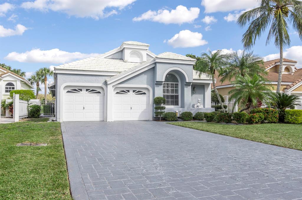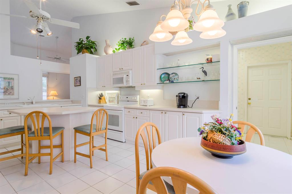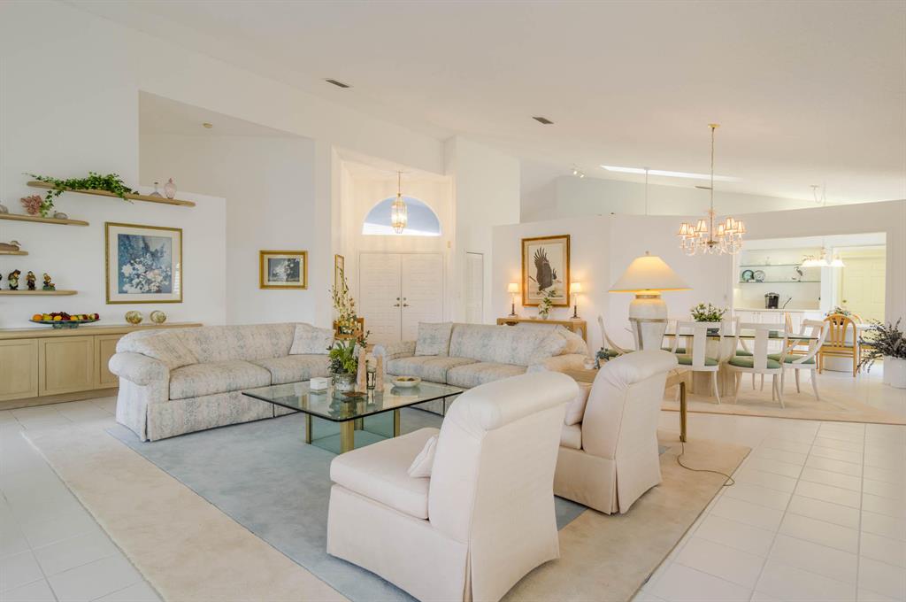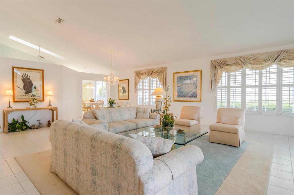 Fabulous opportunity in Eastpointe for this 3/3 home. One bedroom being used as an open den/office space. Large dramatic LR/DR w/volume ceilings and amazing view of the 15th green on the west course. The spacious eat-in kitchen has white cabinets w/a center island and double opening to the dining room as well as sliders to a side patio. The master is very large also with a volume ceiling and spacious bath w/double vanity, separate tub and shower as well as water closet. This home has room for a pool too. Eastpointe is getting a new club house w/2 pools, large gym and casual sports style restaurant with no assessment. 9 minutes to the beach and 15 to the airport.