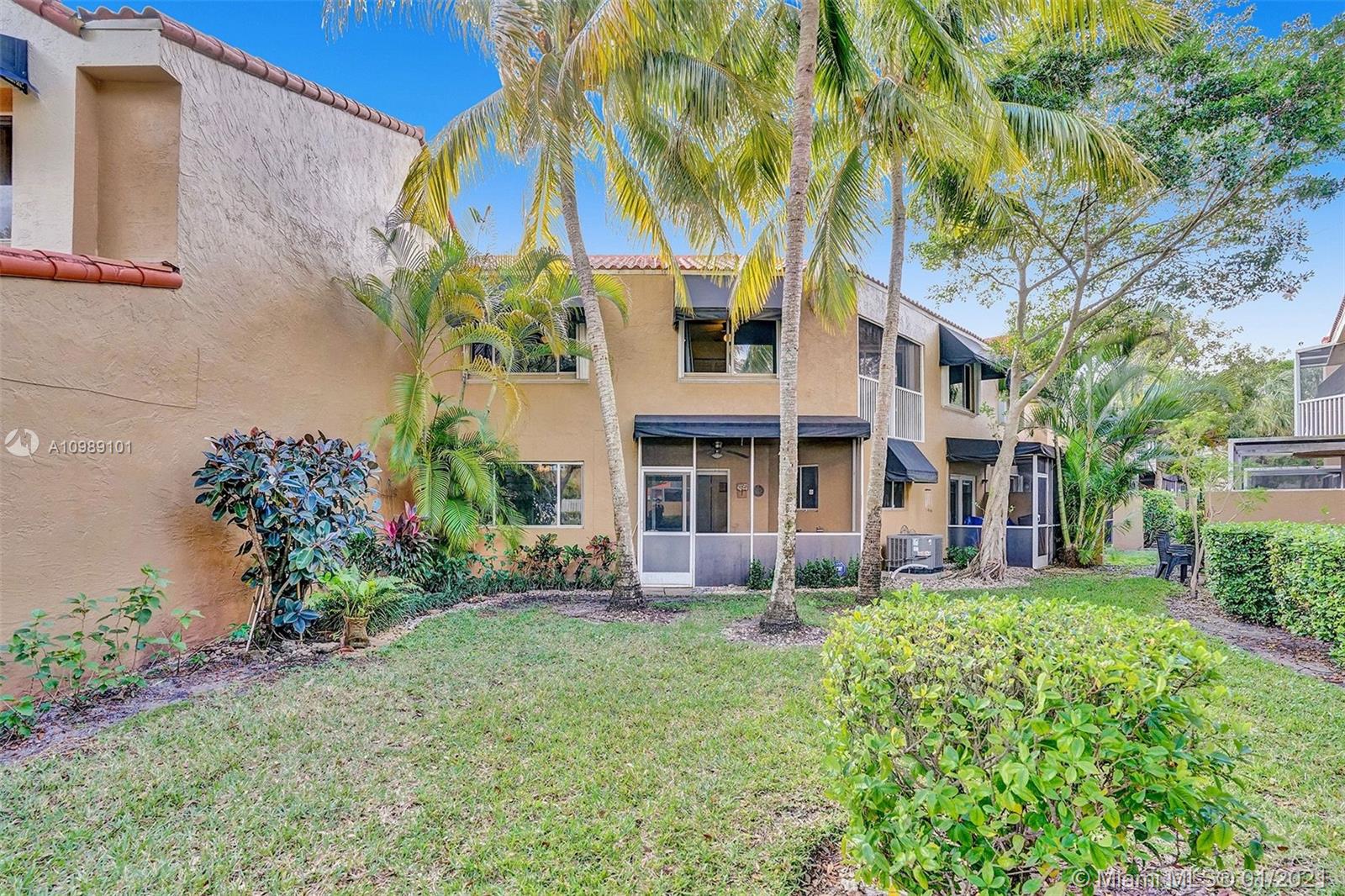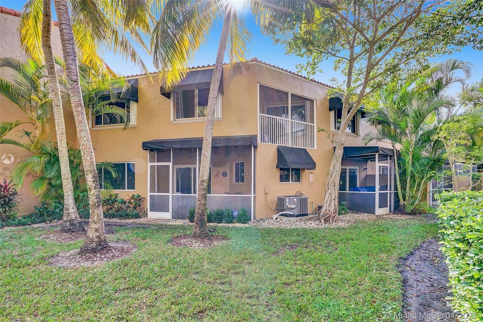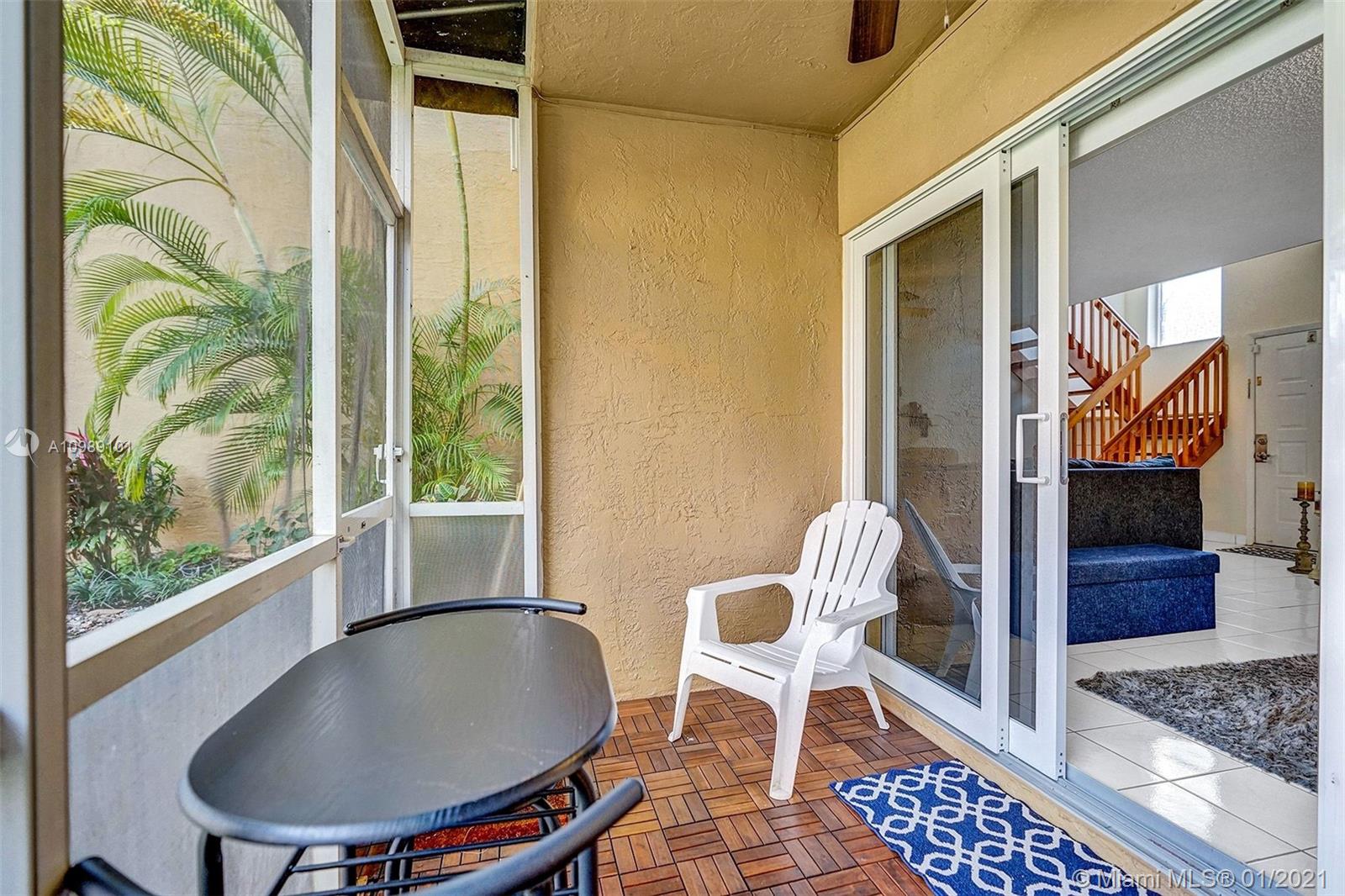 Gorgeous 3 bedroom 3 bath townhome in the desirable neighborhood of Dahlia located in the heart of Plantation. Updated kitchen with stainless steel appliances. Refrigerator 2 years old. Dryer 2 years old. Rain Soft water filter system for entire house. Added storage under stairs. Master bedroom features vaulted ceilings, walk in closet with organizers, completely renovated bathroom and its own screened in balcony. A.C. 2019. Newly installed Hurricane impact sliding doors downstairs in kitchen and living room. Exterior of community was recently painted. HOA includes roof repairs, insurance, pool, lawn/landscape. Fantastic location, close to Plantation Walk which is currently under construction, featuring shopping, restaurants & entertainment.(curtains, rods and ring doorbell not included)