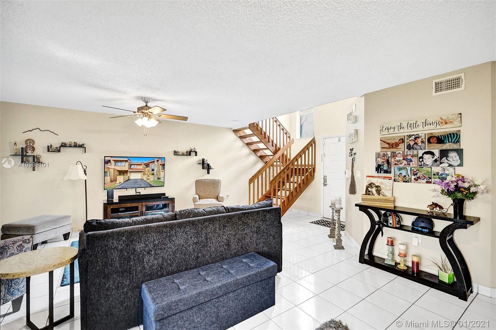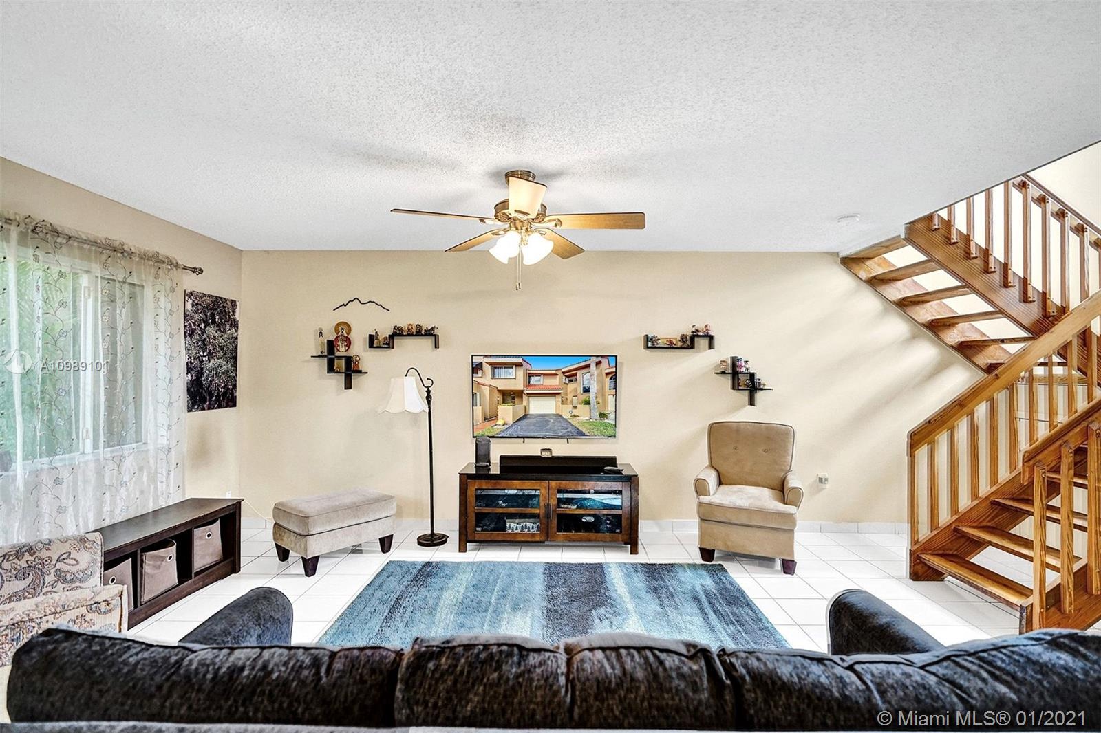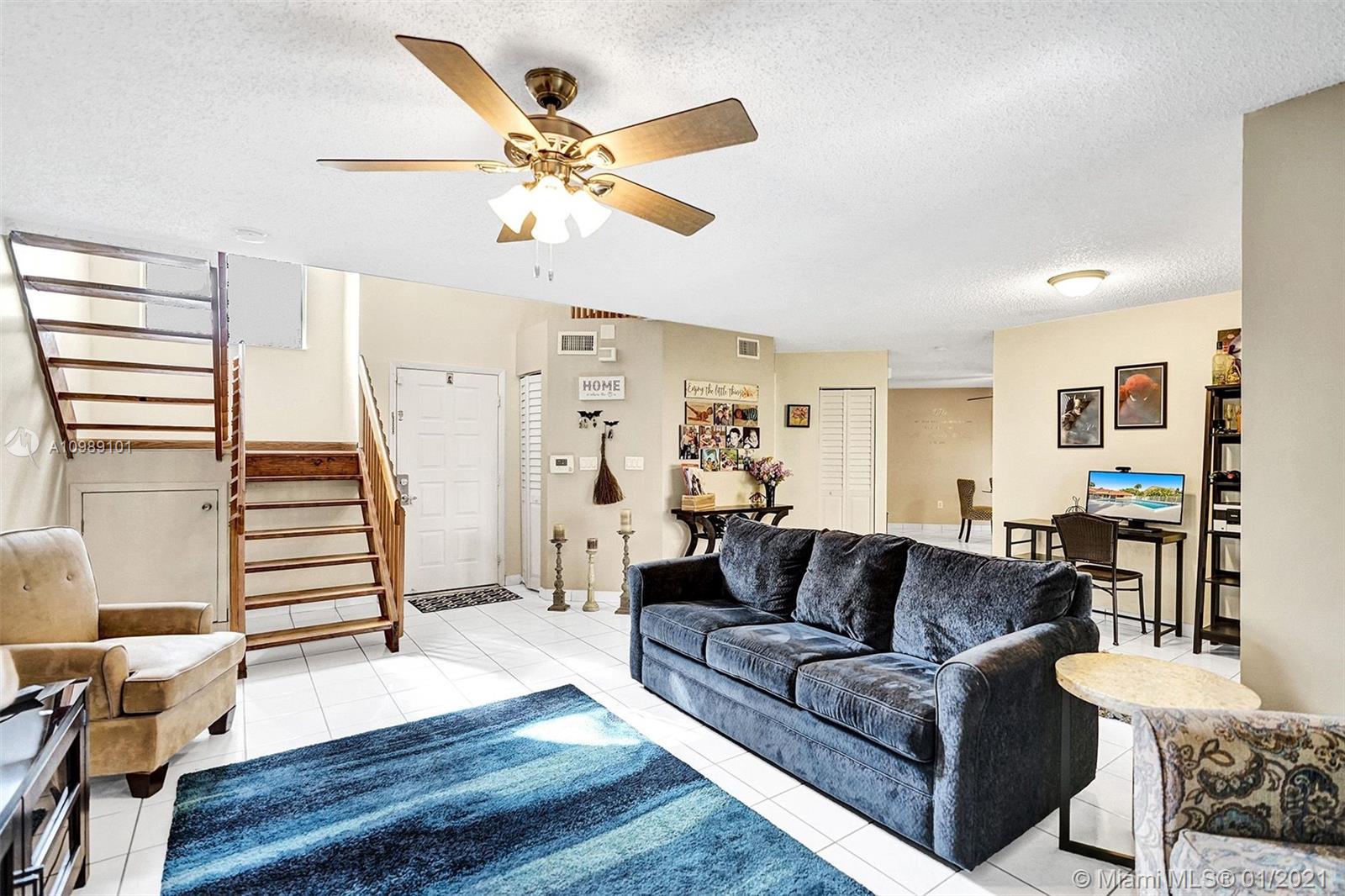 Gorgeous 3 bedroom 3 bath townhome in the desirable neighborhood of Dahlia located in the heart of Plantation. Updated kitchen with stainless steel appliances. Refrigerator 2 years old. Dryer 2 years old. Rain Soft water filter system for entire house. Added storage under stairs. Master bedroom features vaulted ceilings, walk in closet with organizers, completely renovated bathroom and its own screened in balcony. A.C. 2019. Newly installed Hurricane impact sliding doors downstairs in kitchen and living room. Exterior of community was recently painted. HOA includes roof repairs, insurance, pool, lawn/landscape. Fantastic location, close to Plantation Walk which is currently under construction, featuring shopping, restaurants & entertainment.(curtains, rods and ring doorbell not included)