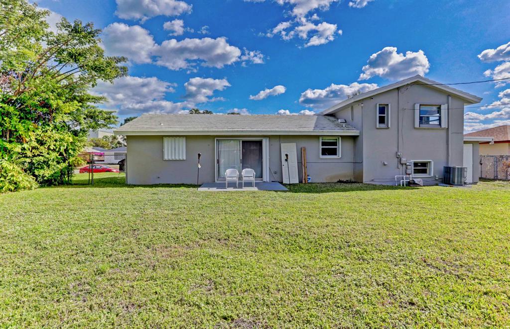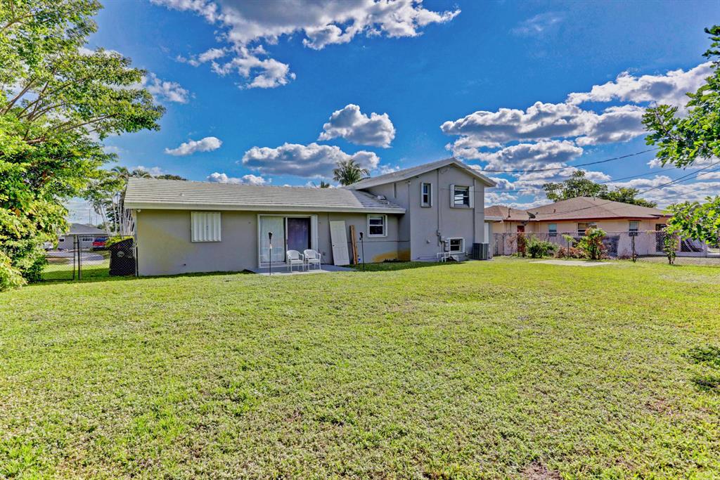 Prepare to fall in love when you inspect this 3-bedroom, 2-bath, 1-car garage, no HOA home, hidden away on the fringe of West Palm Beach. This gorgeous home has a set of double entry doors to offer as a bonus feature. Step inside and discover a spacious open floor plan flooded with natural light, featuring high ceilings and a beautifully renovated interior. A contemporary kitchen, perfect for frequent entertainers, offers ample cabinetry and bench space so you can prepare yummy foods for your family and friends. From your kitchen table, enjoy the view of your huge, private, fully-fenced yard with its lush green lawn perfect for children and pets to play. There's even a ton of space to build your dream pool! The bathrooms have been remodeled in a sleek, modern style, and you'll also enjoy