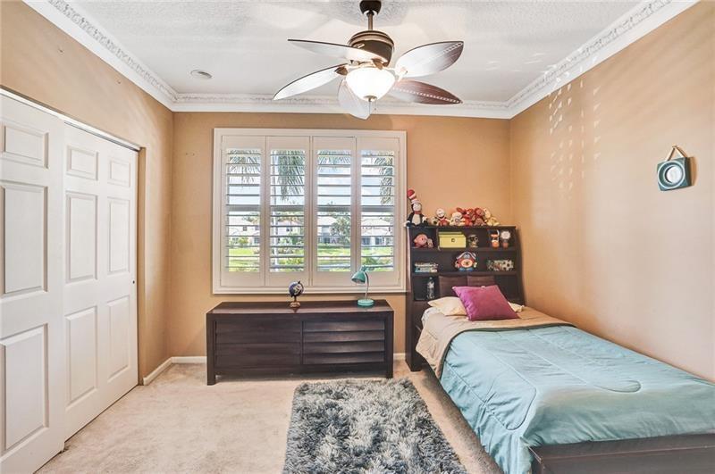 Gorgeous 4 Bedroom 3 full bathroom Home!! Grand Entrance with volume ceiling & banister oak railing on stairs. Gourmet Kitchen with breakfast area & Snack Bar, 42" solid Wood Cabinets, Granite counters, Kitchen-Aid Stainless Steel Appliances, Flat Cook Top stove, dual wall Oven & Microwave. Crown Molding, High-hat lighting and Plantation Shutters throughout the house, Ceiling Speakers, Neutral tile floors throughout living area. First floor Master Suite with separate Shower, Roman Tub, His/Her dual Sinks, bidet and huge walking Closets. Second floor has 3 bedrooms plus huge Loft. Floor plan has the feel of a mini estate. Accordion shutters on second floor windows. Low $245 HOA fee includes Community pool, gym, Cable TV, Fiber optic Internet and ADT Security system.