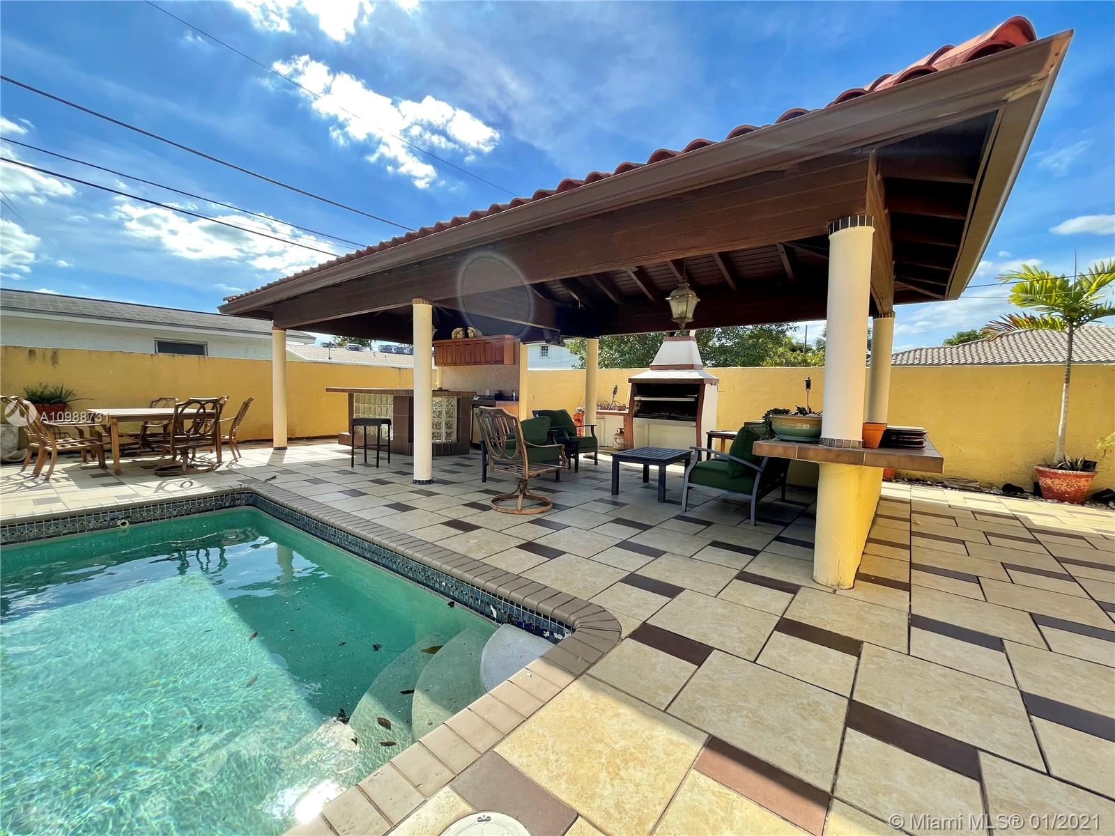 Cash only. Doral Pool Home on a corner lot with over 10,000 square feet for your family to enjoy. Please note, this is unapproved short sale. The garage was converted to a bedroom and an additional bathroom was added. With these additions the house has 4 bedrooms and 4 bathrooms. According to the seller half of the roof was damaged and should be replaced. The other half was redone 3 years ago. Please call for more information.