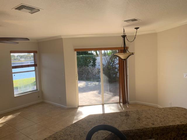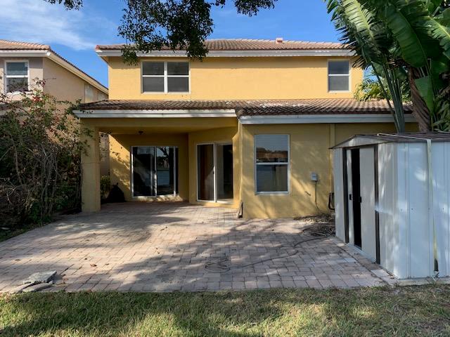 Welcome to Liberty Isles, very desirable gated community in WPB. Ready to come home to a view. This 4 bedroom 2 and half bath SFH has lots to offer including a covered entry, fresh paint throughout, tile flooring downstairs with a half bath. Kitchen features SS Appliances and Granite Countertops and white kitchen cabinets. Brand new high end water resistant vinyl in the stairway and all the bedrooms upstairs, NO Carpet!! Master features His&Her walk in closets and sinks. Walk in shower and Roman Tub. Crazy view out back with pavers, covered patio and storage shed. 2 car garage with new epoxy flooring. Easy to show, vacant on combo.