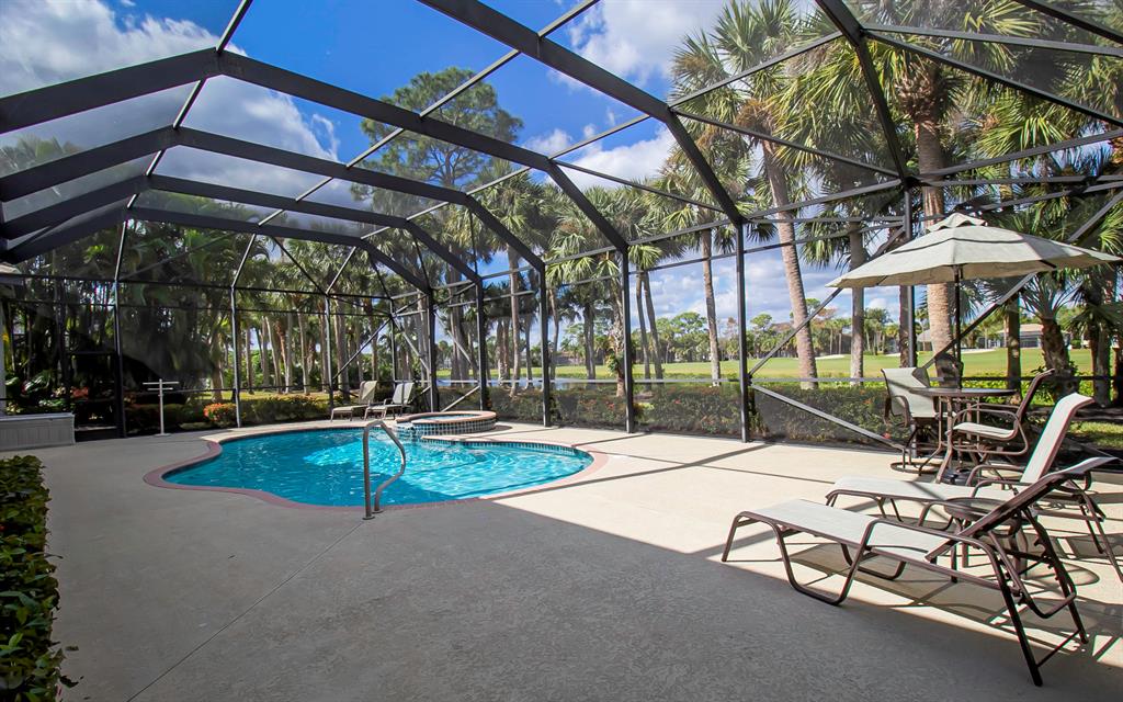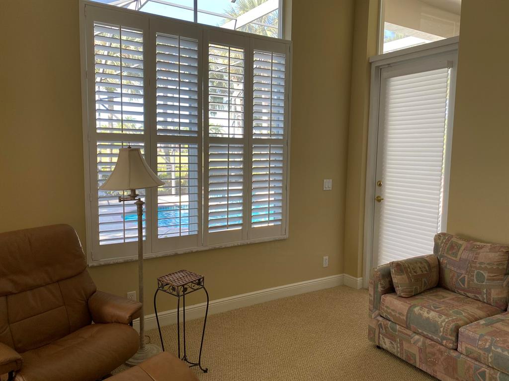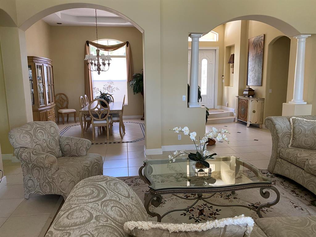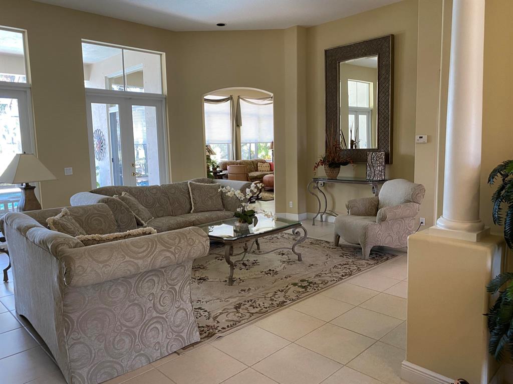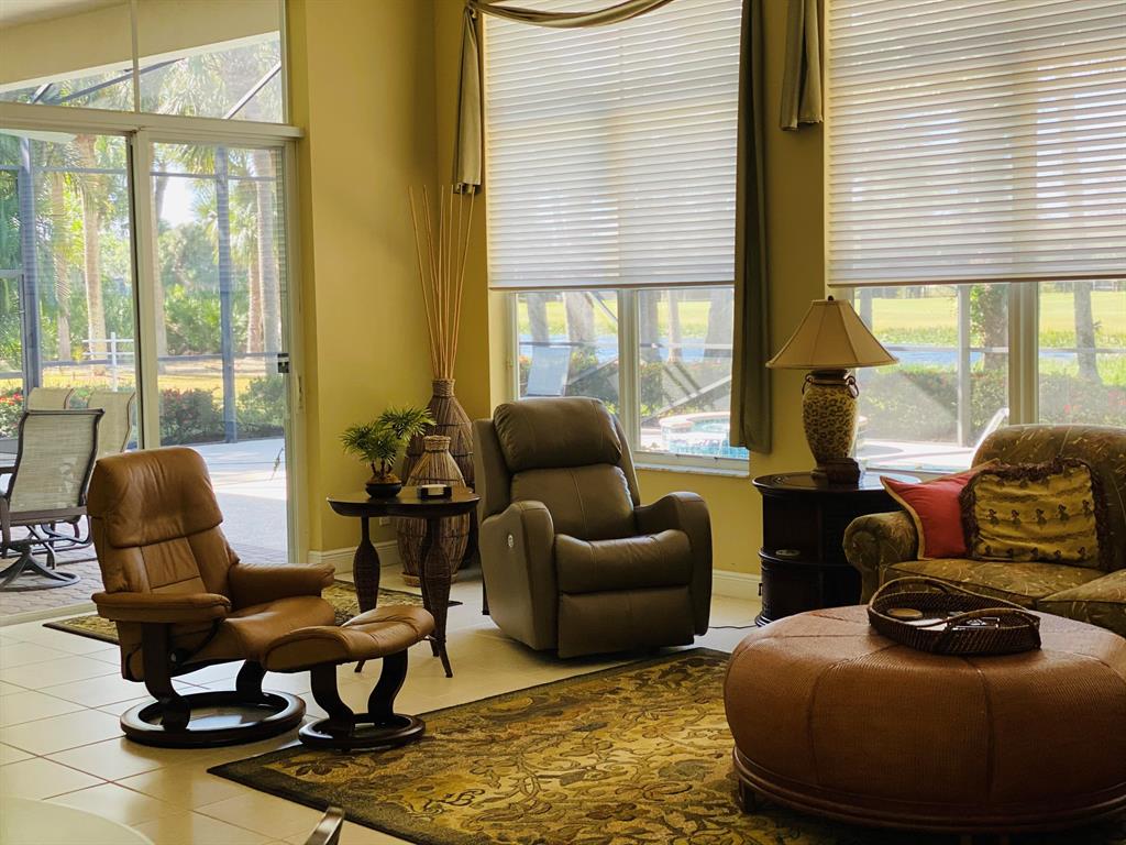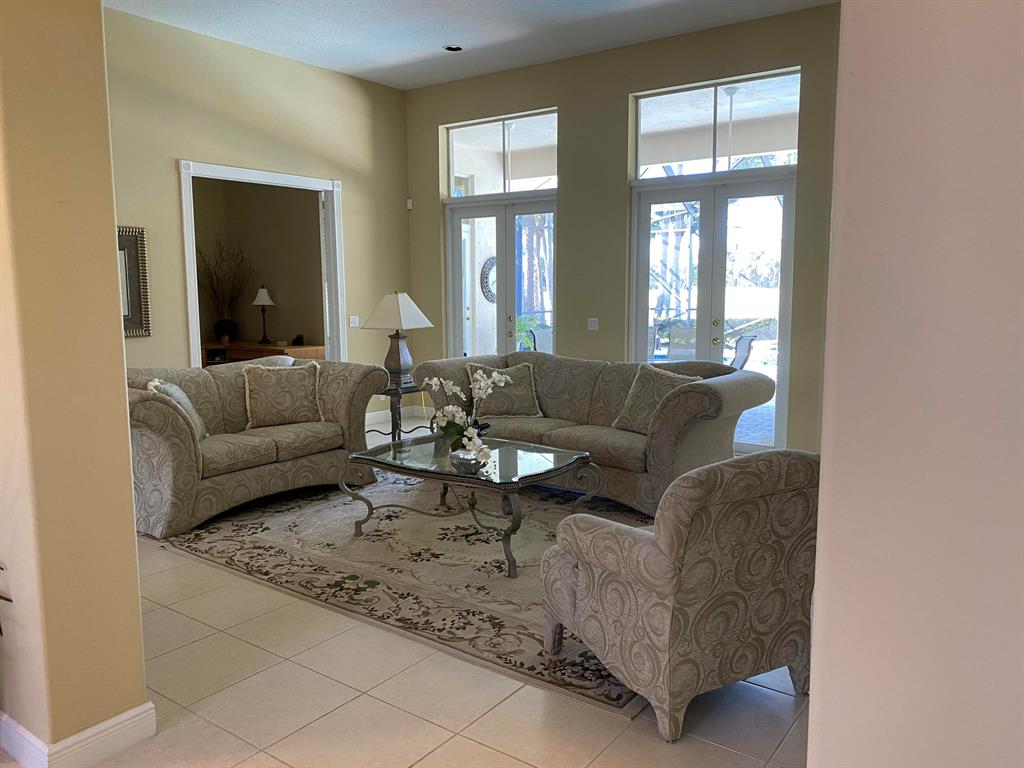 STUNNING, TURN-KEY 3bd/3bath + den on ESTATE lot. Beautifully furnished. Professionally landscaped, perfect view of the 18th hole. GORGEOUS inside and out. Volume ceilings, classic ceramic tile will take your breath away. This split plan home has a large master suite with an adjacent sitting room leading out to the pool, with two large walk in closets. Master bath has his and her vanities, roman tub and 2 commodes. Open archways throughout. Cozy kitchen with breakfast nook and large island, full wall pantry. French doors lead out to a phenomenal view of the 18th hole along side a lake. Everyday can be a spa day in your private, screened in, in-ground, heated pool with spa. Golf, Tennis and Social Memberships available. Complete hurricane protection included.