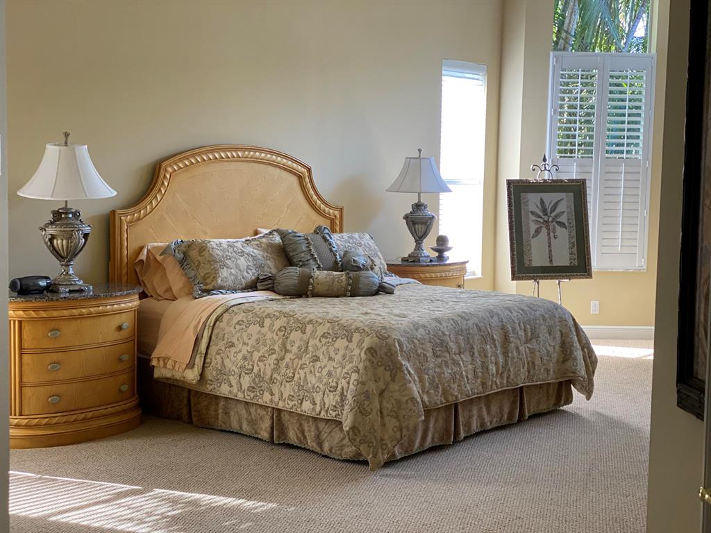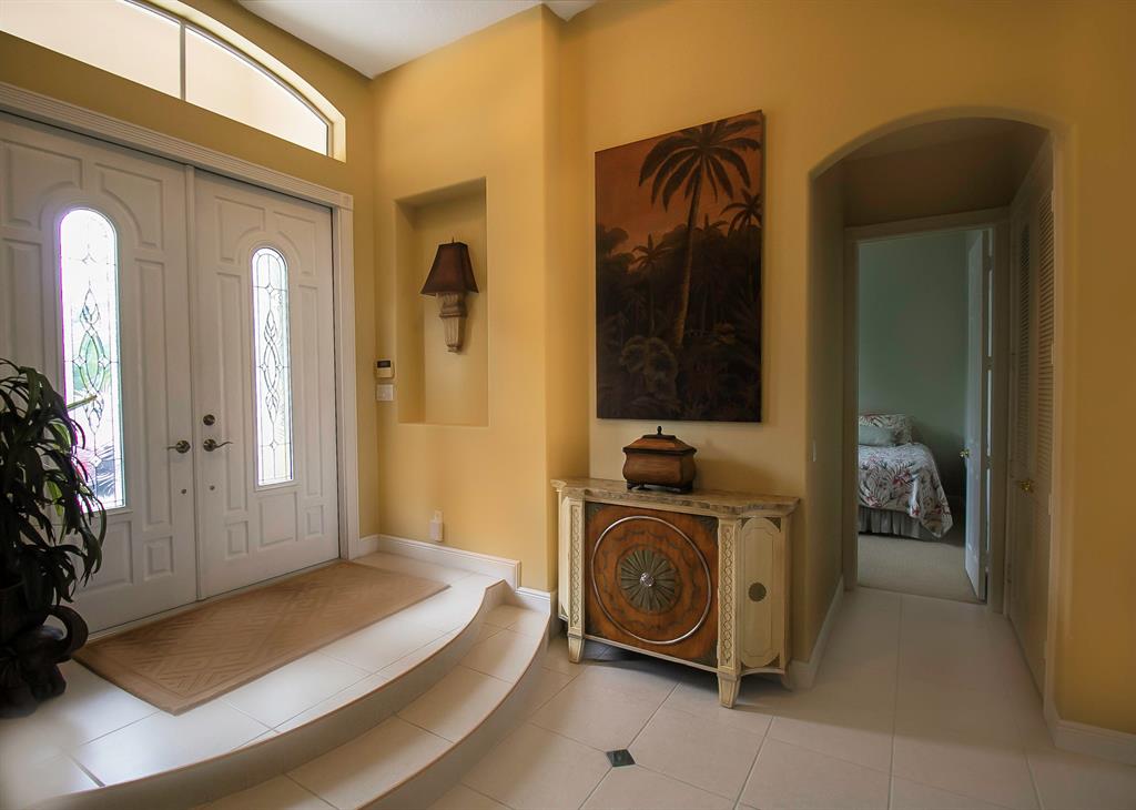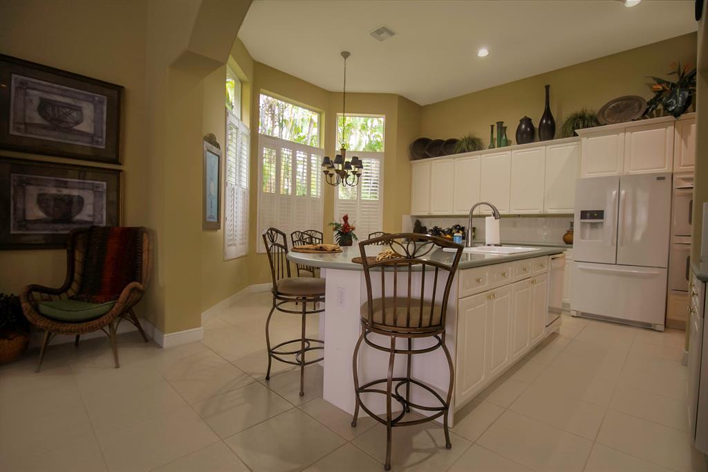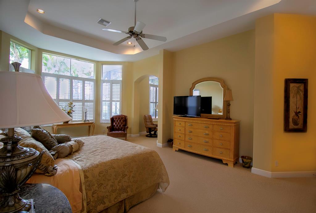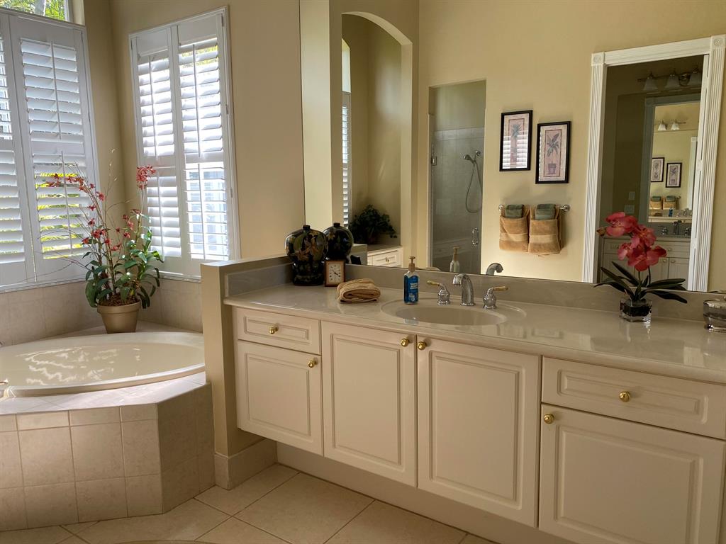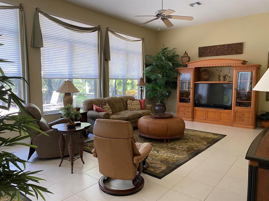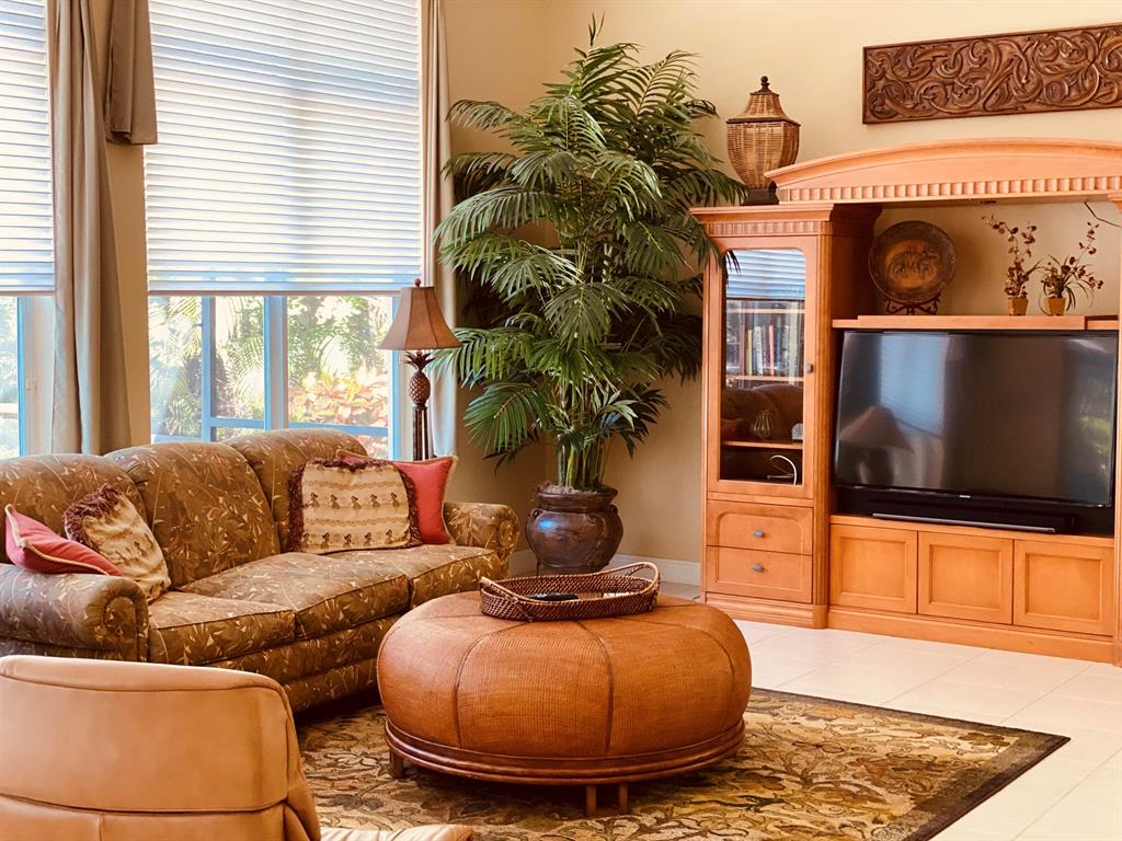 STUNNING, TURN-KEY 3bd/3bath + den on ESTATE lot. Beautifully furnished. Professionally landscaped, perfect view of the 18th hole. GORGEOUS inside and out. Volume ceilings, classic ceramic tile will take your breath away. This split plan home has a large master suite with an adjacent sitting room leading out to the pool, with two large walk in closets. Master bath has his and her vanities, roman tub and 2 commodes. Open archways throughout. Cozy kitchen with breakfast nook and large island, full wall pantry. French doors lead out to a phenomenal view of the 18th hole along side a lake. Everyday can be a spa day in your private, screened in, in-ground, heated pool with spa. Golf, Tennis and Social Memberships available. Complete hurricane protection included.
