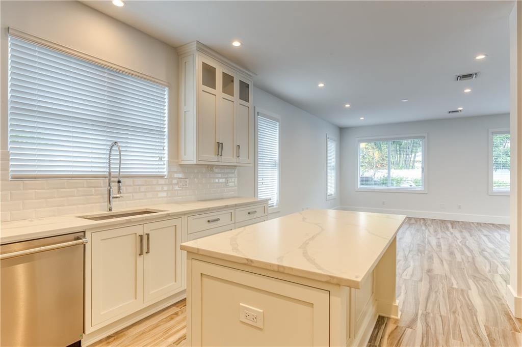 This remarkable newly built home is located in the Rio Vista neighborhood next to downtown Fort Lauderdale. Full of century-old oak trees and peaceful streets, the community offers South Florida living at its finest. This 5-bedroom, 5.5-bath home provides a beautiful, modern aesthetic — featuring porcelain tile, wide plank wood flooring, and clean, contemporary finishes. Its floor plan is perfect for families, including a spacious master upstairs as well as three other bedrooms and bathrooms. The main floor features a spacious, sweeping layout with expansive windows, a living room plus large family room, porch, guest suite and two-car garage. Completing the home is the spectacular all-white kitchen, which includes gorgeous quartz countertops, Viking appliances and custom shaker cabinets.