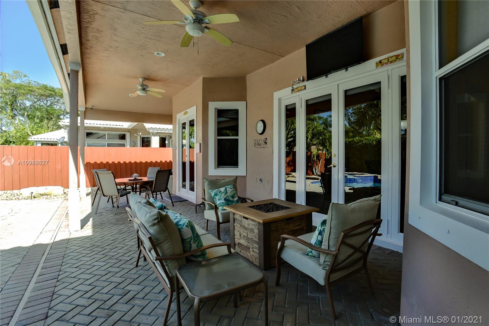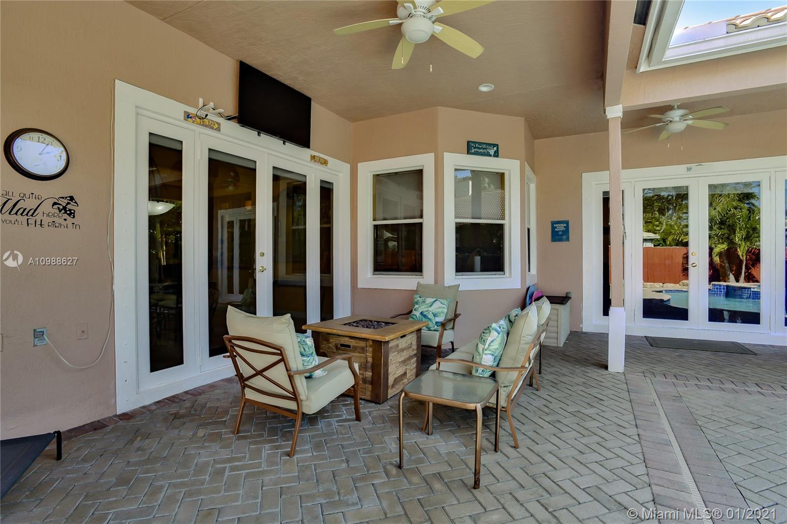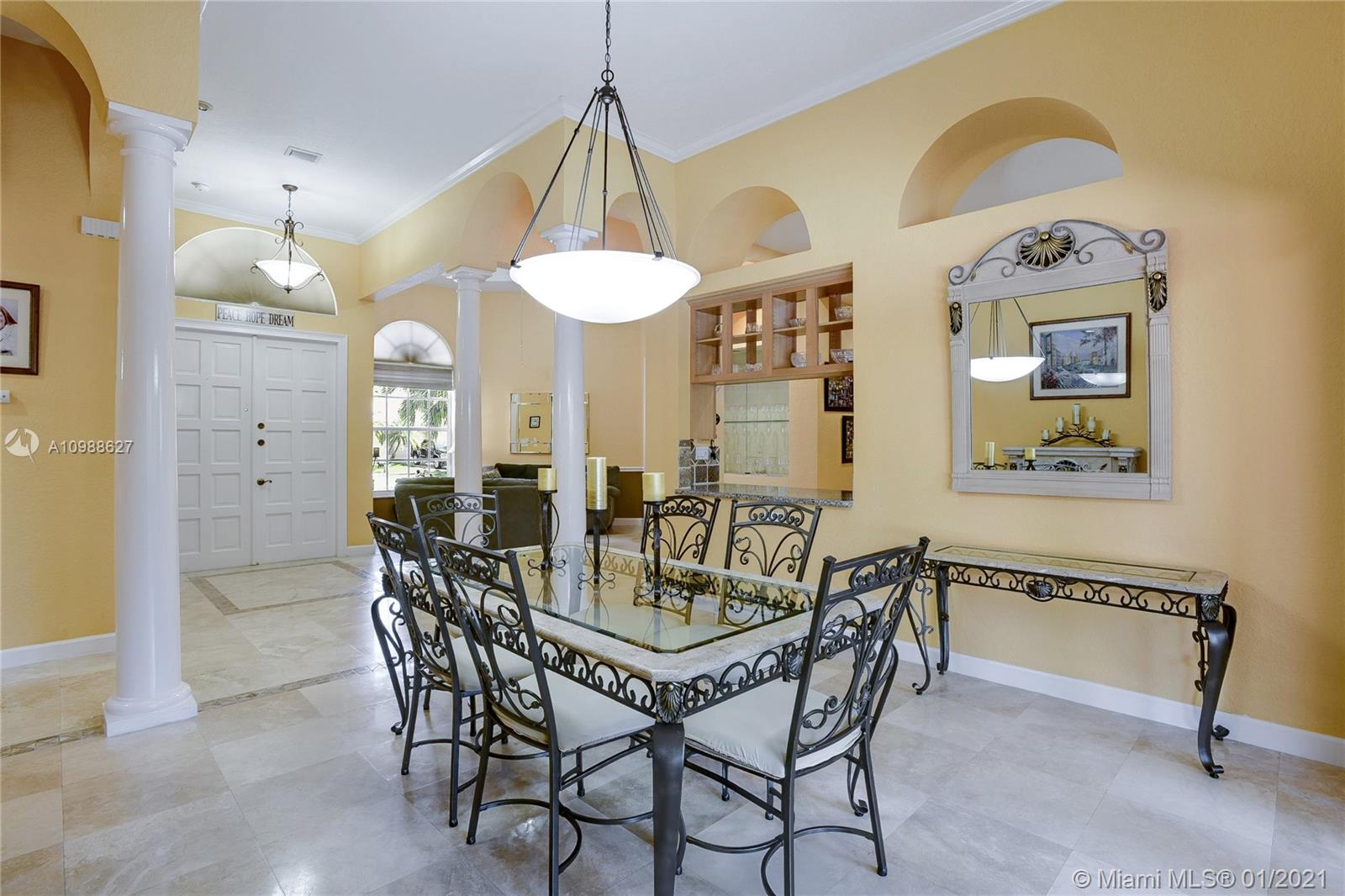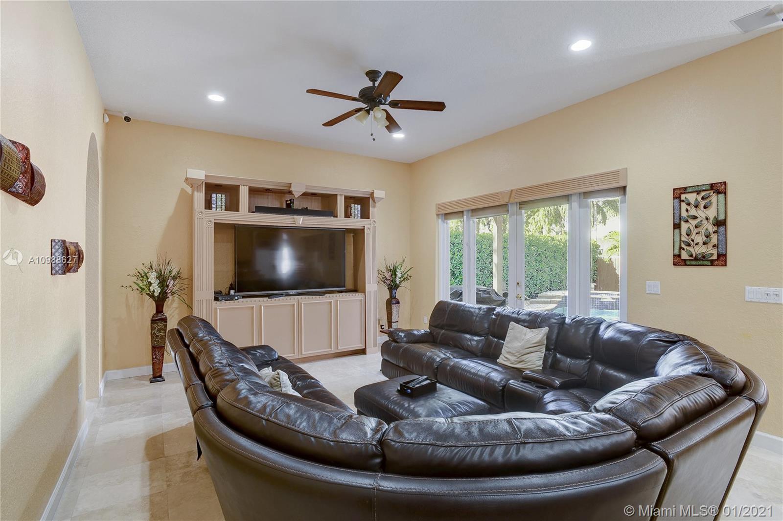 Beautiful 5-Bedroom Pool Home PLUS Den (6 rooms) in Desirable Westport Neighborhood! Don't Miss this Gorgeous and Upgraded Home which Features a Three Way Split Floor Plan, Travertine Marble Floors in Living Areas, High Ceilings Throughout, Wired Security Cameras, Speaker System, Newer A/C Units, Coffered Ceilings, Circular Paved Driveway, Spacious Master Bedroom with His and Hers Closets, 2nd and 3rd Bedroom with "Jack and Jill" Bathroom, Hurricane Shutters, French Doors and much more. Enjoy the Blissful Covered Patio with Paved Deck, Fenced Backyard, Beautiful Landscaping, Pool/Jacuzzi with Salt-Chlorination System, Multi-Color Led Lights and Heater. Sprinkler System in Front and Backyard. Third car garage was converted to a Den and it can be easily converted back.