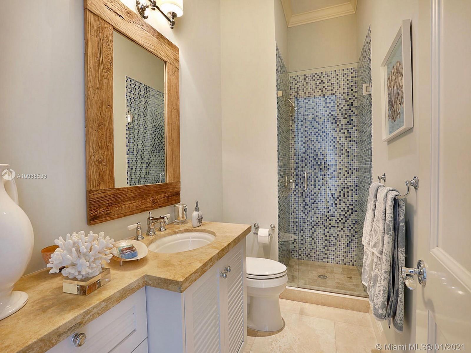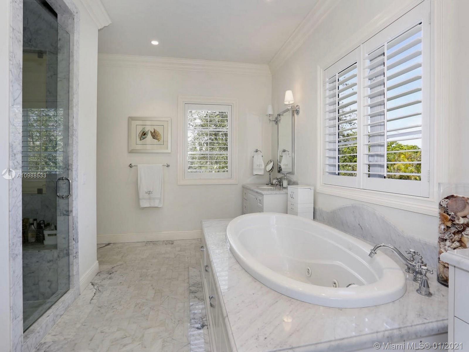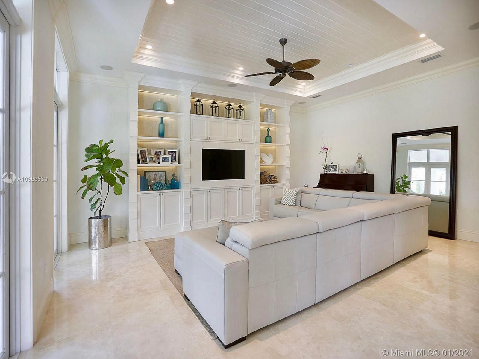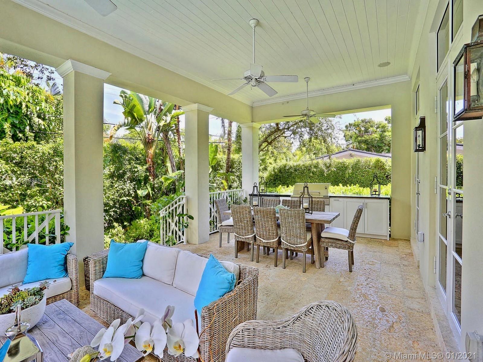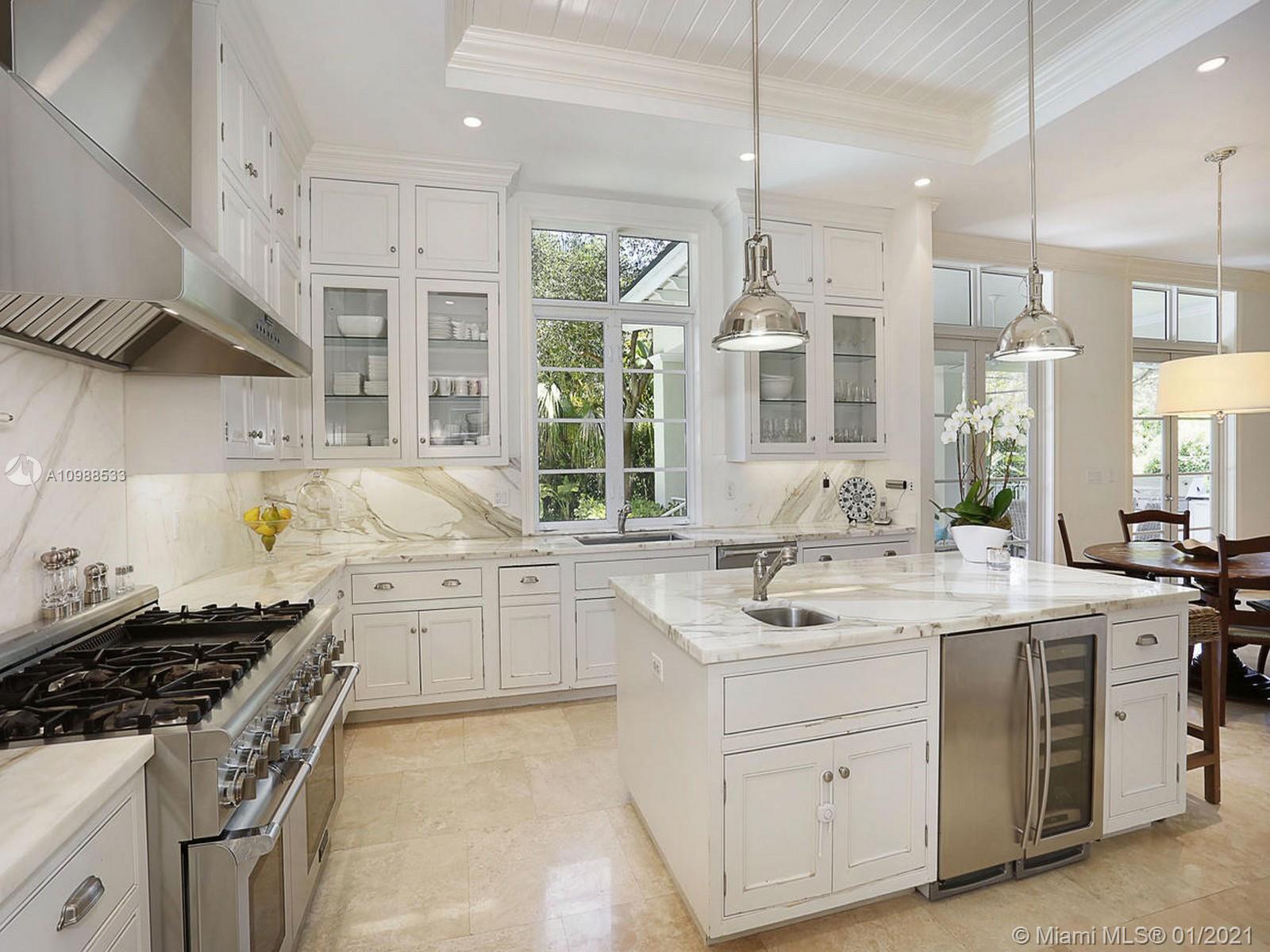 This stunning 5000+ sf island style estate is Gables by the Sea living at its finest. Custom built in 2008, the 5-bed, 5.5-bath, 2-story home features stone floors downstairs, hardwood floors upstairs, high coffered ceilings, crown moldings, and exquisite detailing throughout. 1st floor is an entertainer’s dream with foyer entry, formal living room, and an enormous chef’s kitchen with Thermador appliances, large prep and serving island, eat-in breakfast nook, seamless connection to family room, and French doors to the covered outdoor BBQ, living area, and bright, sunny pool. 2nd floor bedrooms are all en-suite and the huge master boasts spa-like bath, oversized WIC, and terrace overlooking pool. Located on quiet street with cul-de-sac, only 3 houses from Coral Bay Park.