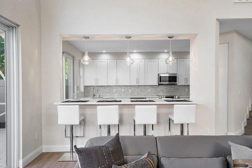 FULLY RENOVATED. MUST SELL. ALL OFFERS CONSIDERED. MAKE YOUR OFFER TODAY! This completely remodeled 2 story, 3 bedrooms, 3.5 baths home is ideal for anyone looking to move into a modern, stylish home with a light, bright feel. Master on 1st floor! This home located in Broken Sound Country Club is conveniently walking distance to the private community pool, main clubhouse and tennis/spa facility. You will fall in love with the open concept floor plan and soaring high ceilings. Plenty of windows allow tons of natural light into the living/dining area. Some highlights of this home include new contemporary kitchen which opens to the living area, impact windows, fitted closets and LED lights throughout. You can access the screen enclosed patio from the living area or kitchen area.