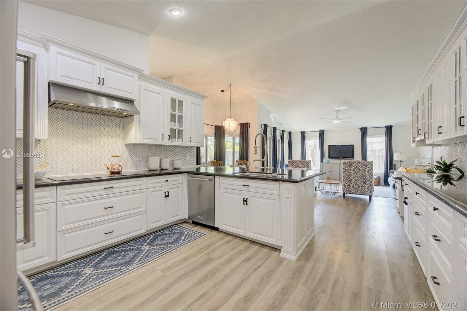 Fall in love with this breathtaking, immaculate designer 4 bedroom plus office/optional 5th bedroom picture perfect family home. Shows like a model, renovated from top to bottom, including removal of popcorn ceilings, new luxury vinyl flooring, enormous gourmet chefs kitchen with white cabinetry, gorgeous granite counter tops, custom backsplash, high-end stainless appliances with dramatic range-top hood. Remodeled spa-like master bathroom. Spacious with ample natural light, corner lot, tropical backyard oasis with sparkling pool & covered patio; Florida living at its finest. Roof 2007, AC 2019, Freshly painted interior/exterior, elegant modern baseboards & chair rail. Gorgeous new landscaping, A-Rated Davie Schools, close to airports, parks, shops & world famous HardRock hotel. A MUST SEE!