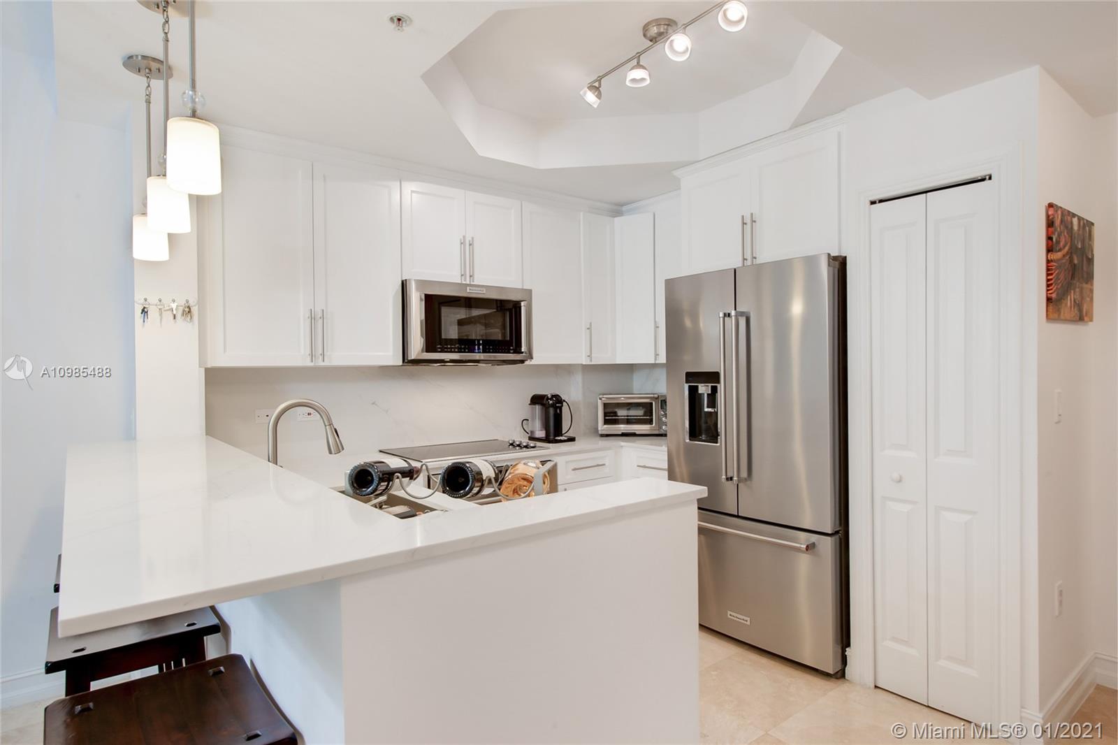 Stunning & completely remodeled w/ Quartz kitchen tops, new cabinets & appliances w/extended warranties. Master bath w/dual sinks, jacuzzi, impact windows, new dryer/washer. Large living area w/an open kitchen concept facing the pool area. Natural stone in the oversized terrace facing the pool area, perfect for entertaining. Walk-in closets in the master bedroom & all of the closets designed by The Container Store. One large bedroom w/ a full bath is located on the first floor & other 2 bedrooms w/full baths on the 2nd floor. Fitness & office center w/ free internet located in this boutique building. Secured building & parking w/ cameras. Covered tandem parking for 2 cars. Perfect location close to the Mile where you enjoy restaurants. 24 hours notice required for showing. Mask required.