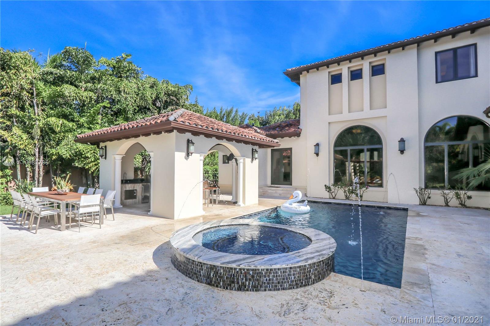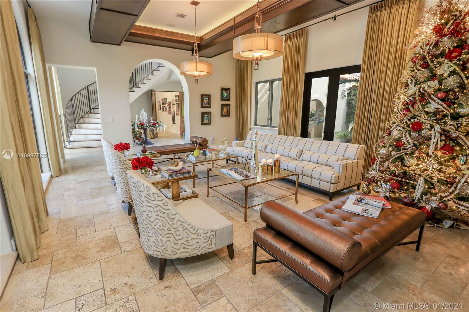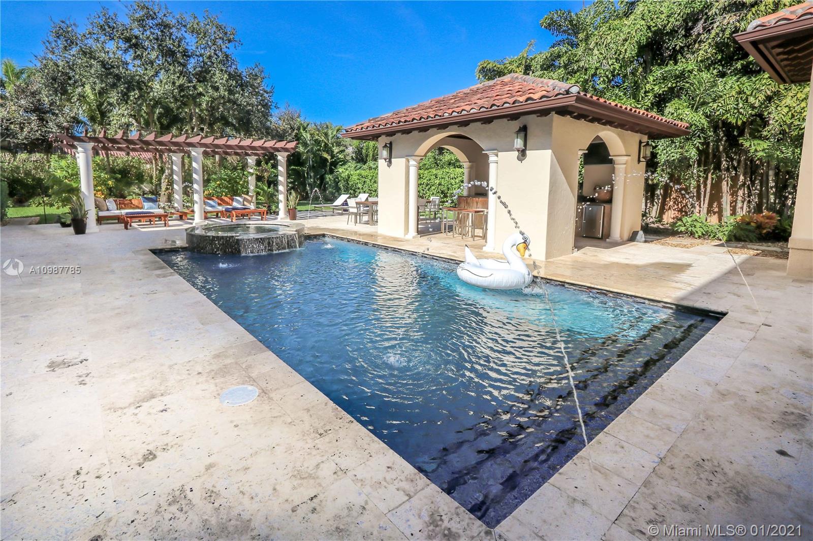 Designer Finished, Lavish Tropical Paradise with High-End, Detailed, Superb Quality Finishes Throughout. High Volume Ceilings. State of the Art Dream Kitchen with Viking, Sub-Zero and Miele Appliances for the Most Discerning Chef. Luxury Living with 6 bedroom/8.5 baths. Dining Room with a State of the Art Temperature Controlled Wine Cellar. Separate Guest Quarters. The Perfect Blend of Indoor and Outdoor Living and Entertaining. Spectacular Bar Room that can also be an additional Master Bedroom with its own entrance and a Billiard Room. All Bedrooms are En-Suites with Walk-In Closets. There are 4 Bedrooms Upstairs and 2 Downstairs. Elevator Shaft Ready. Smart Home and Security Cameras Throughout. Corner Property. Furniture is Available for Sale Upon Request. Much Larger Than Tax Roll.