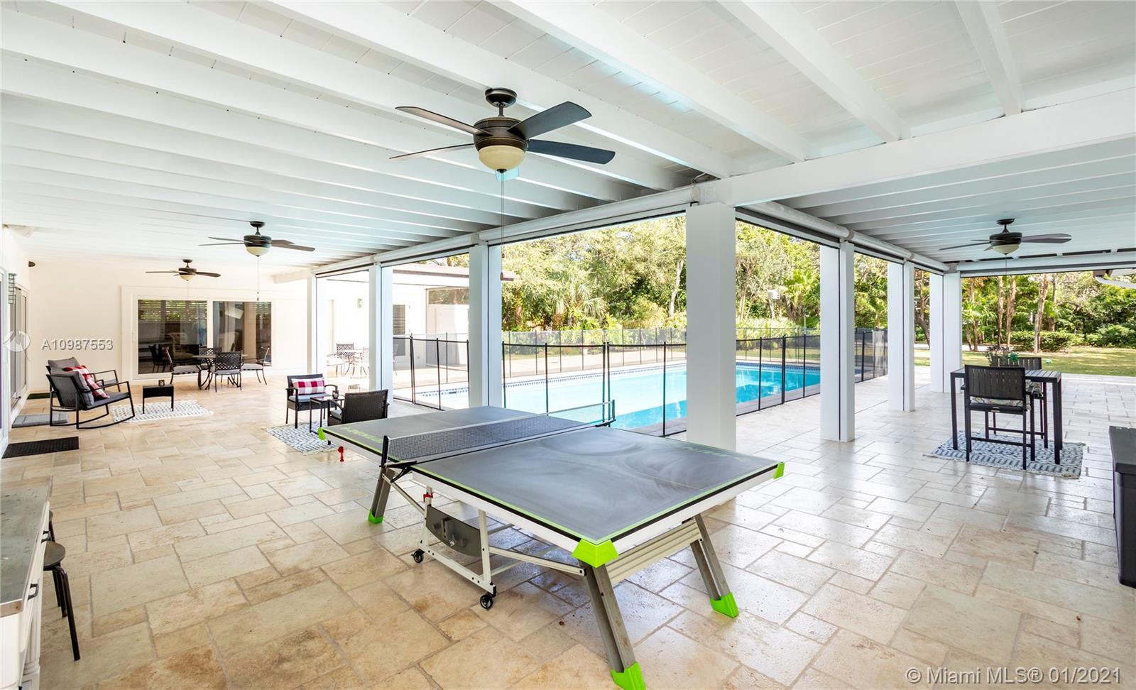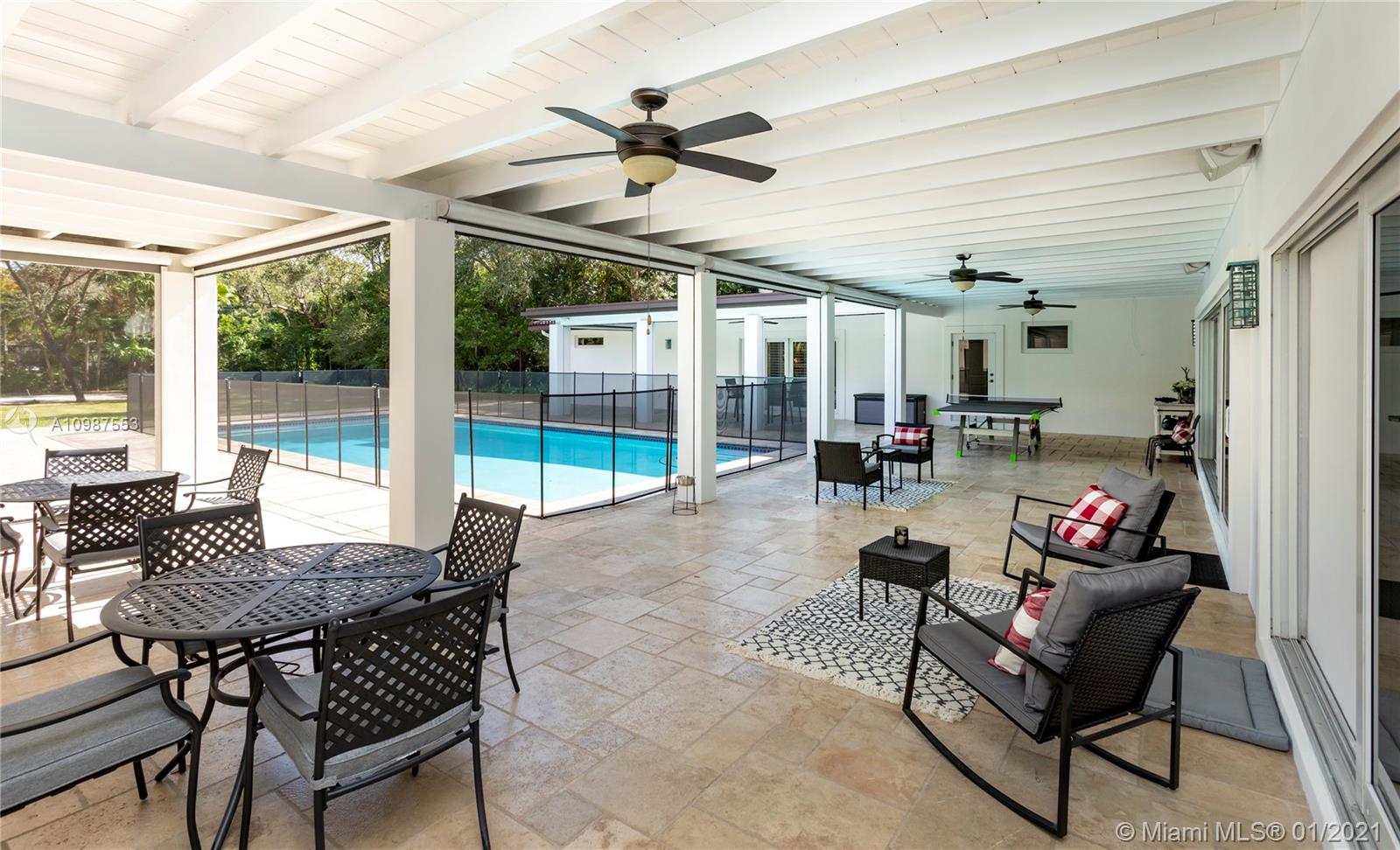 Located in the Village of Pinecrest. This captivating home sits on a tree lined lot that is just shy of an acre. 4 bedrooms with a office/den. Stunning kitchen with double oven adorned with subway tiles and a veggie sink in the island for the chef. Open floor concept, spacious family room with a wet bar for all your entertaining needs. Impact windows with plantation shutters. Gorgeous living-room with a Keystone fireplace that sprawls out to an expansive patio with electronic roll down screens. Enormous backyard with a pool and basketball court.