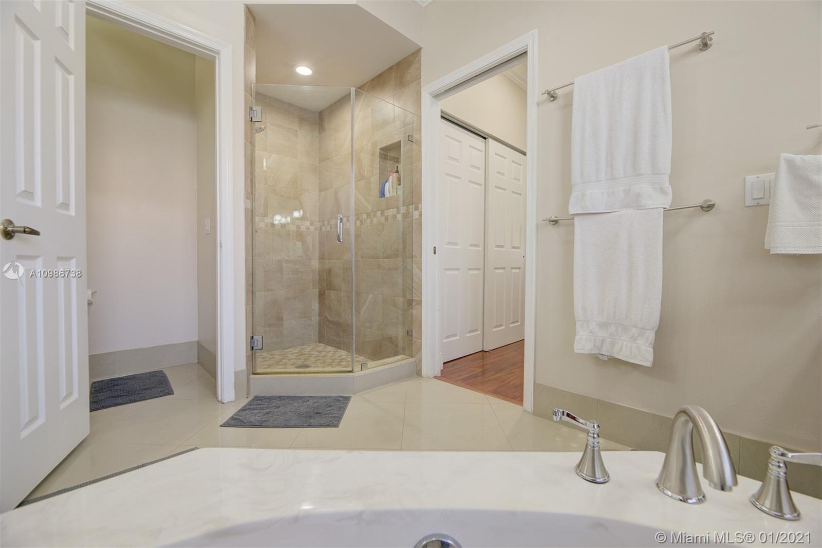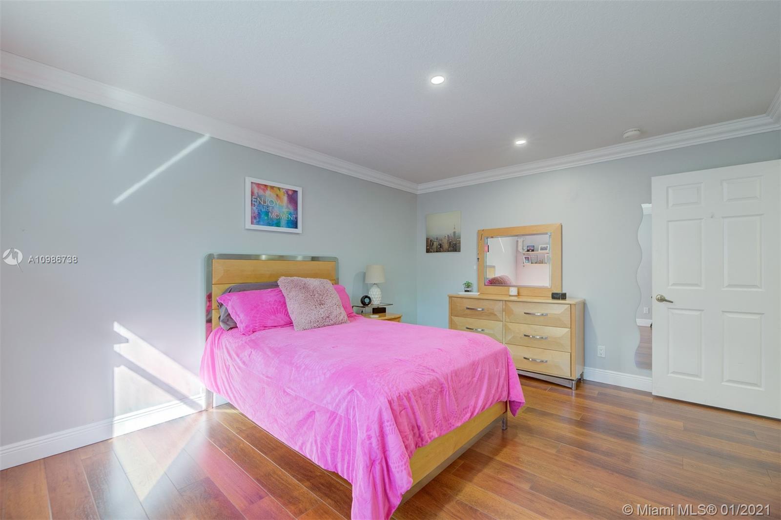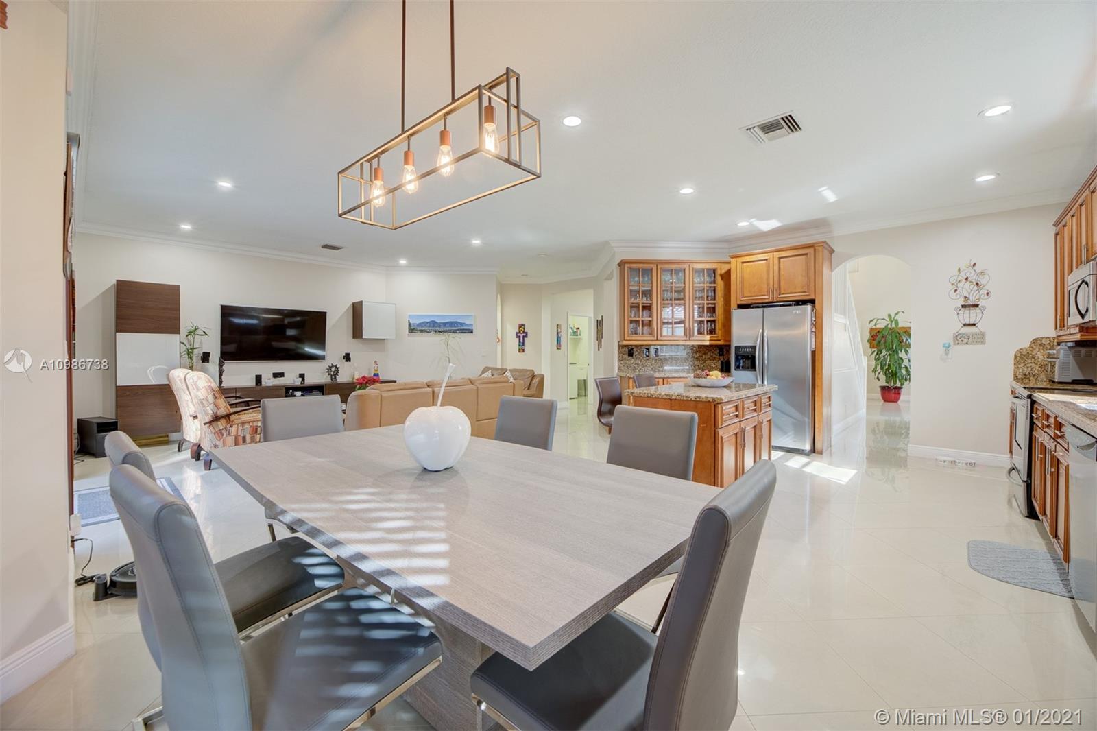 Elegant Kingston model with pool in sought after Pembroke Falls*this upgraded home features 5 bedrooms, 3 1/2 baths + big loft upstairs that's great for multi-purpose use and three car garages * master bed downstairs, with large walk-in closet * porcelain tile downstairs & dark wood on 2nd floor & staircase*open kitchen granite counters & s.steel app, ample custom wood cabinetry and cooking island*high ceilings*new led lighting throughout the house*laundry room*expansive backyard with your own tiki hut and pool to enjoy the breeze and peaceful evenings*the home is ready for immediate occupancy* HOA fee includes internet, cable, alarm, clubhouse, gym, heated pool, lakes, dog park, tennis & basketball courts. centrally located, a+ school district.
