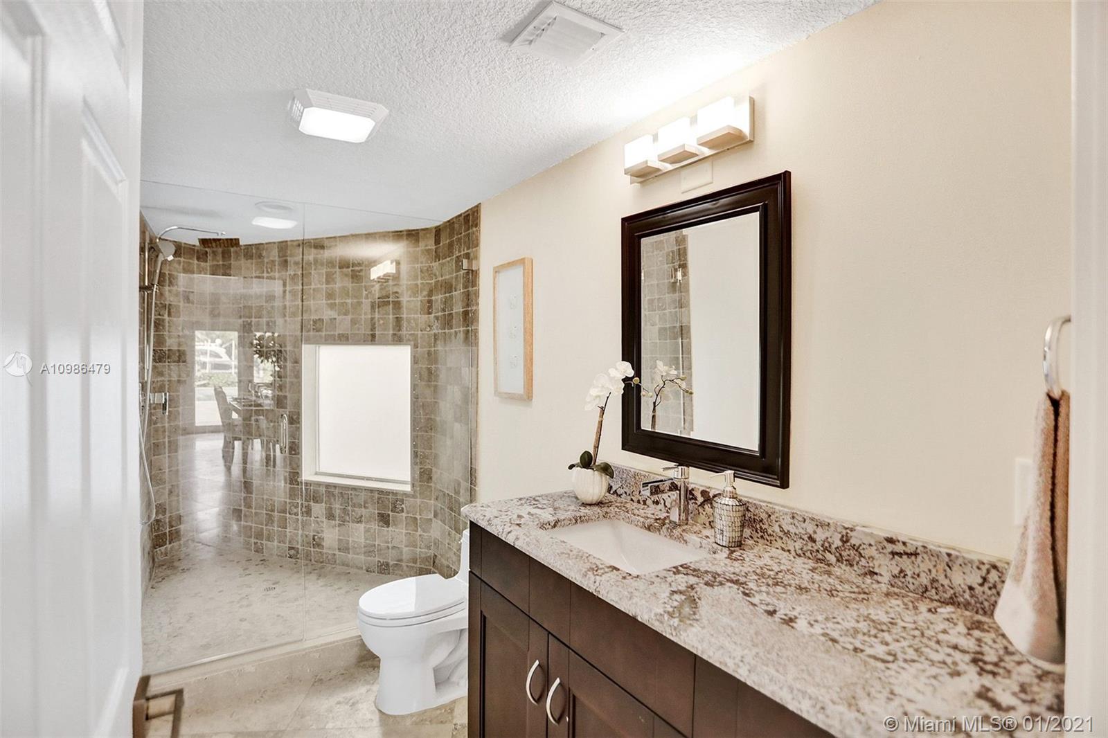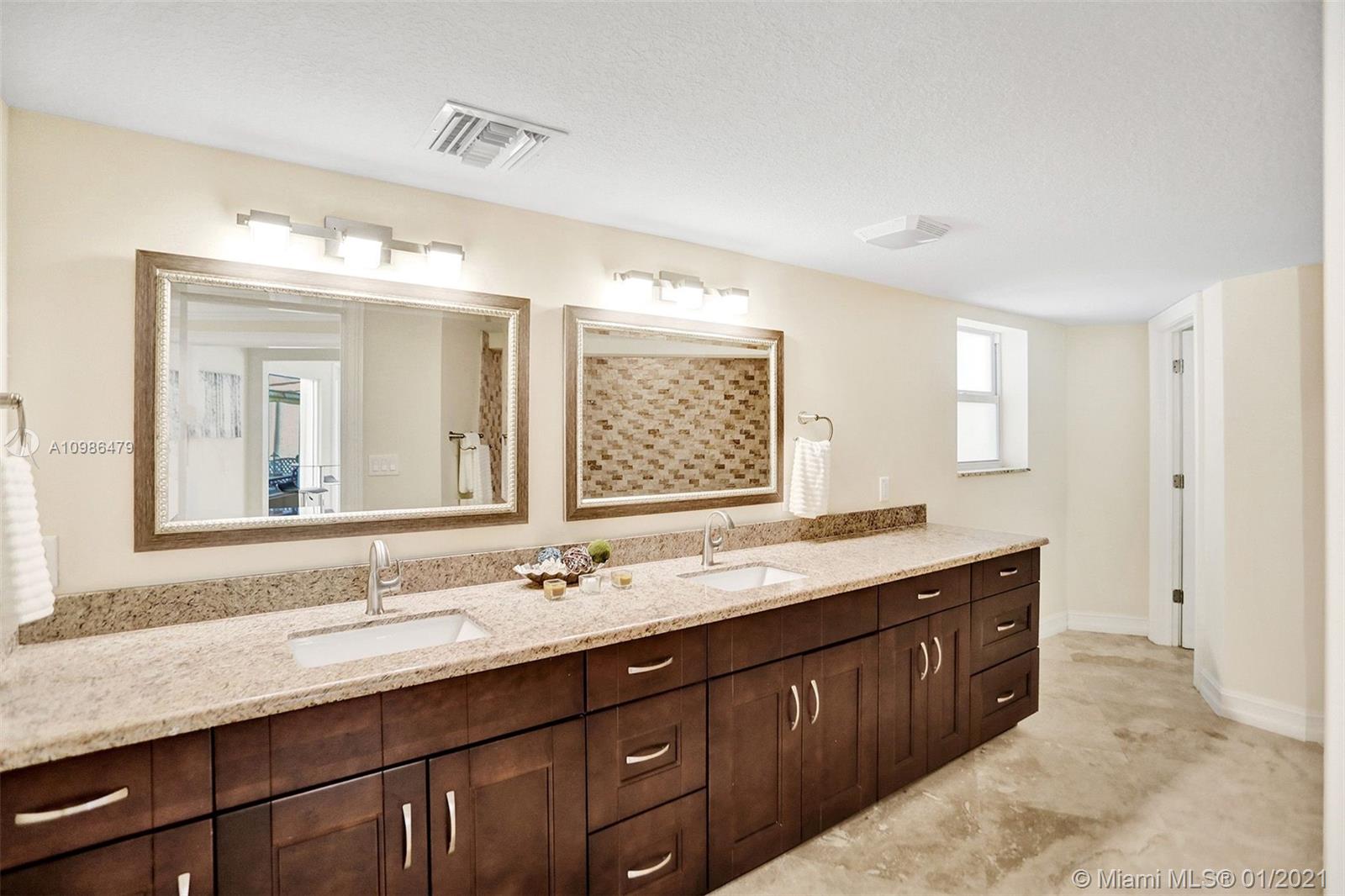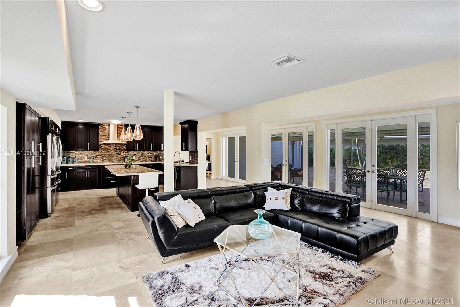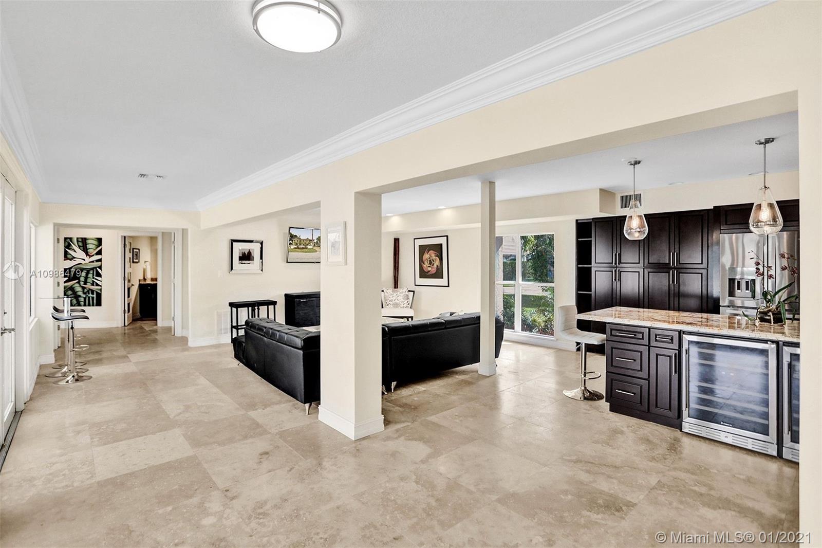 Tropical waterfront & lake views from this beautifully updated corner lot mansion in the coveted Lake Santa Barbara Shores area of Pompano Beach. This bright open concept 2-story pool home features abundant living space. Master suites both up & downstairs, each w/ private deck overlooking water. The huge chef's kitchen is fit for entertaining w/ 2 counter depth stainless refrigerators. Large driveway + oversized 2 car garage, spacious fenced-in patio w/ pool/spa, IMPACT windows & doors throughout, stone surround fireplace, private ELEVATOR, new professional landscaping & dockage for an approx 40ft boat. Zoned for A Rated McNab Elementary School. Northern Exposure for cool breezes. Minutes by boat to Hillsboro Inlet, a quick drive to Pompano Pier & dining, i95 & Ft. Lauderdale.